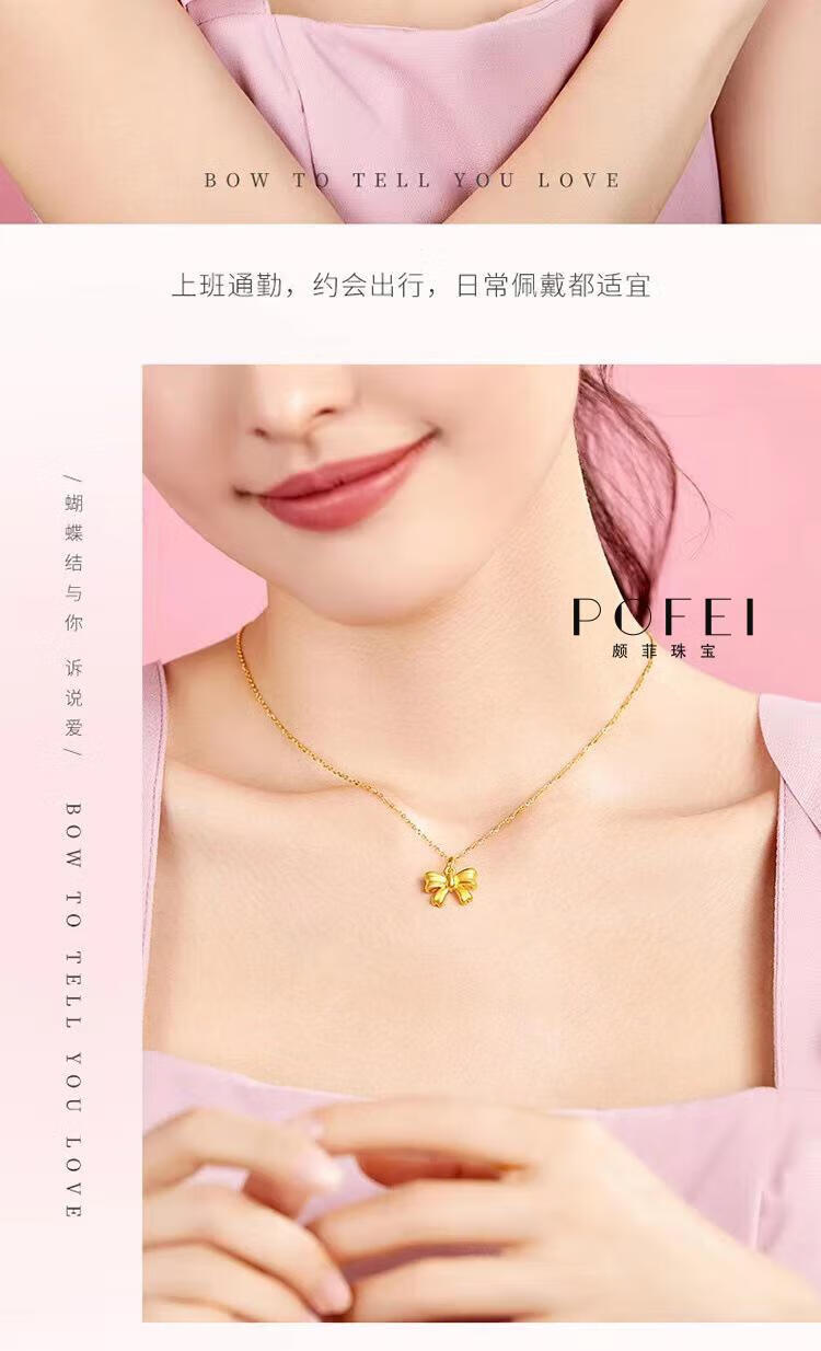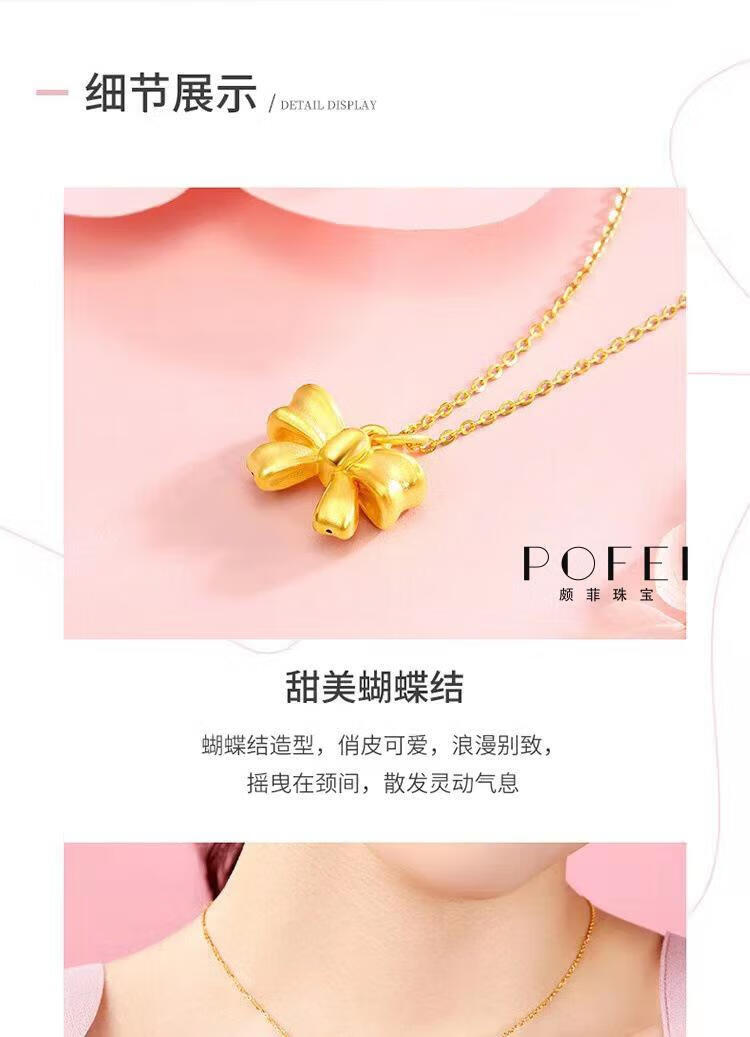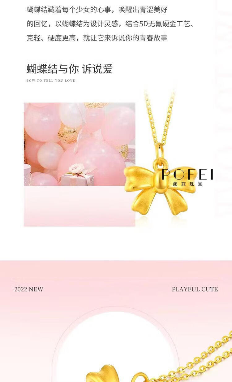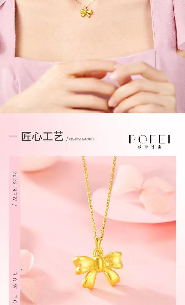Chenru 999 gold bow pendant gold fugitive princess bow necklace 3D hard gold bow set chain bow single pendant