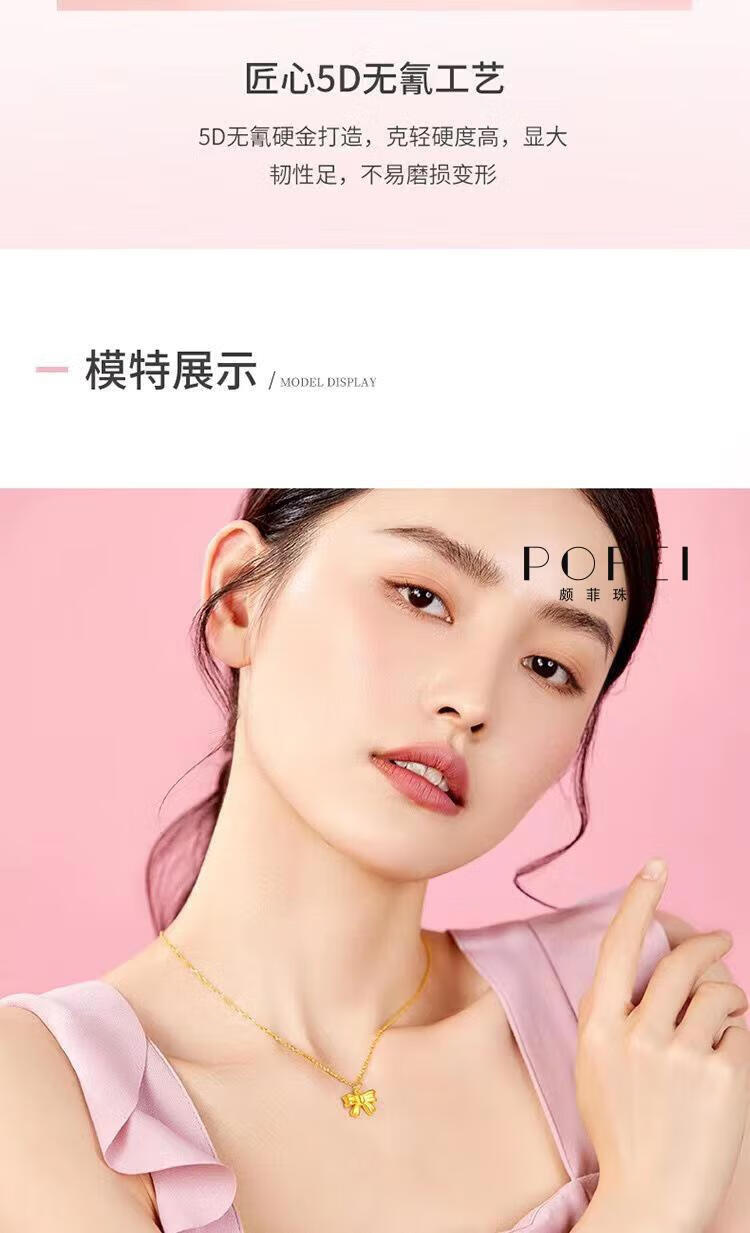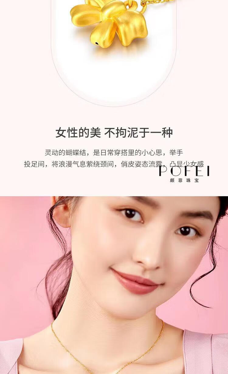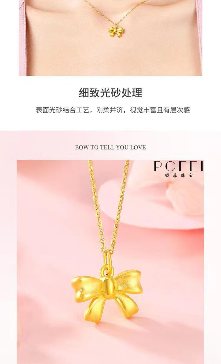 Chenru 999 gold bow pendant gold fugitive princess bow necklace 3D hard gold bow set chain bow single pendant