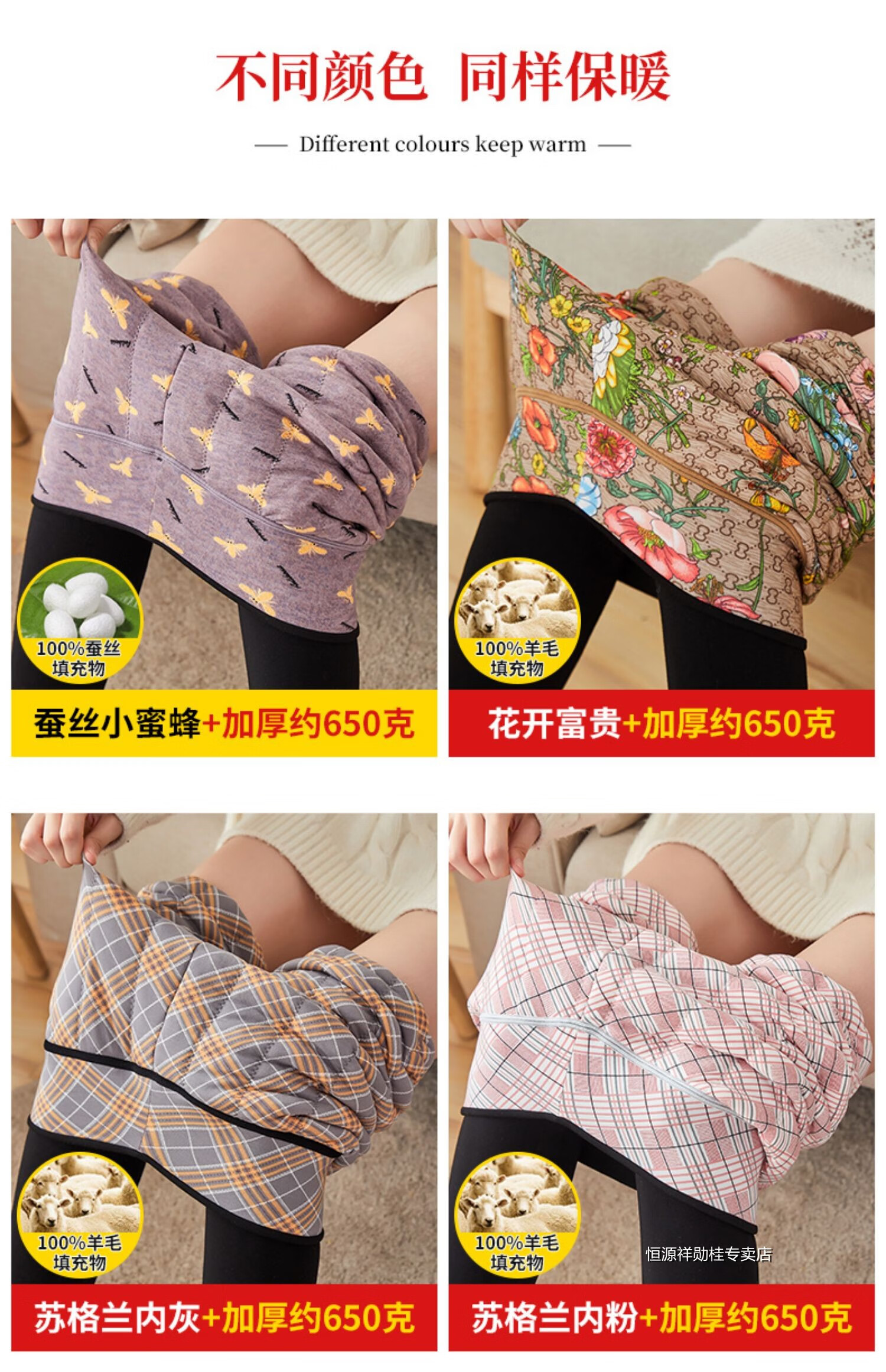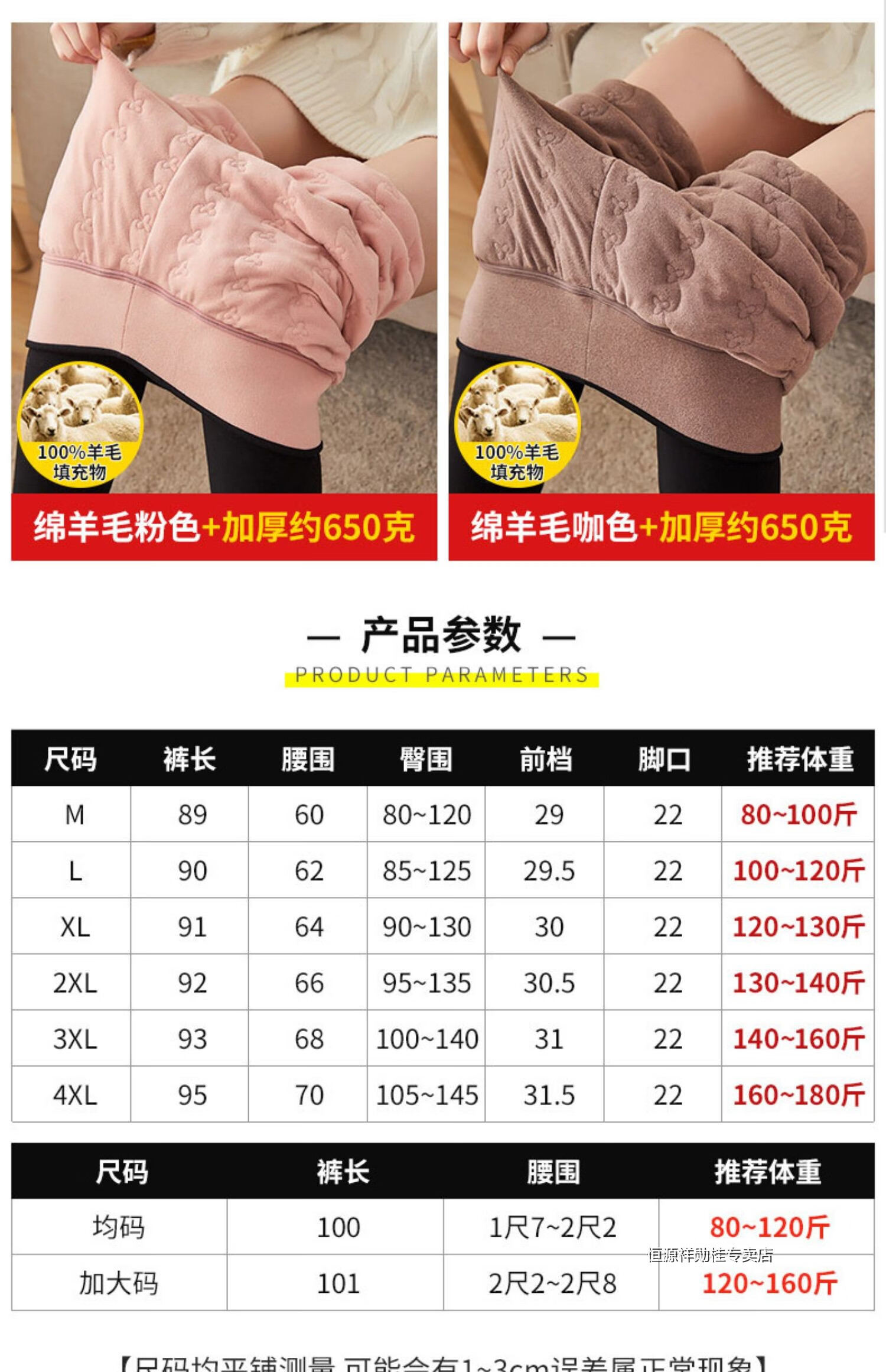 Hengyuanxiang wool leggings for women in autumn and winter plus velvet and thickened silk high-waist elastic slimming northeastern cotton pants large size warm pants wool kage (100%) sheep wool filling-stepping feet L recommended 100-120Jin Jin equals 0.5 kg)