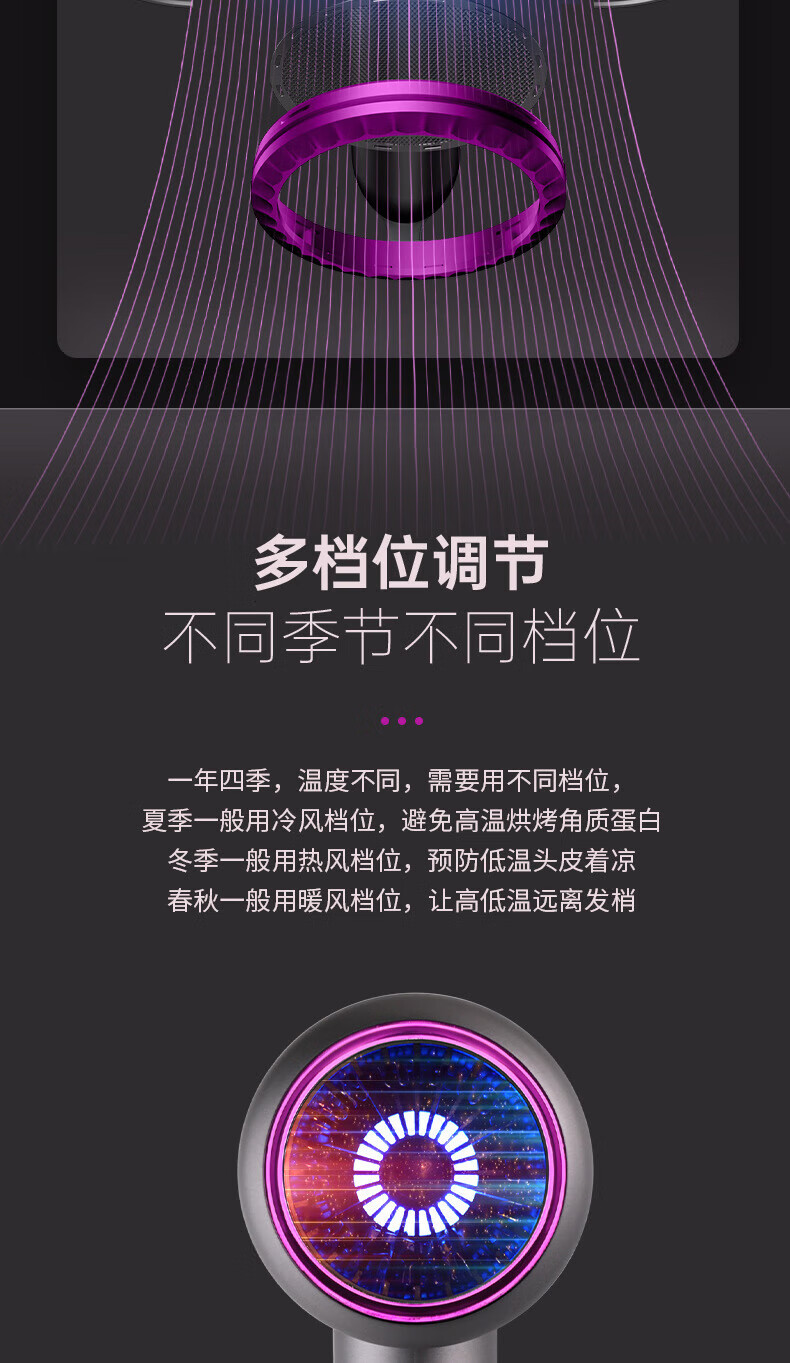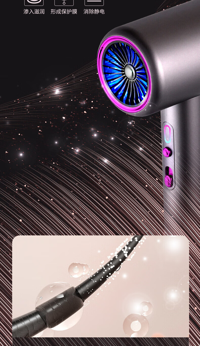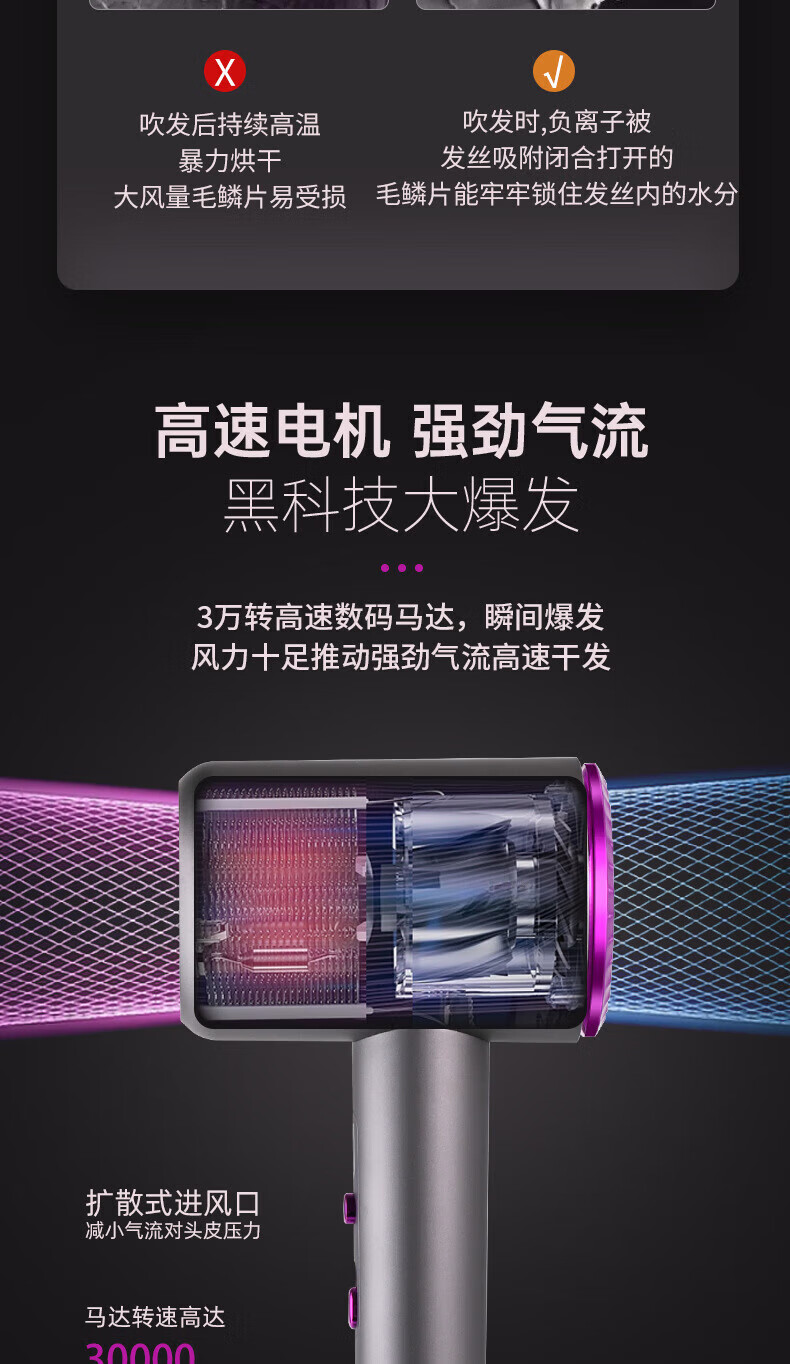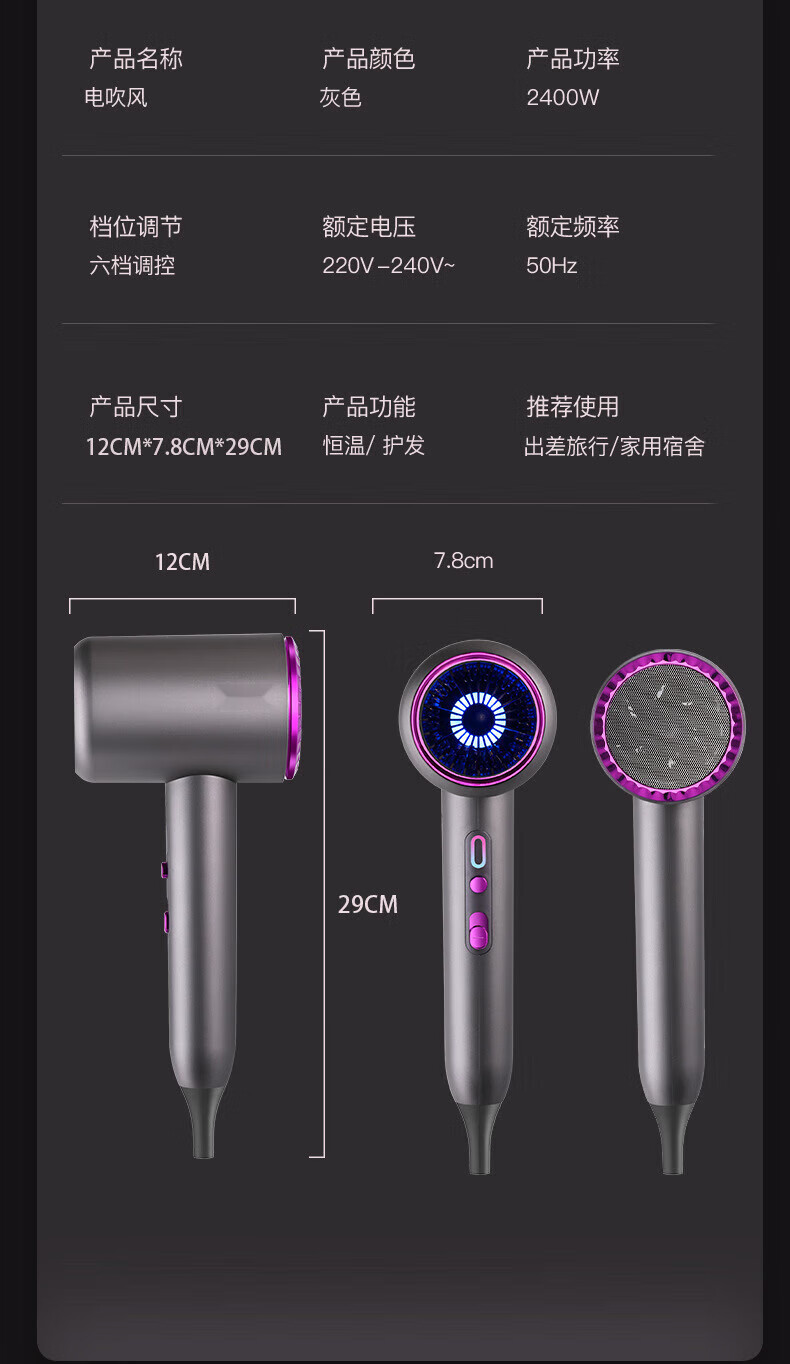 Dysendele 2025 new high-speed hair dryer household silent negative ions high power does not hurt hair strong wind quick-drying hair care portable hair dryer hotel girlfriend gray 2400W upgraded version 2 billion negative ions
