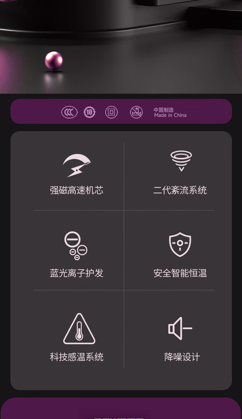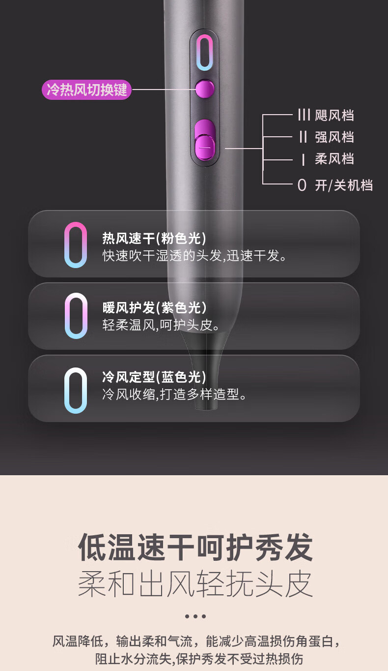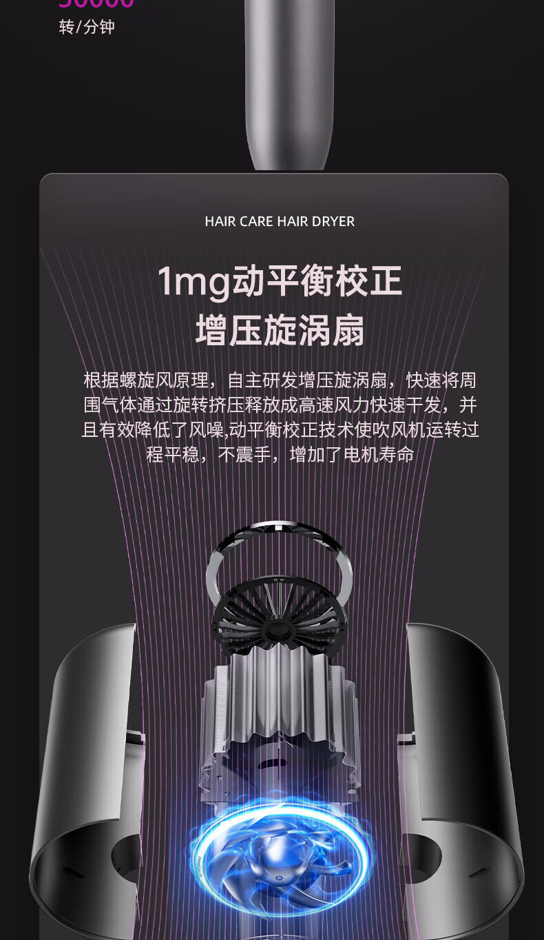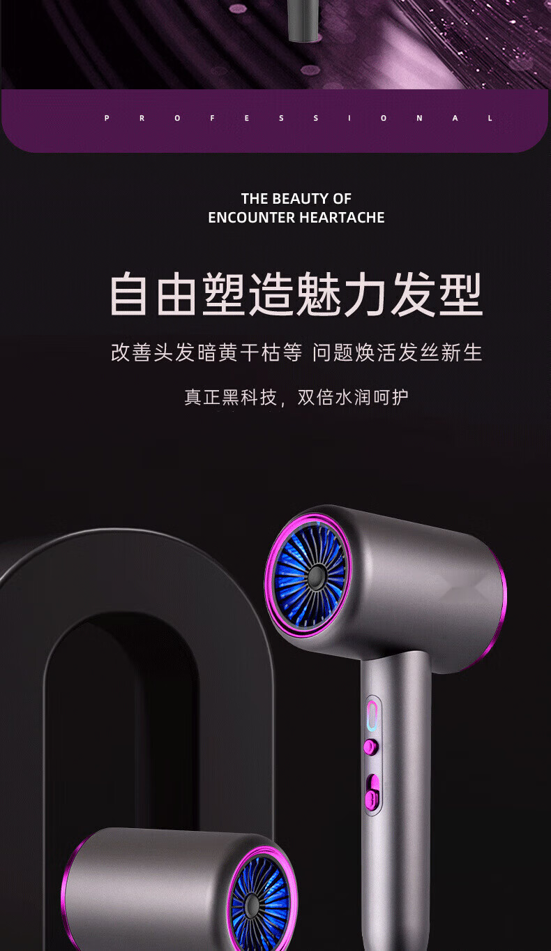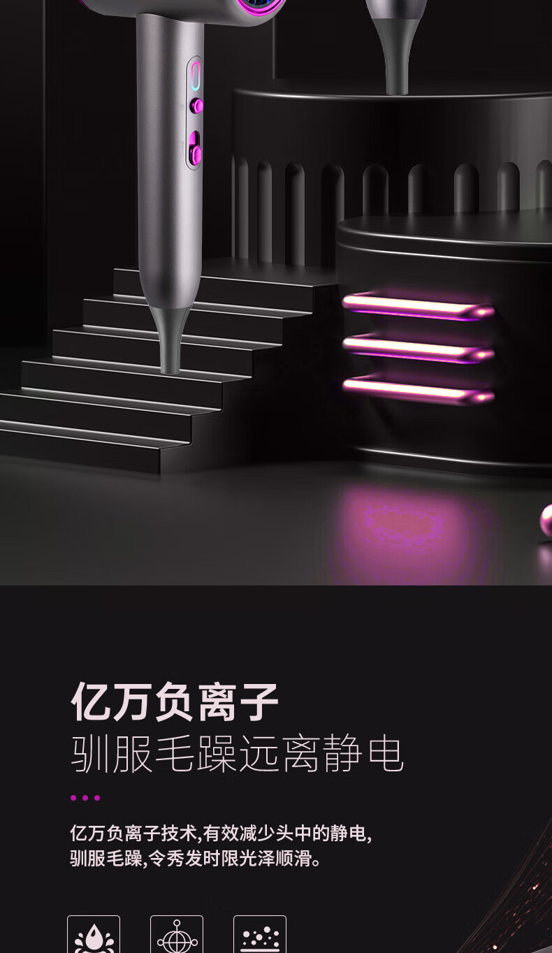 Dysendele 2025 new high-speed hair dryer household silent negative ions high power does not hurt hair strong wind quick-drying hair care portable hair dryer hotel girlfriend gray 2400W upgraded version 2 billion negative ions