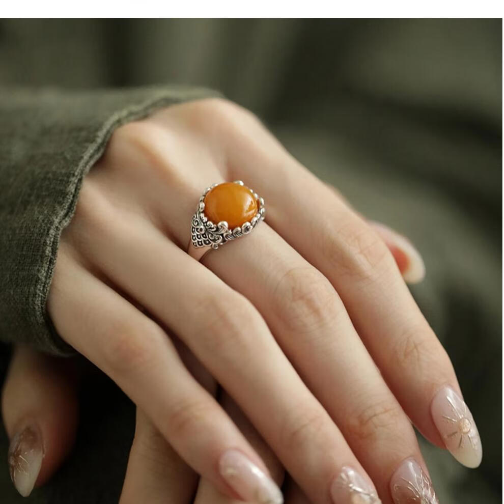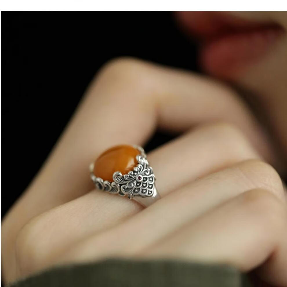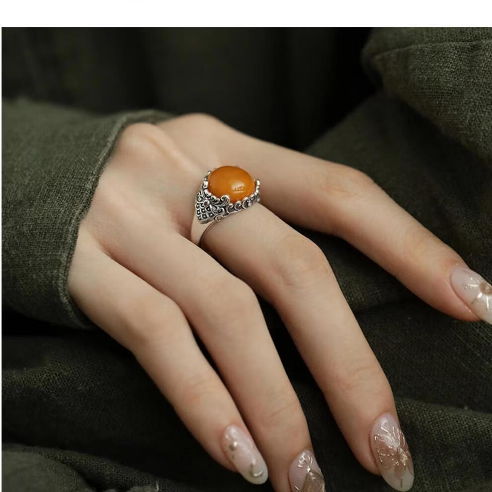 Twilight beeswax auspicious cloud silver ring for women, light luxury, retro, non-fading opening, adjustable index finger ring opening, adjustable beeswax ring