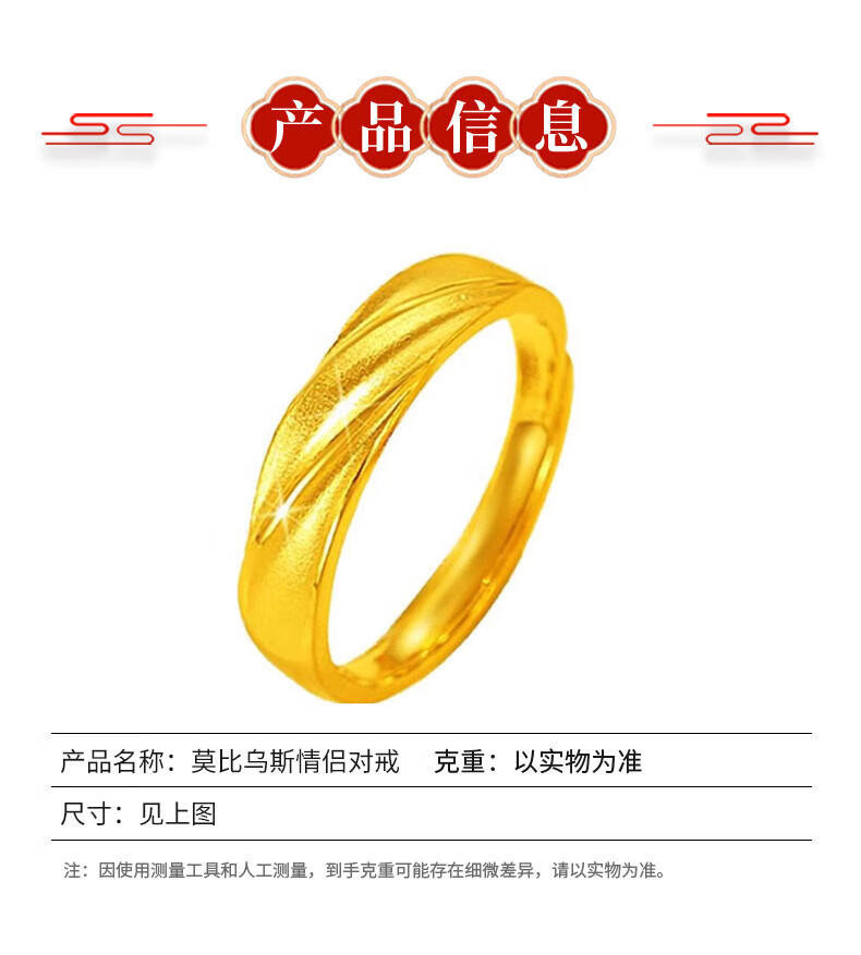 Dui Shen gold-wrapped silver female gold Mobius couple ring as a birthday gift for girlfriend and Chinese Valentine's Day holiday gift. A Moebius female ring 999 pure gold_with certificate