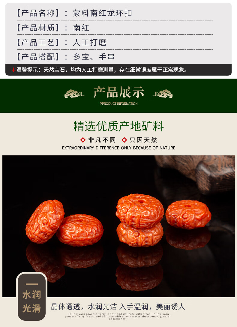 Xiyin Fu Baoshan Nanhong loose beads full of flesh dragon ring buckle diy agate bracelet spaced beads star and moon Buddha beads coconut base King Kong accessories 9-10mm/piece
