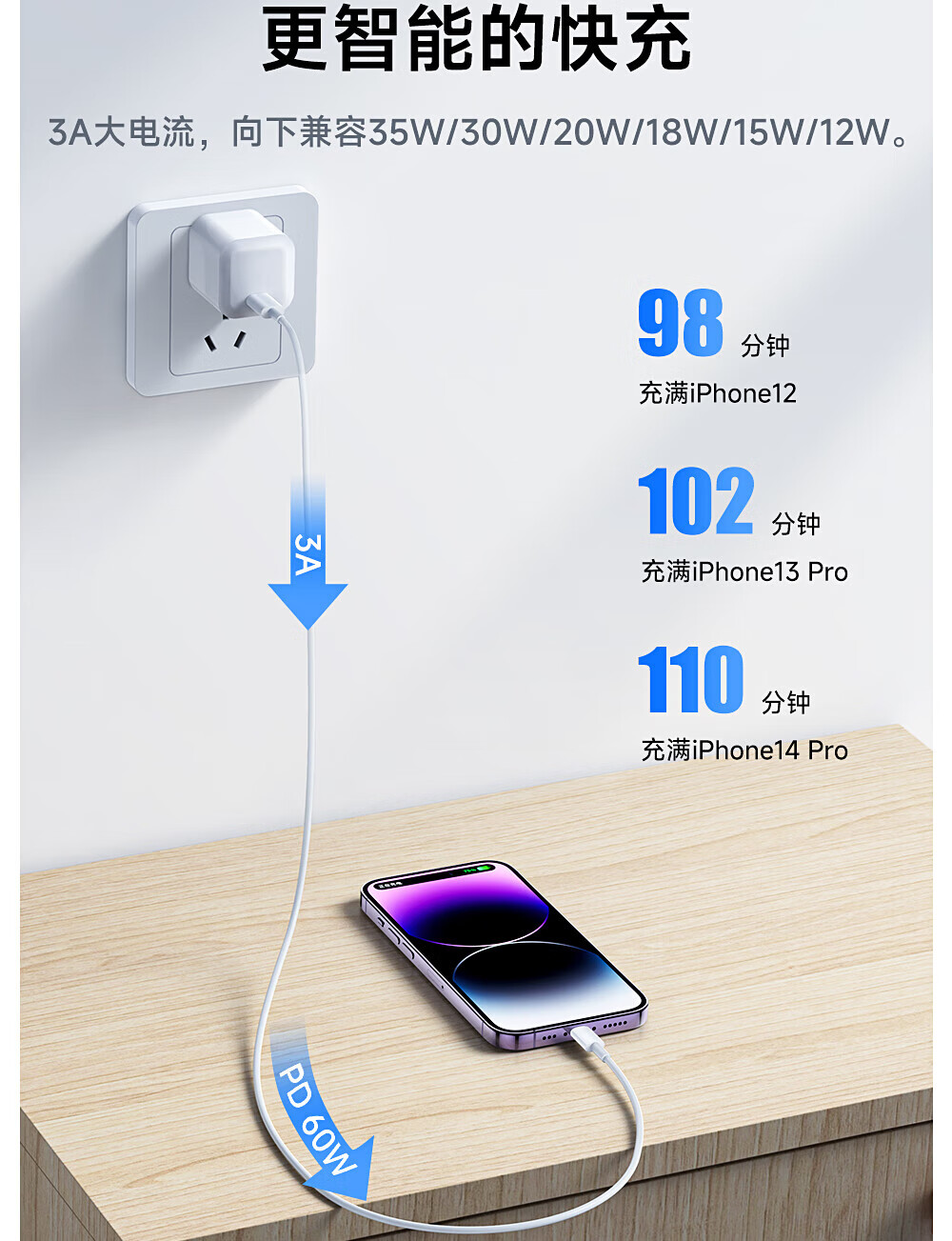 Original authentic Apple fast charging data cable charger cable iPhone14/13/16/15/17 original Apple 8-14 series PD1 meter data cable*2