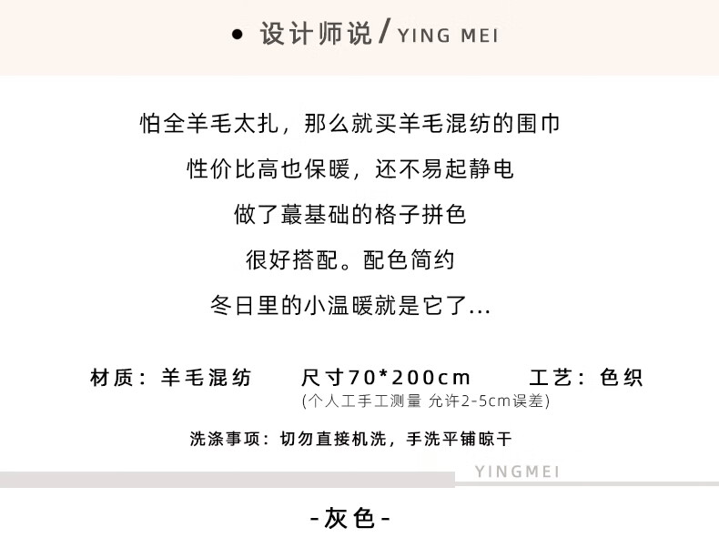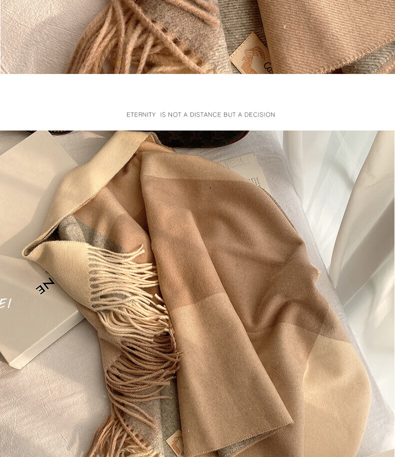 Woodpecker wool blended plaid scarf for men and women in autumn and winter thickened and warm gray versatile shawl dual-purpose winter fashion scarf gray