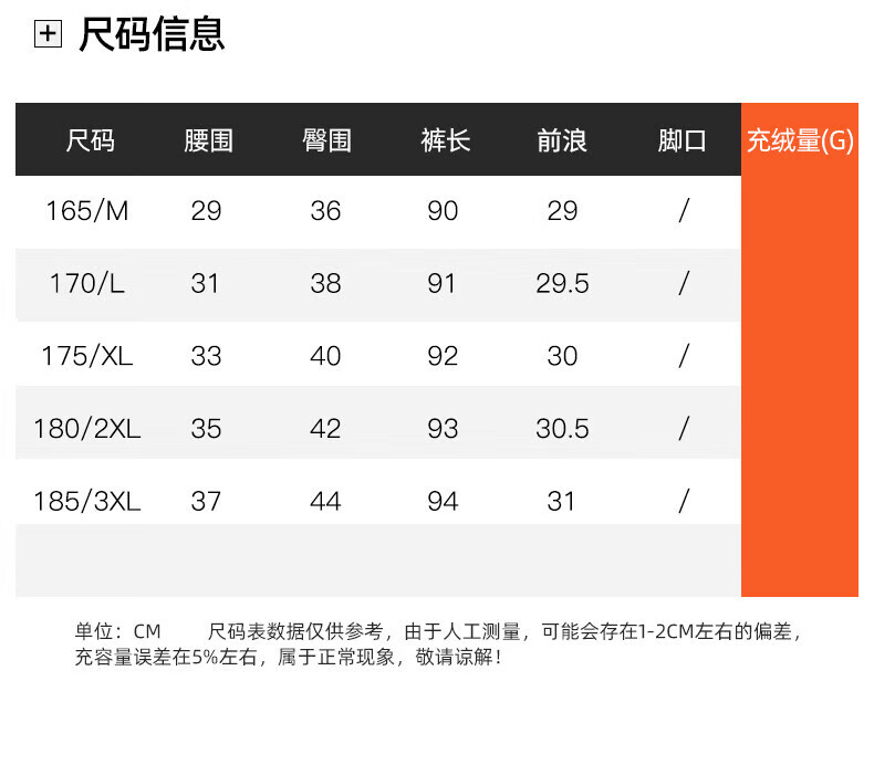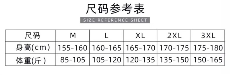 China (cm) 165 / 88-90 170 / 96-98 175 / 108-110 180 / 118-122 185 / 126-130
