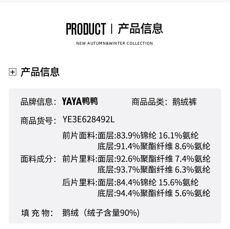 YAYA (YAYA) goose down down pants for women 2024 autumn and winter new fashion high waist slimming thickened warm shark pants DSZ YAYA black gold goose down shark pants black L (170)