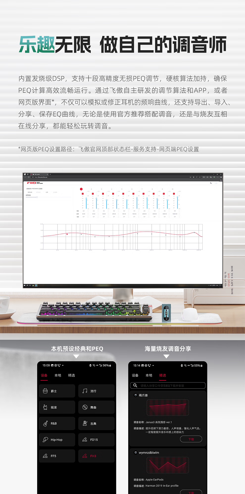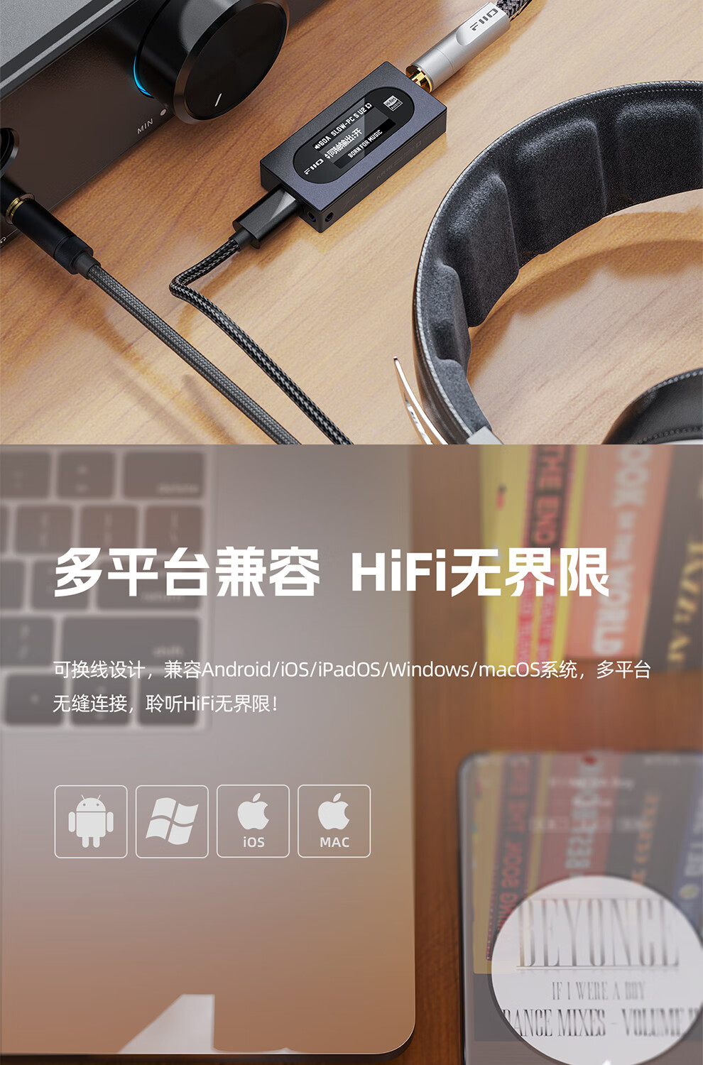 FiiO KA15 Decoder Headphone Amplifier HIFI Balanced 4.4 Computer Sound Card Android Mobile Phone Power Amplifier Portable Small Tail Adapter Cable Supports PS5 Black