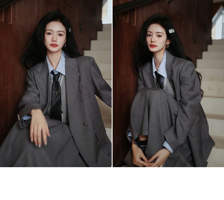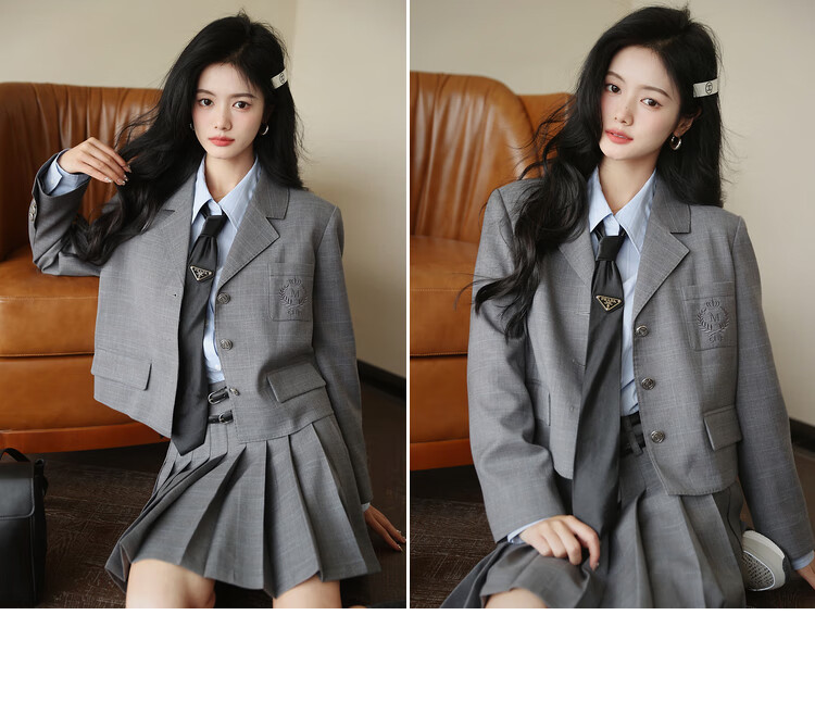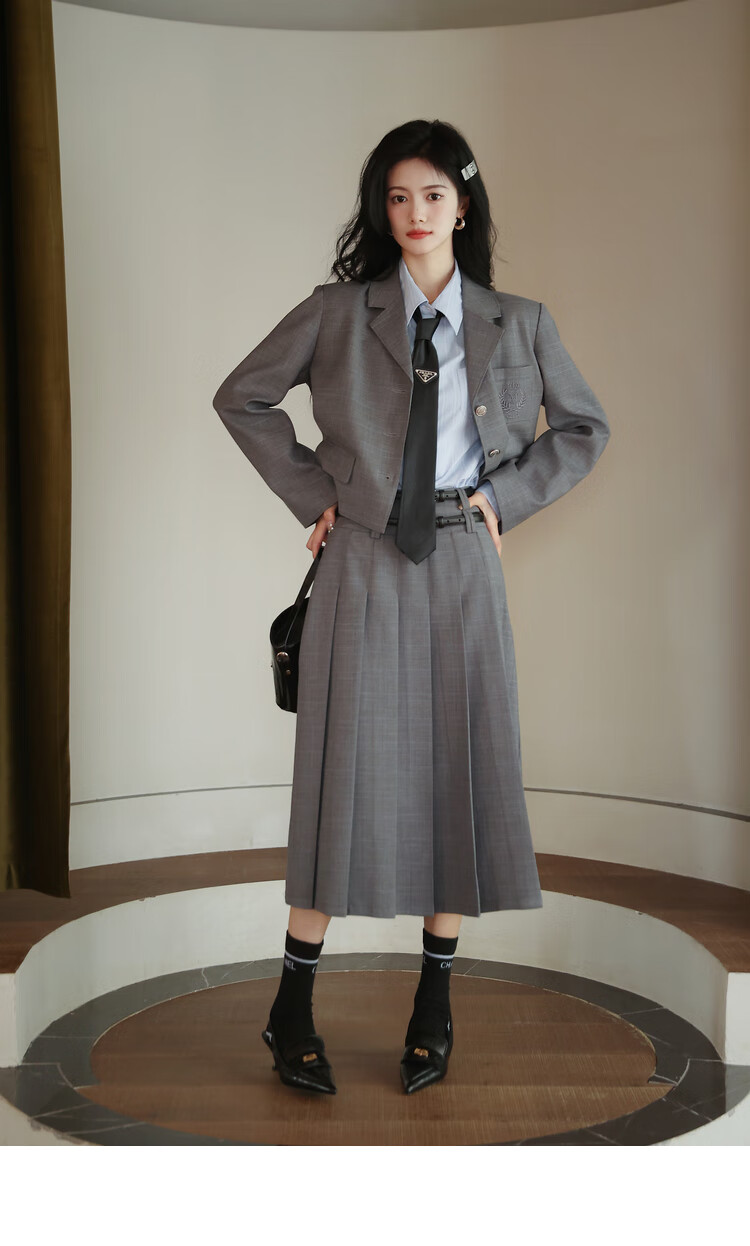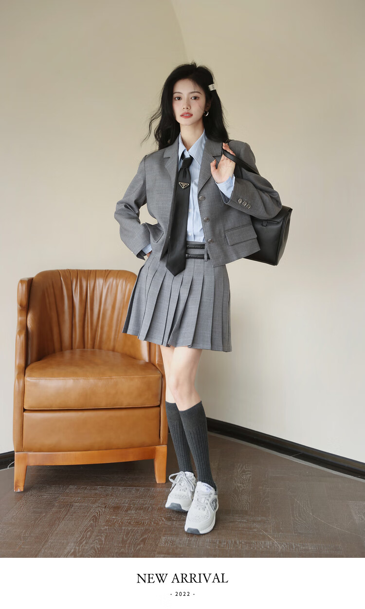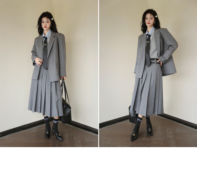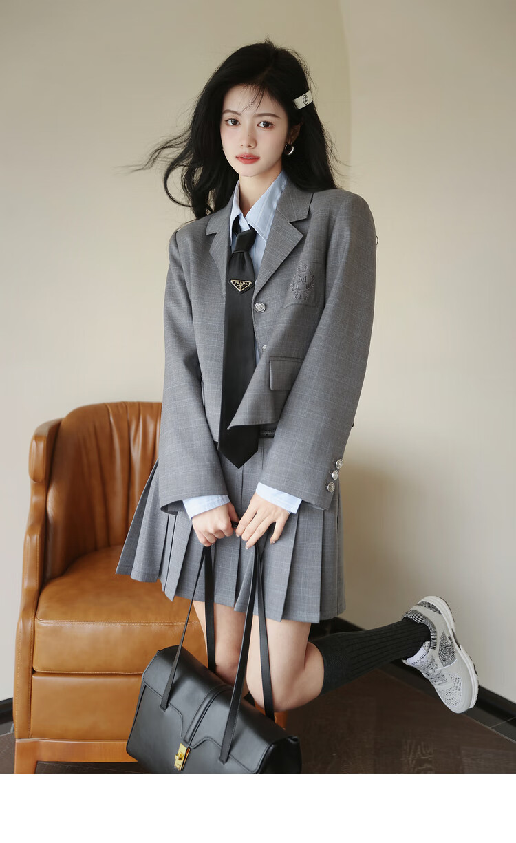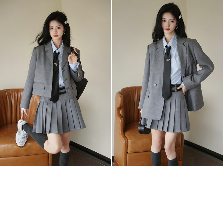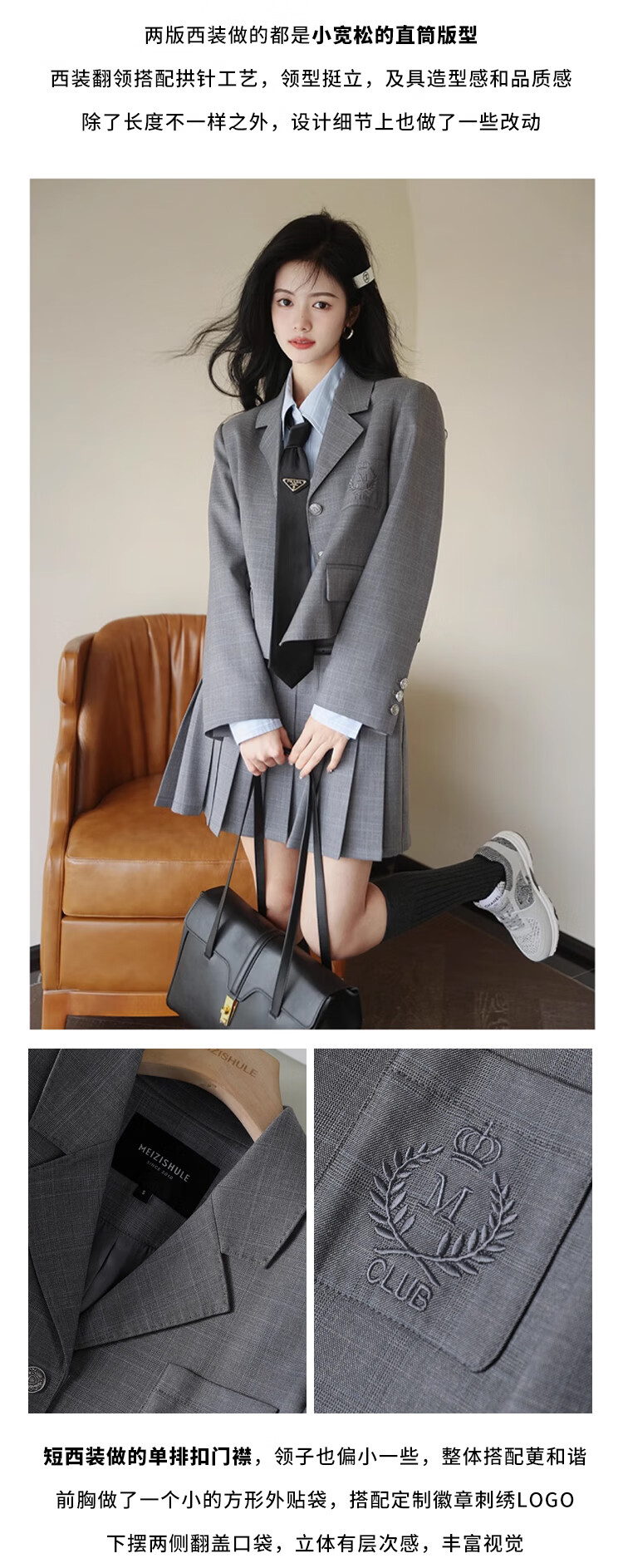 Plum Ripe St. Martin's Temperament Gray Suit Suit Women's British College Style Casual Jacket Half Skirt Gray Plaid (Short Suit) S