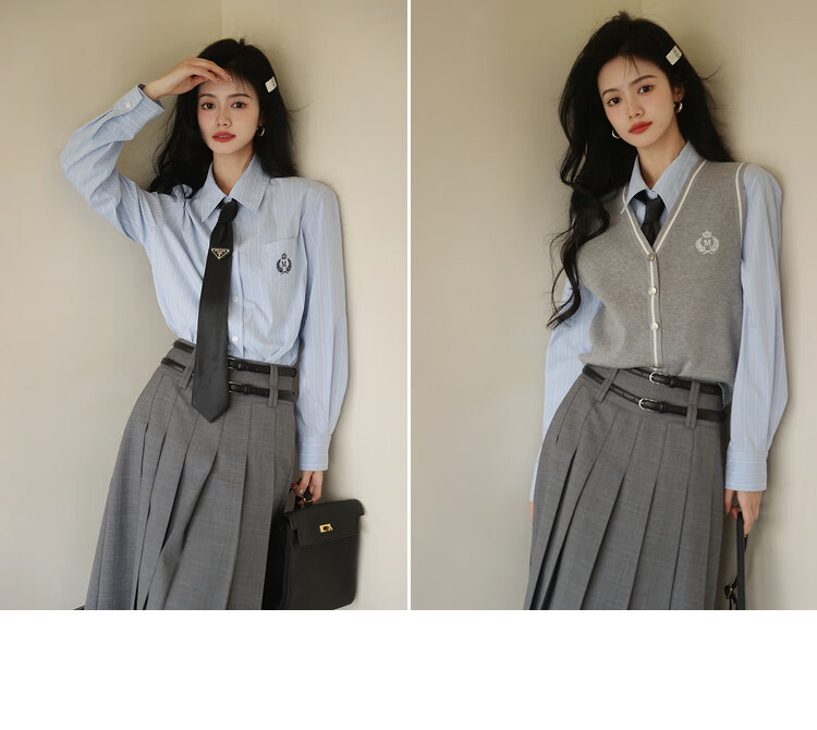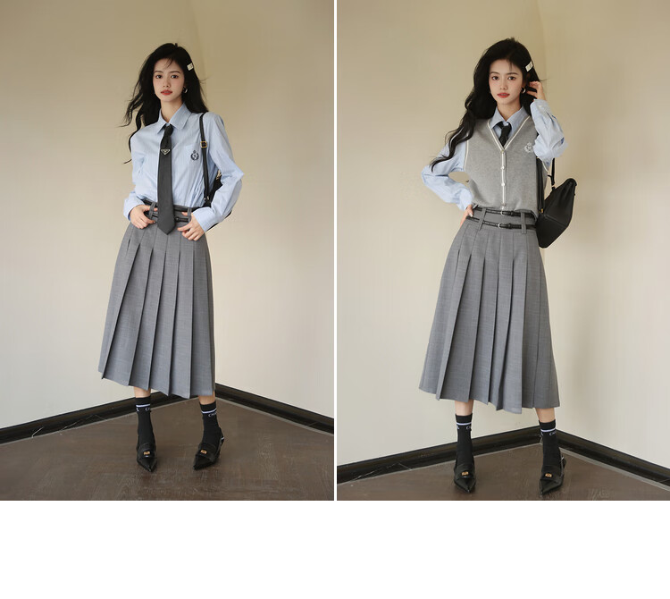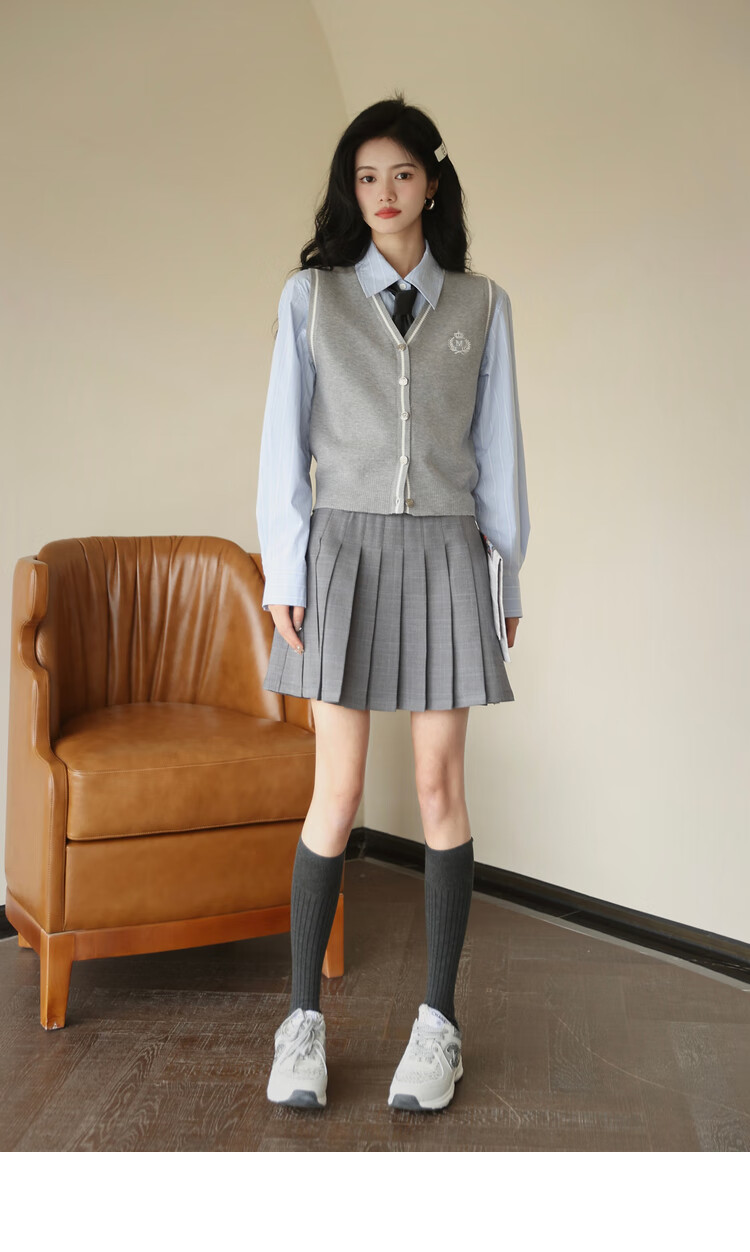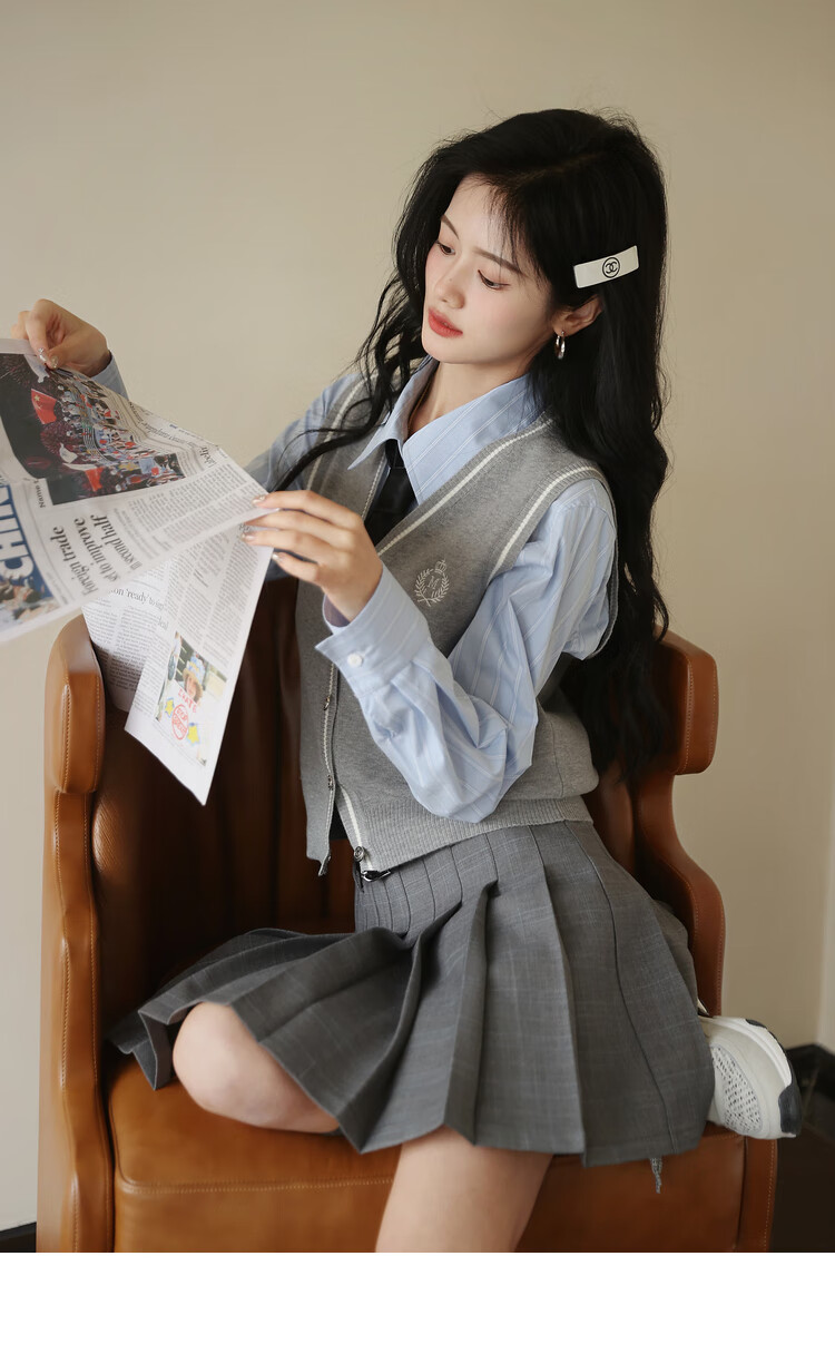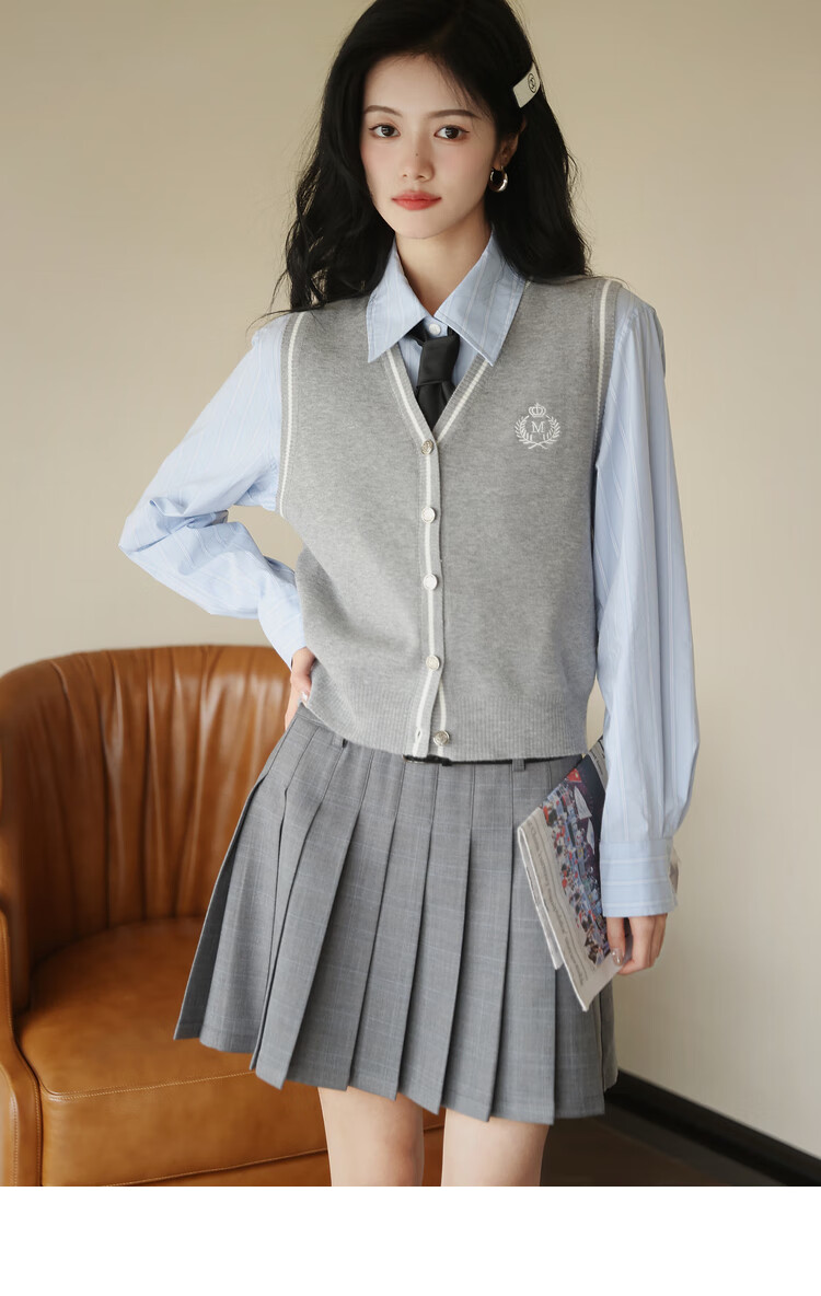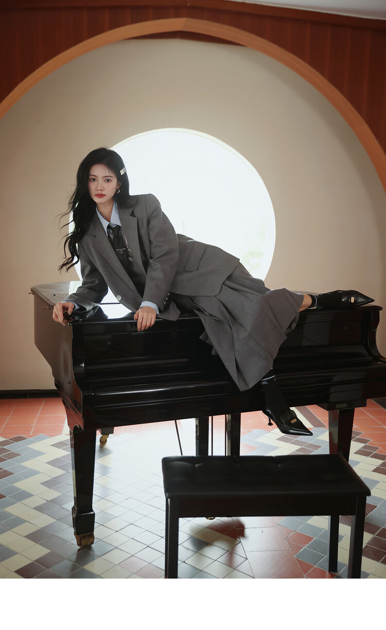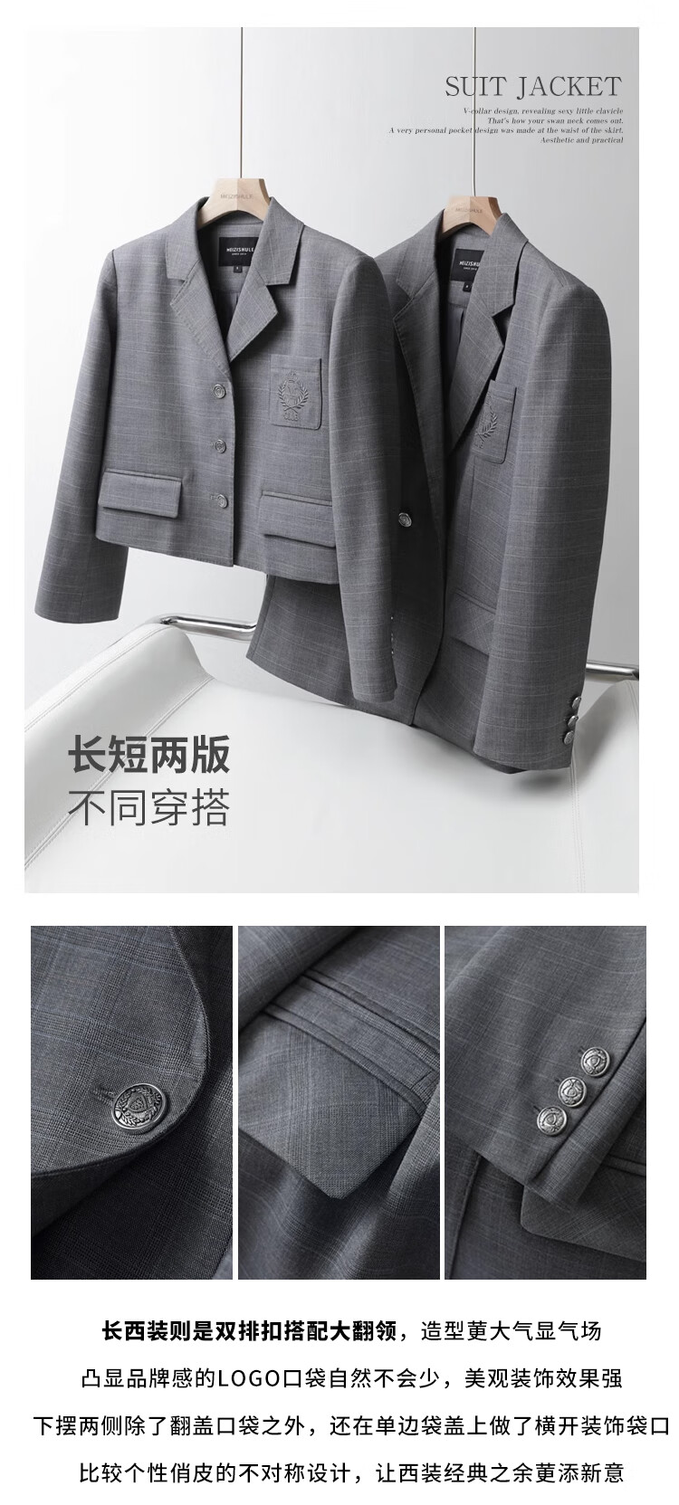 Plum Ripe St. Martin's Temperament Gray Suit Suit Women's British College Style Casual Jacket Half Skirt Gray Plaid (Short Suit) S