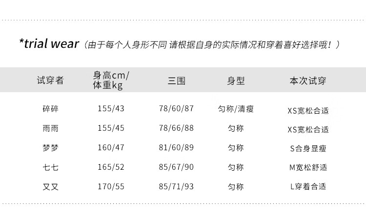 China (cm) 160-165/84-86 165-170 / 88-90 167-172 / 92-96 168-173 / 98-102 170-176 / 106-110