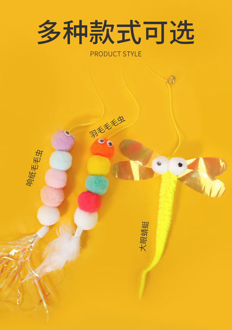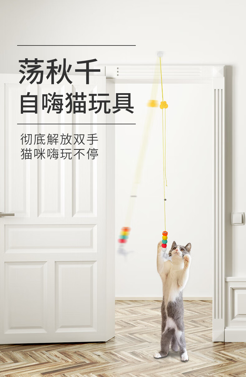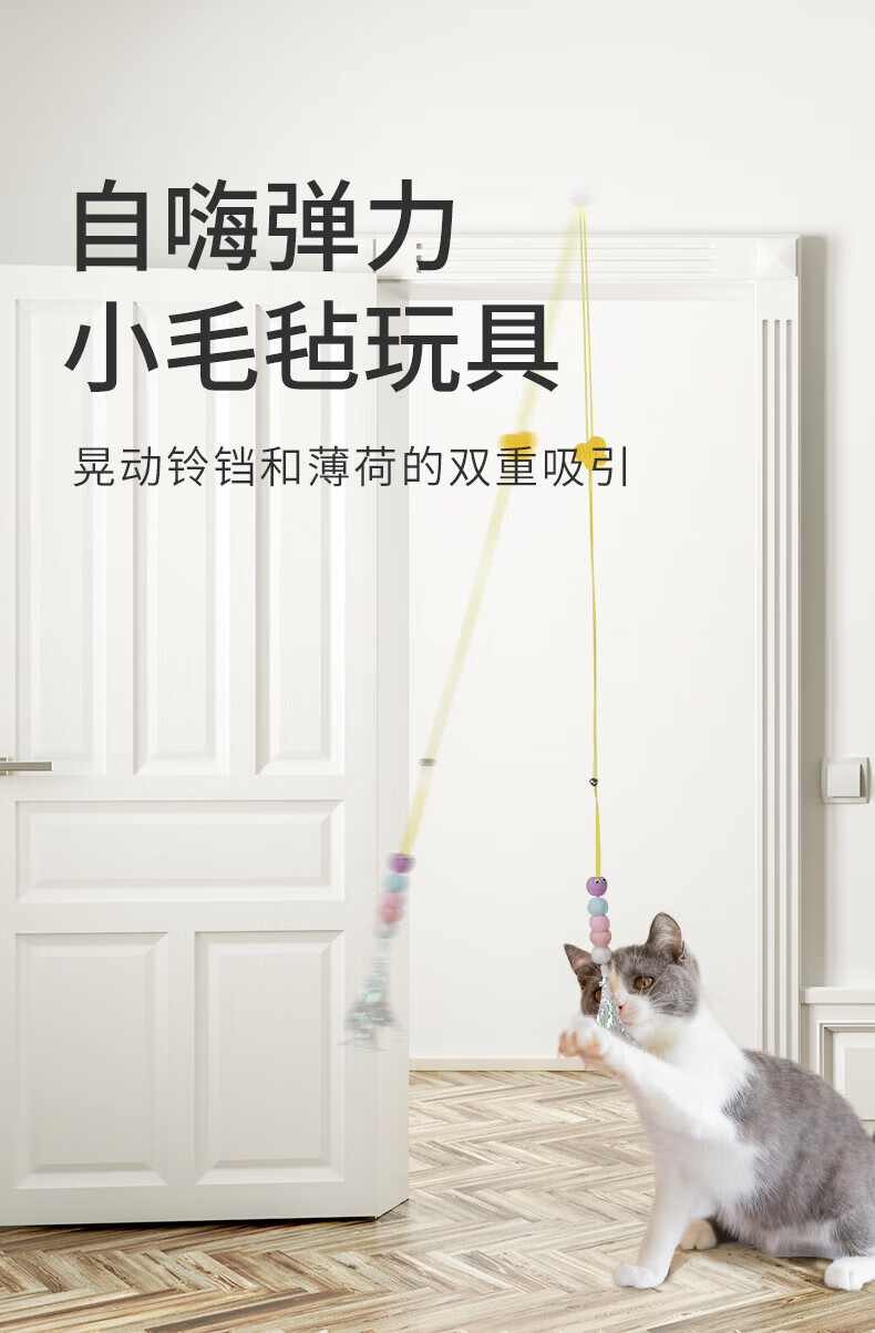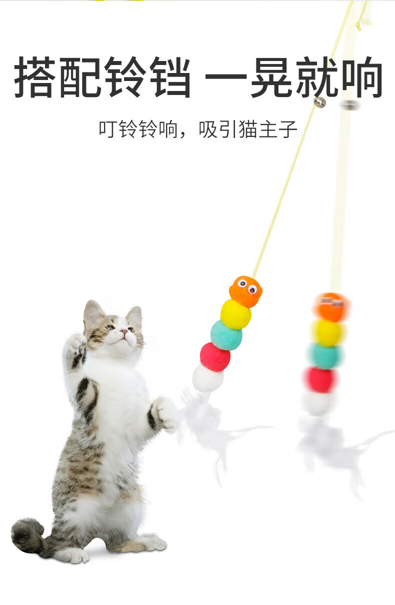 Cat toys to relieve boredom, swing, door hanging, elastic feather cat stick, bell, small mouse and cat supplies, adjustable rope length - 2 ring paper caterpillars