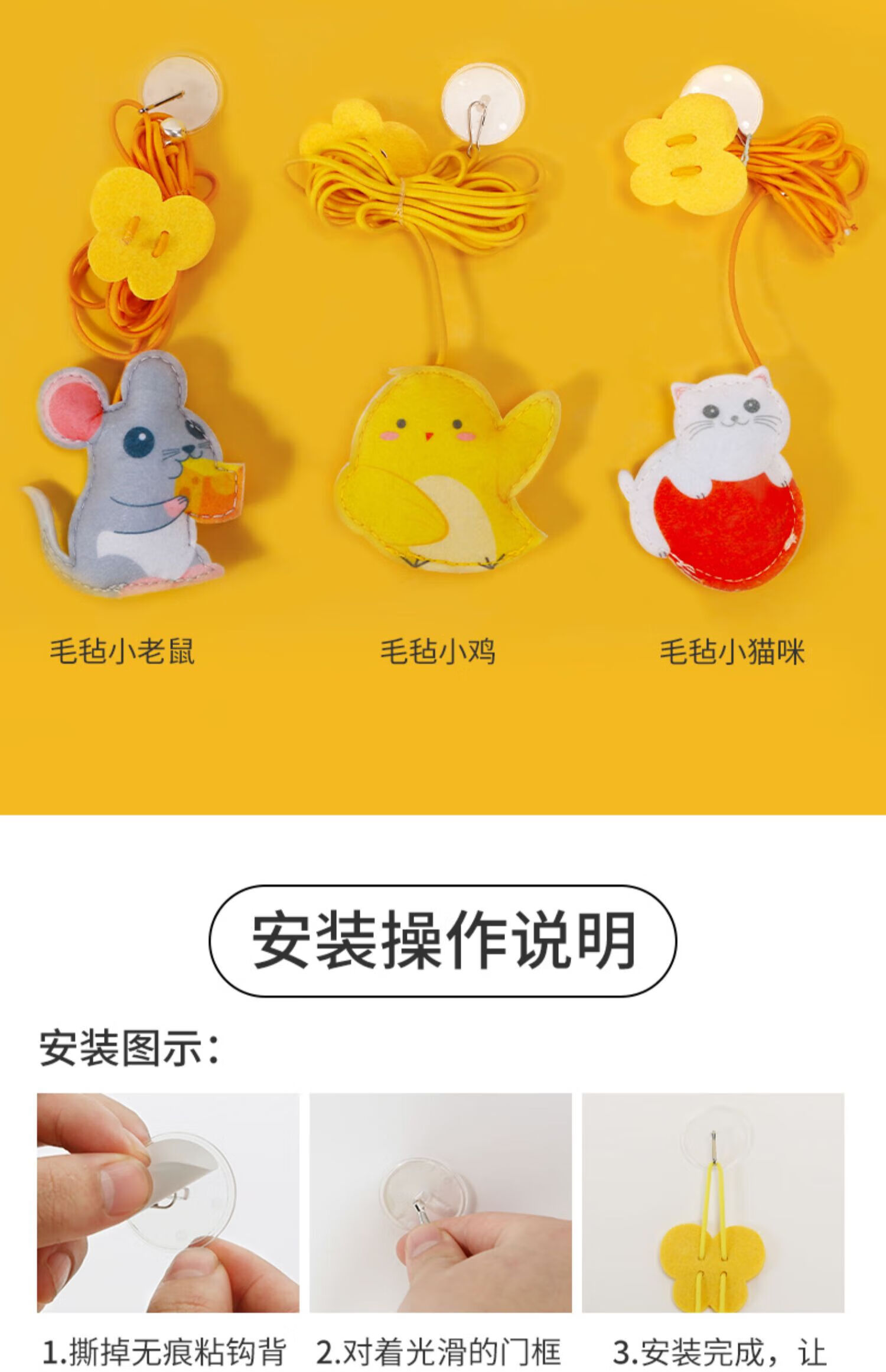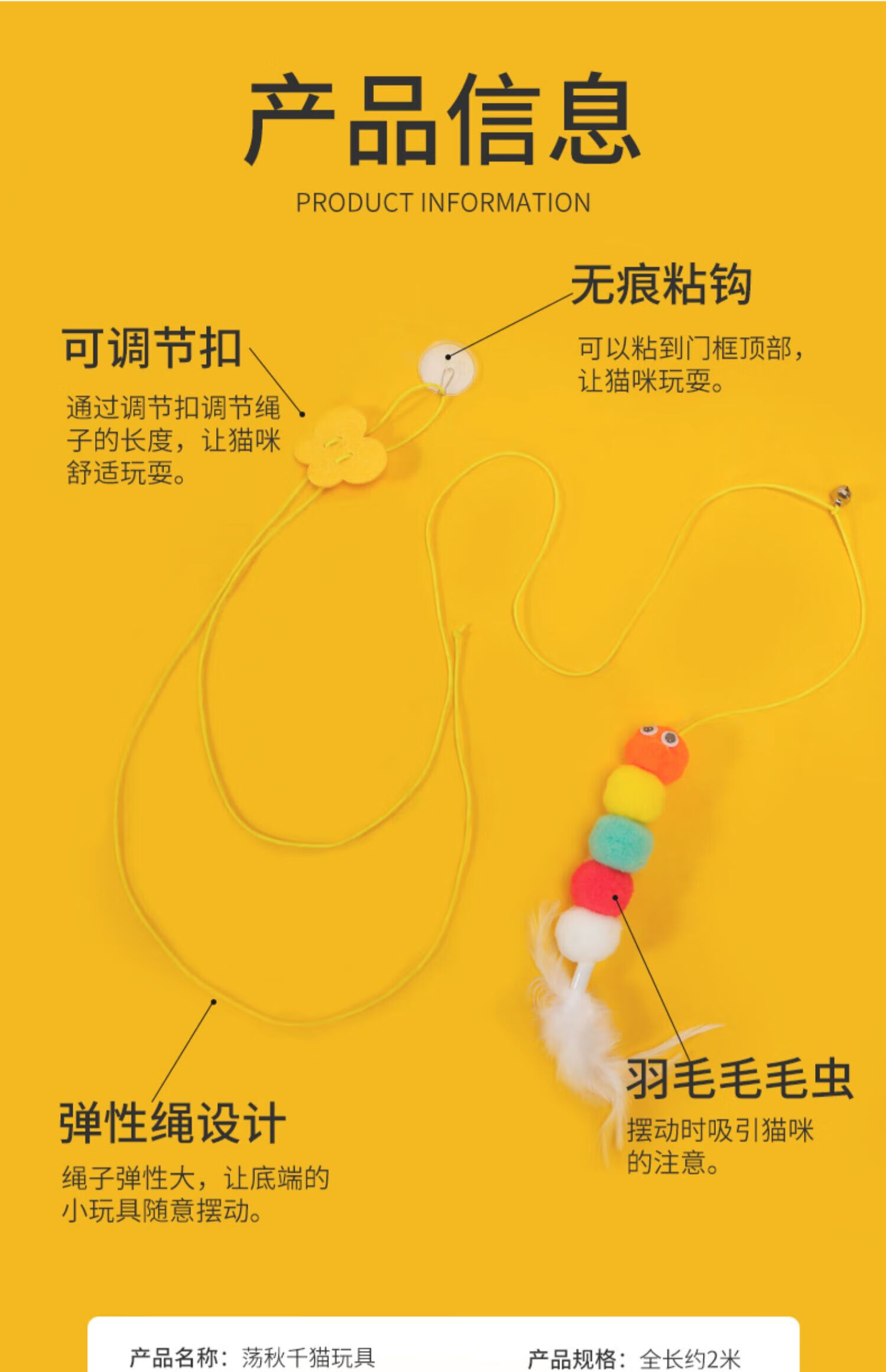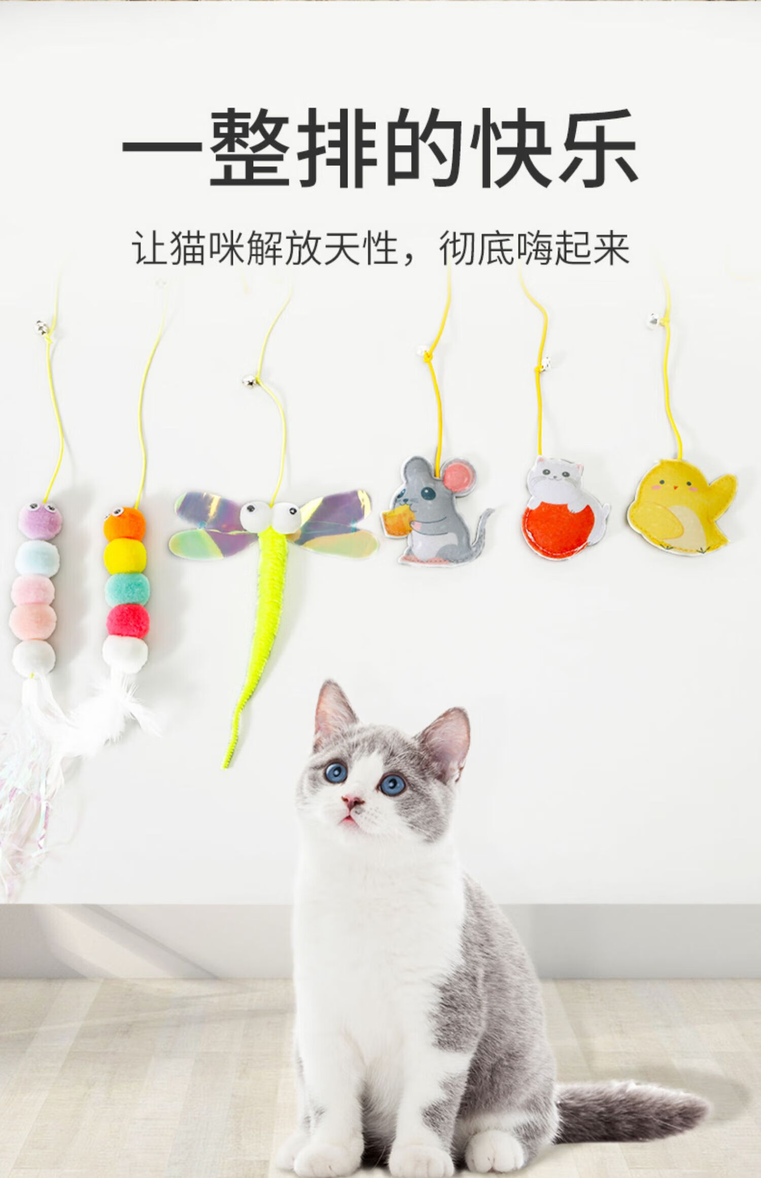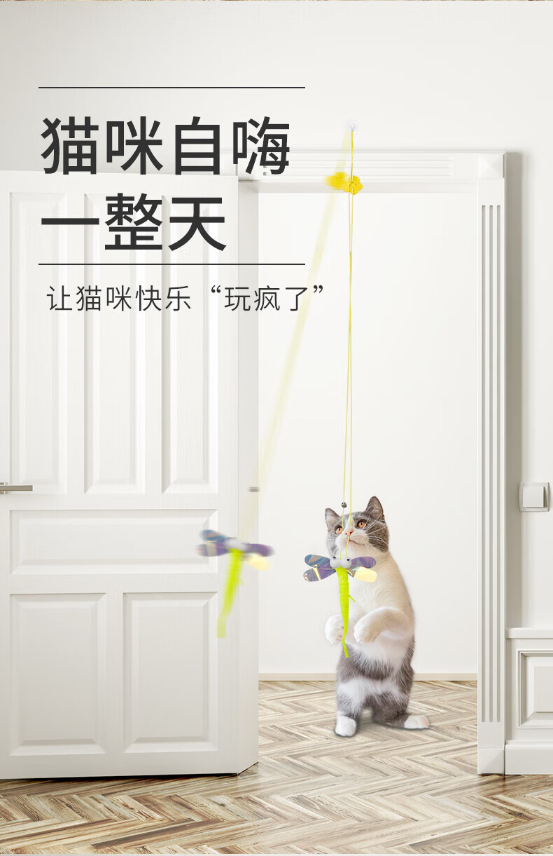 Cat toys to relieve boredom, swing, door hanging, elastic feather cat stick, bell, small mouse and cat supplies, adjustable rope length - 2 ring paper caterpillars