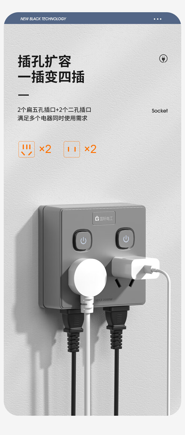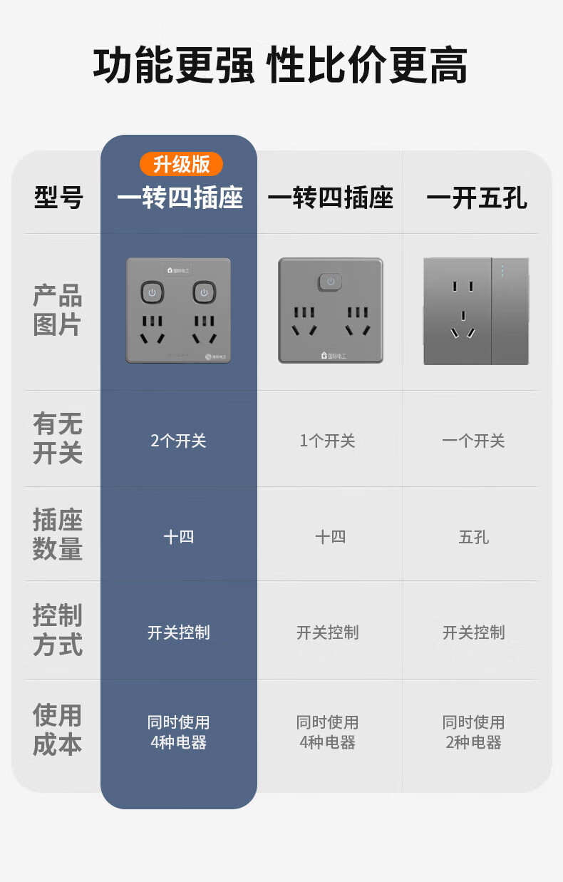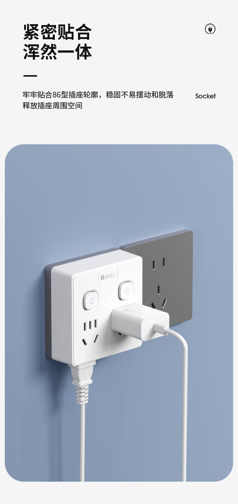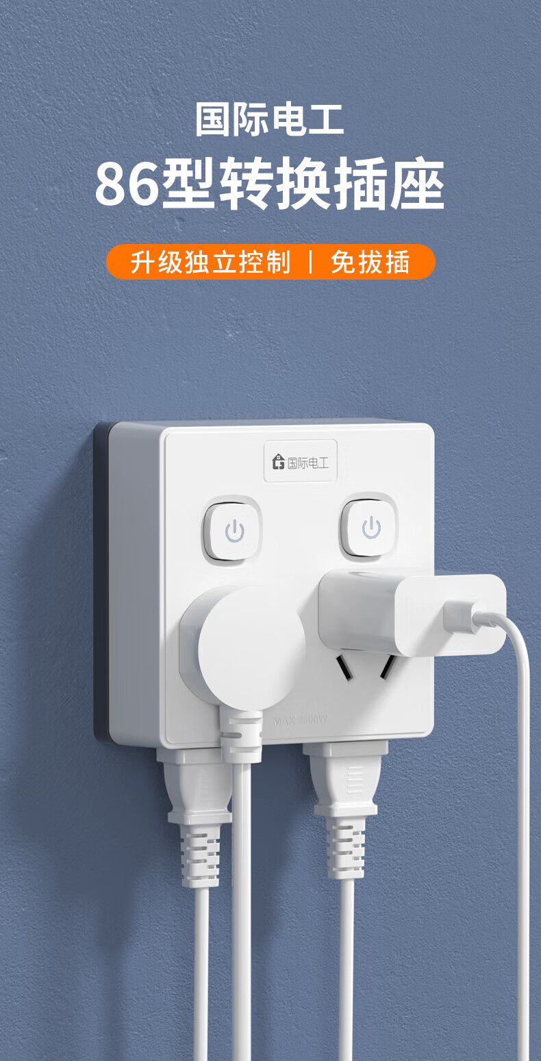 国际电工86型电源插座转换器多孔快充12/20w 带usb无线扩展排插一转四位多功能插头 【86型转换】一转四分控-白色
