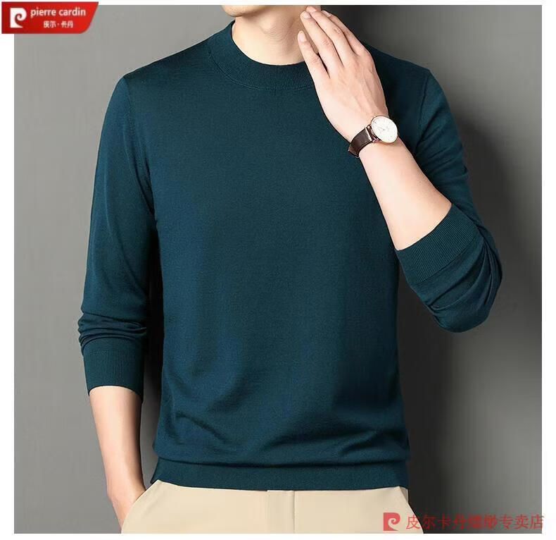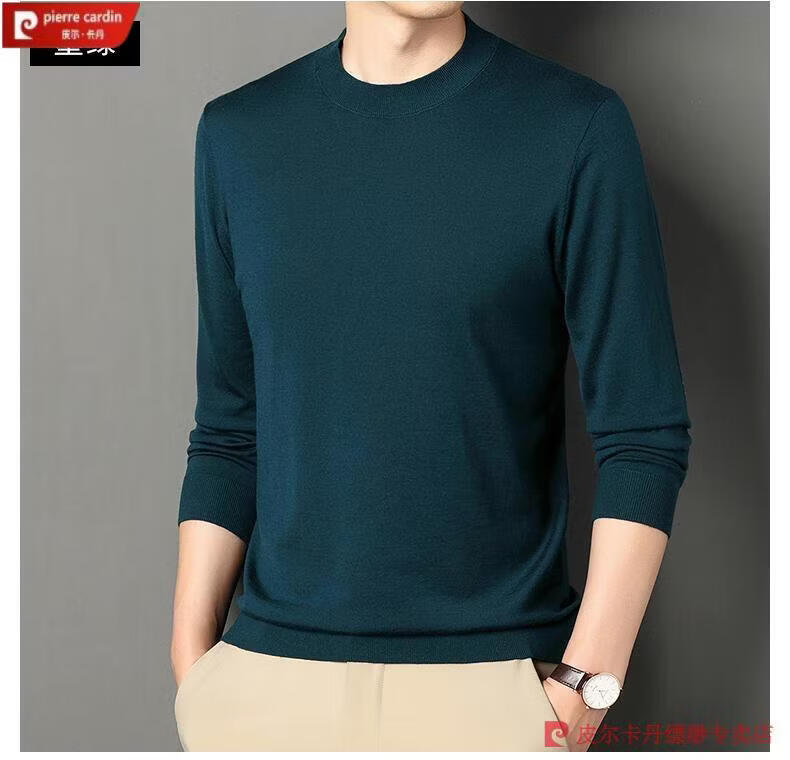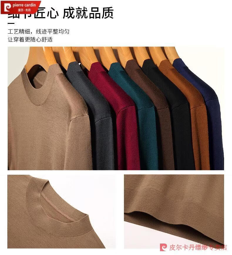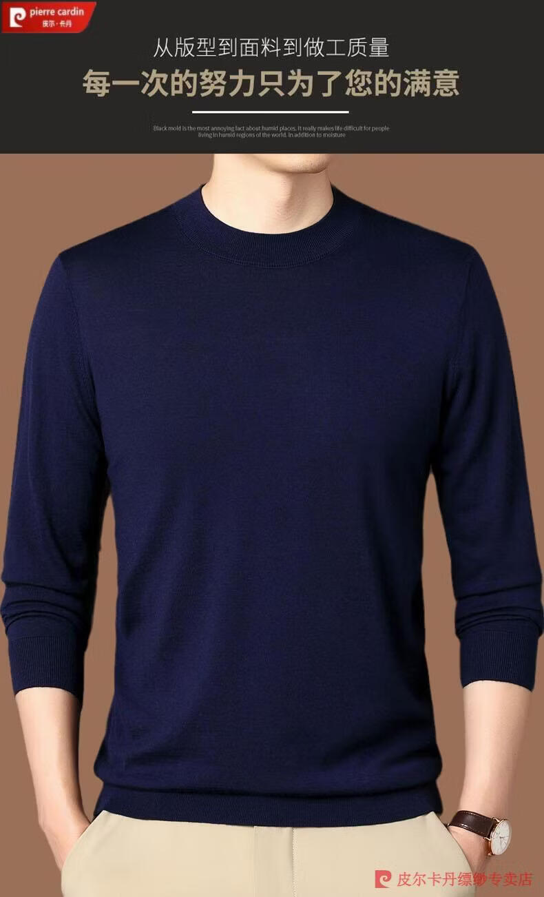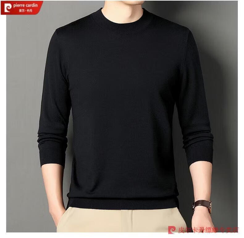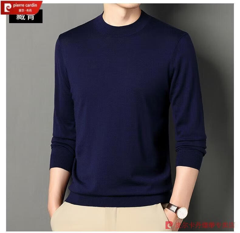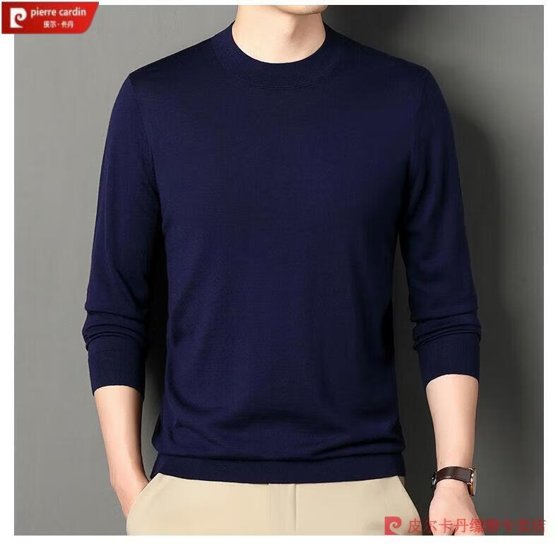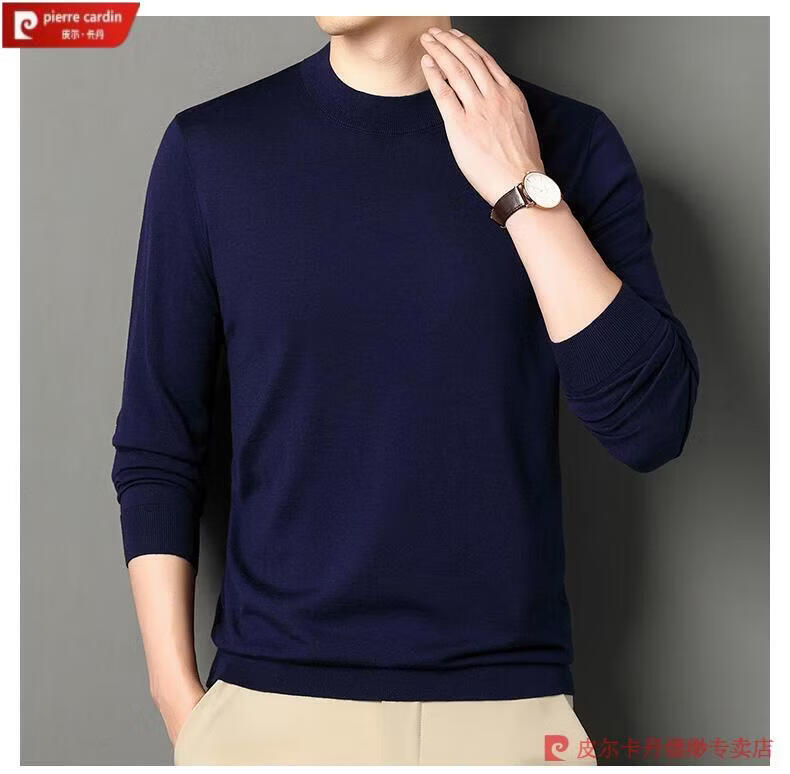 Pierre Cardin 100% Pure Cashmere Sweater Men's Thin Round Neck Sweater Men's Autumn and Winter Bottoming Sweater Machine Washable Cashmere Sweater D003-Navy 2XL 180 Recommended 155-170 Jin Jin equals 0.5 kg