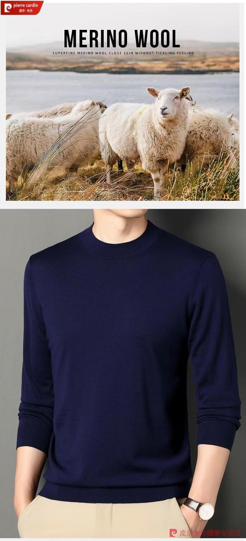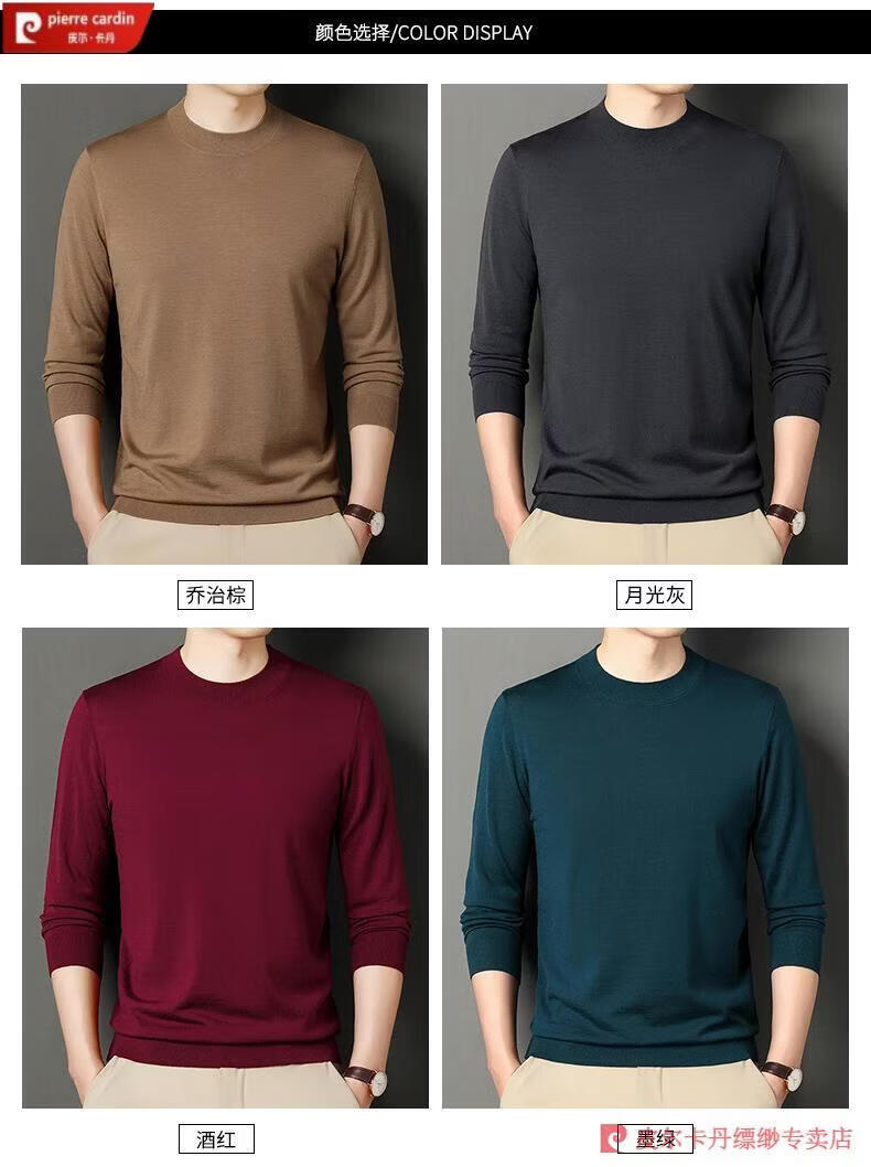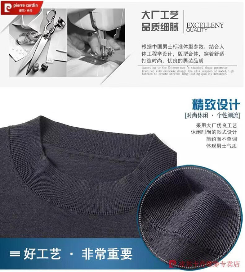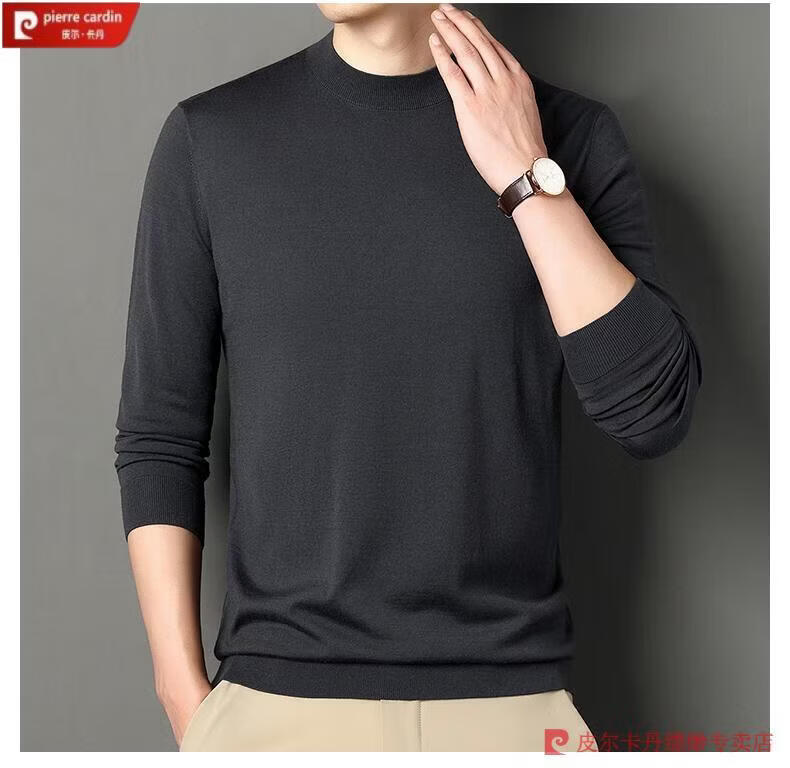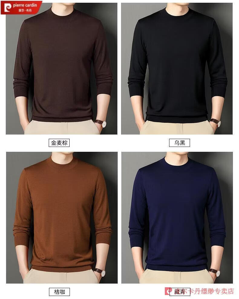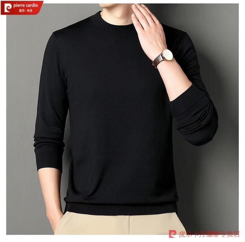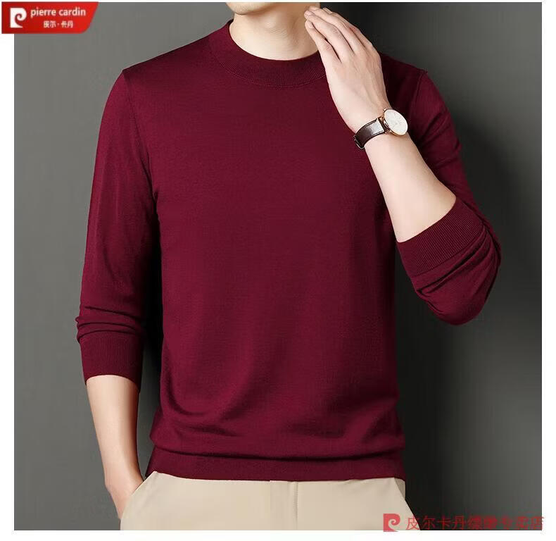 Pierre Cardin 100% Pure Cashmere Sweater Men's Thin Round Neck Sweater Men's Autumn and Winter Bottoming Sweater Machine Washable Cashmere Sweater D003-Navy 2XL 180 Recommended 155-170 Jin Jin equals 0.5 kg