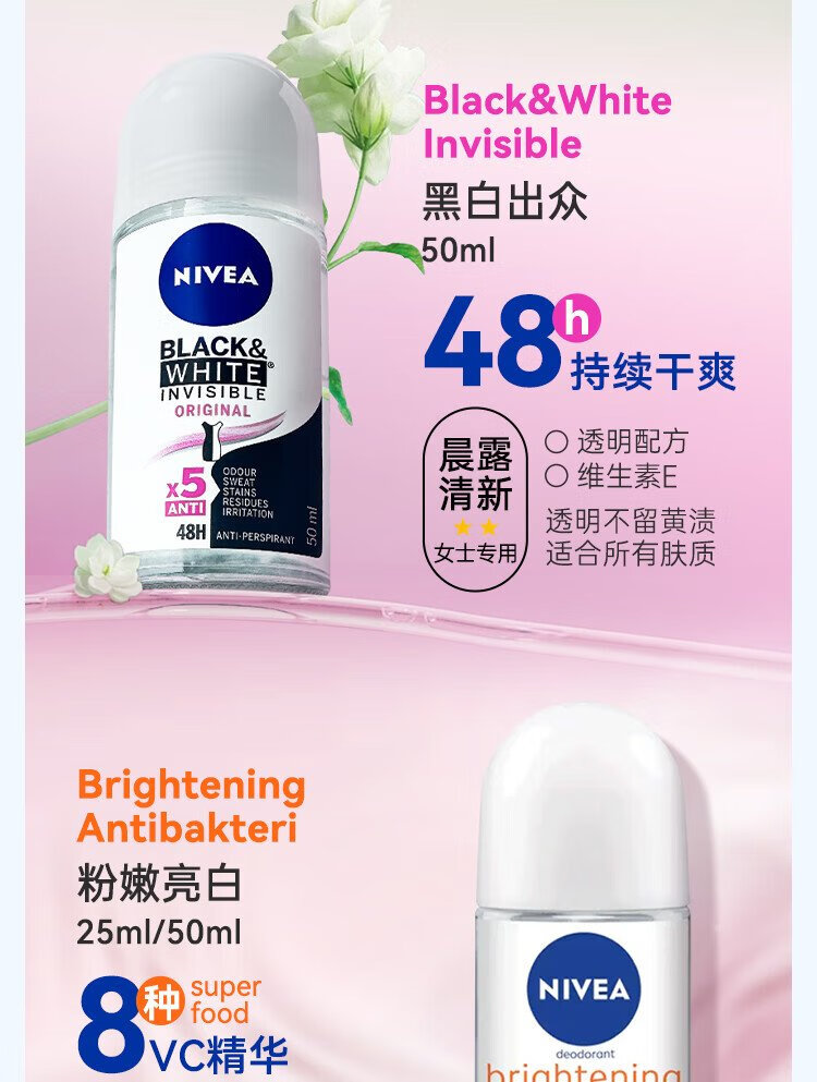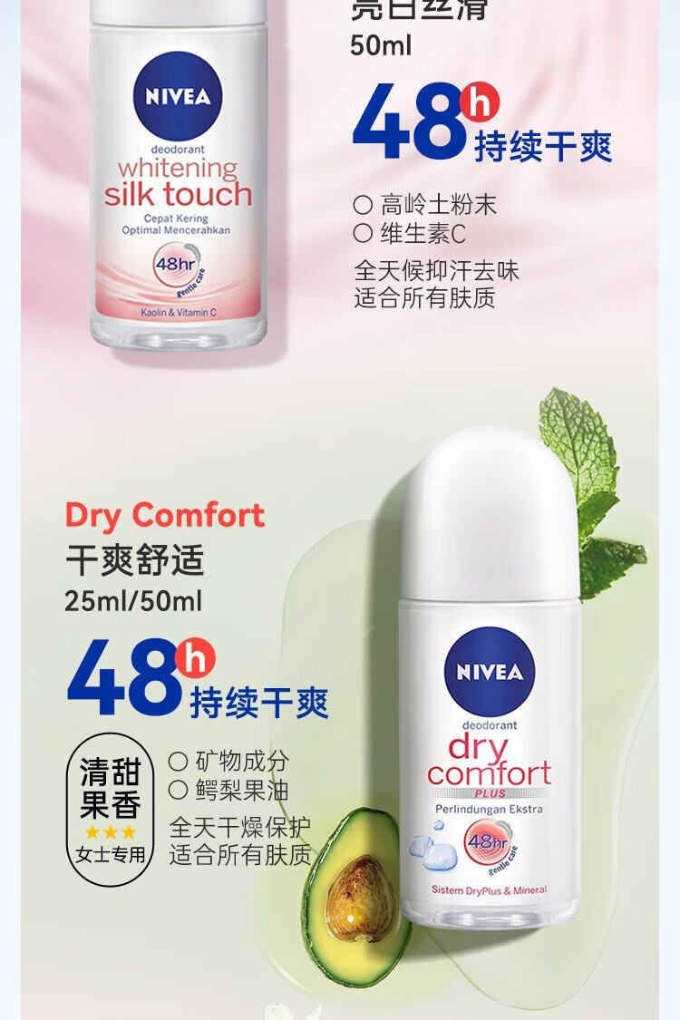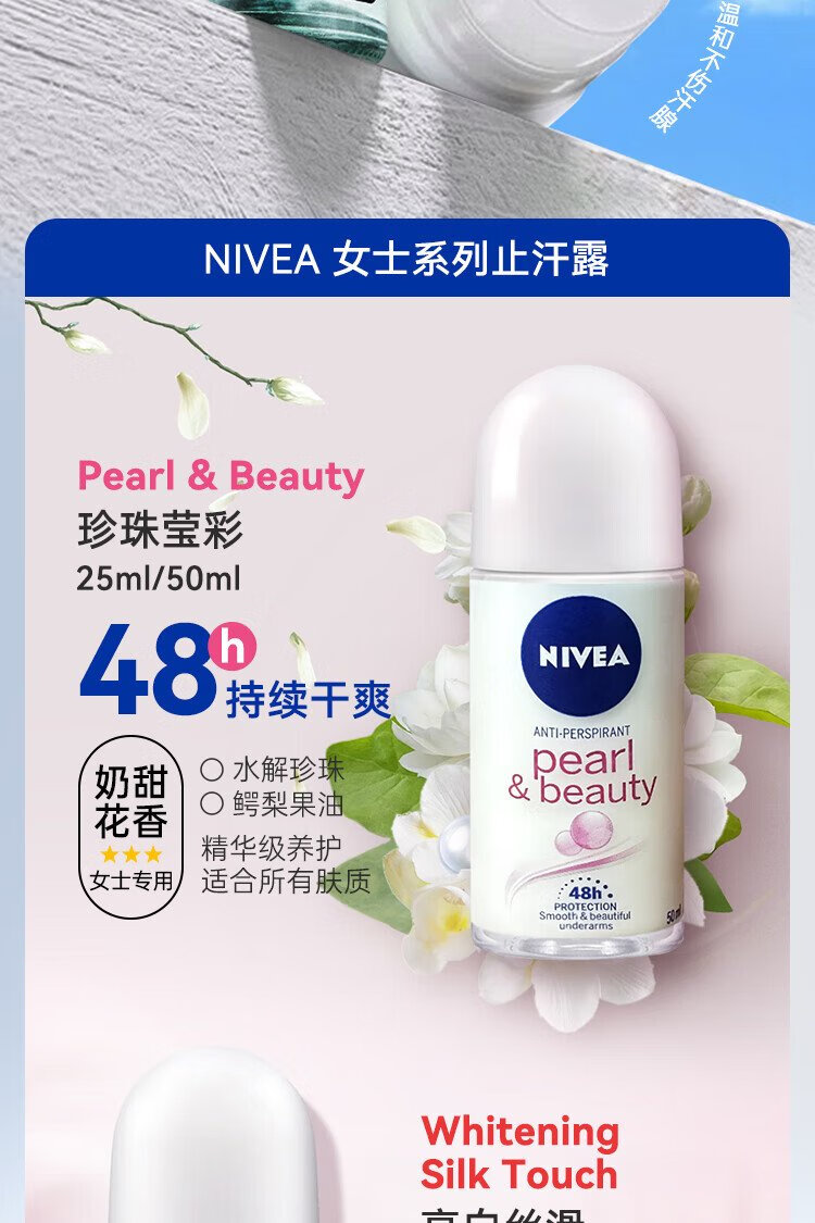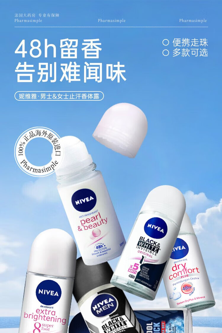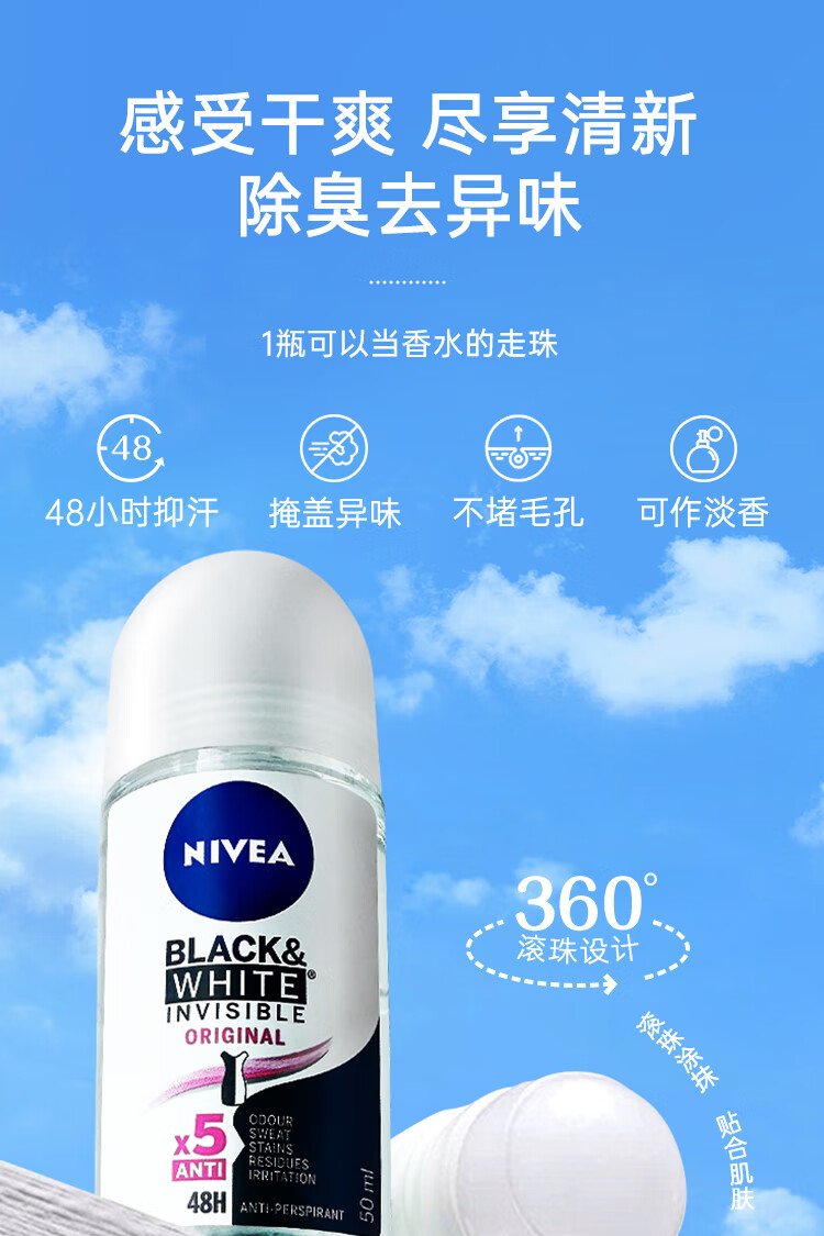 NIVEA Antiperspirant Roll-On Underarm Deodorant Roll-On Long-lasting Antiperspirant Lotion Summer Odor Body Odor Underarm Odor Fragrance 50ml 1 Bottle Women's Essence Body Refreshing Lotion