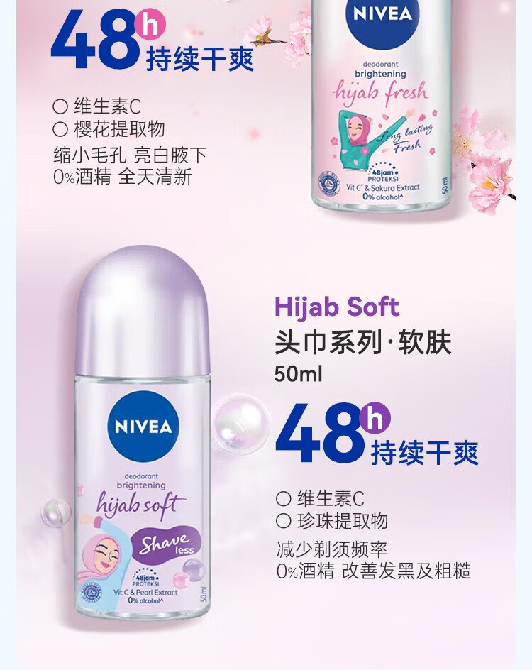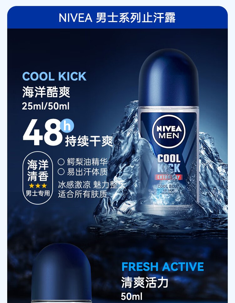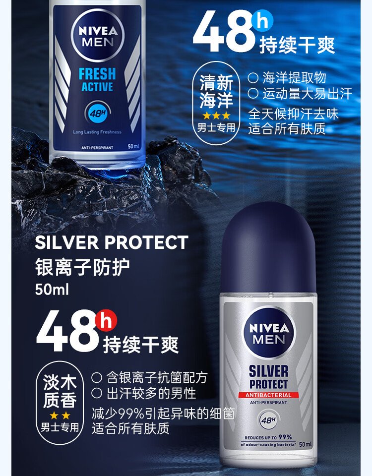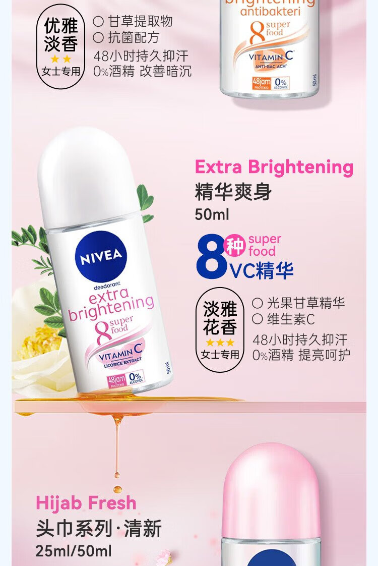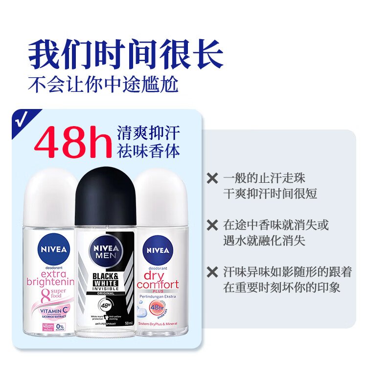 NIVEA Antiperspirant Roll-On Underarm Deodorant Roll-On Long-lasting Antiperspirant Lotion Summer Odor Body Odor Underarm Odor Fragrance 50ml 1 Bottle Women's Essence Body Refreshing Lotion