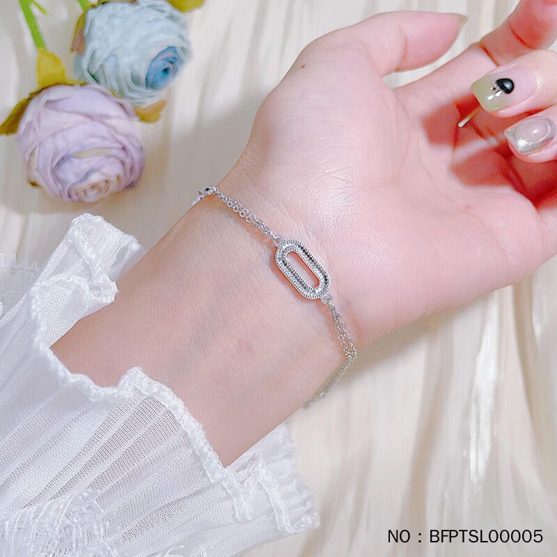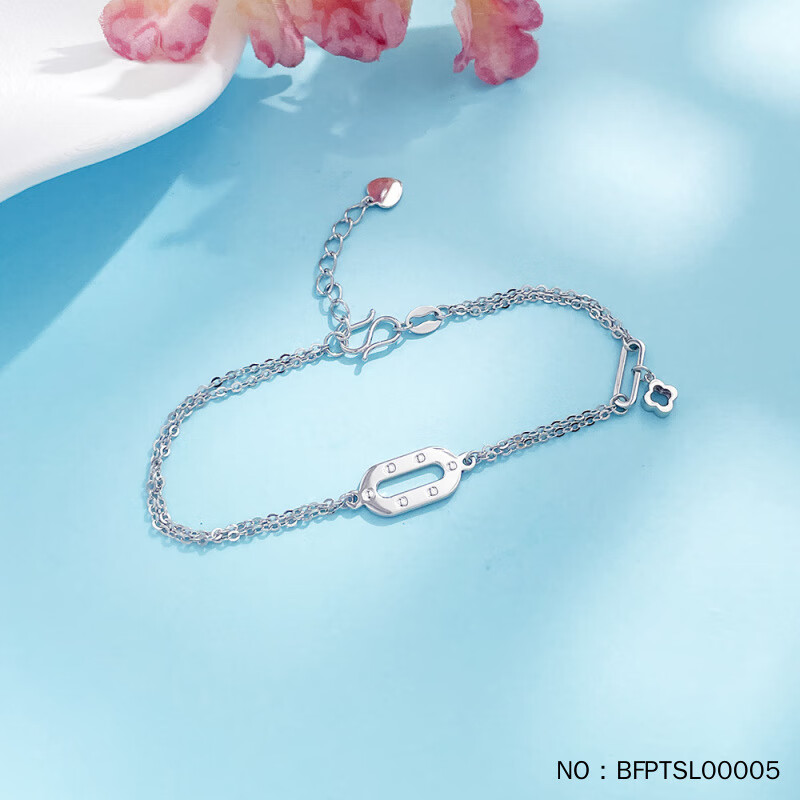 PT950 platinum bracelet CNC fish scale square ring four-leaf clover flower pendant double-layer adjustable platinum bracelet 4.07g14.5+2.5cm