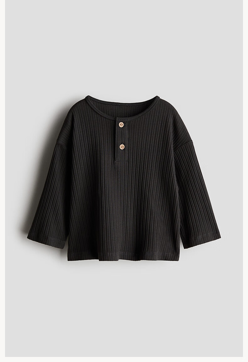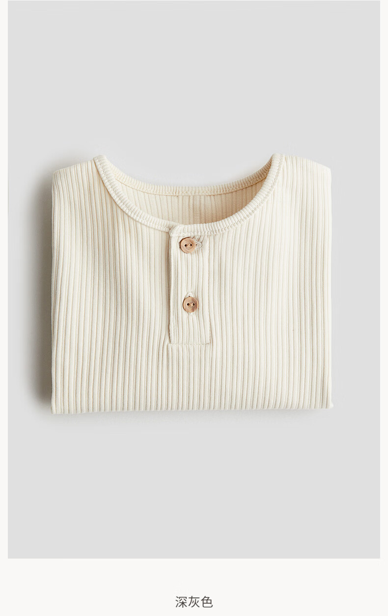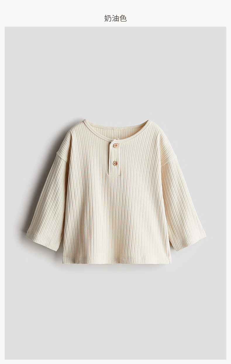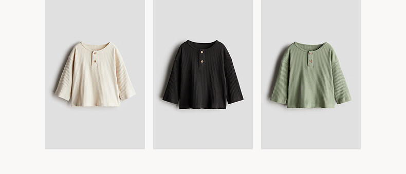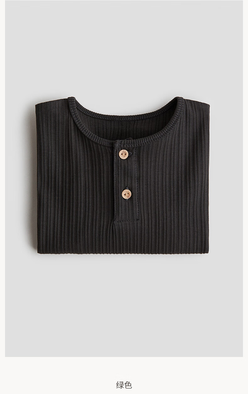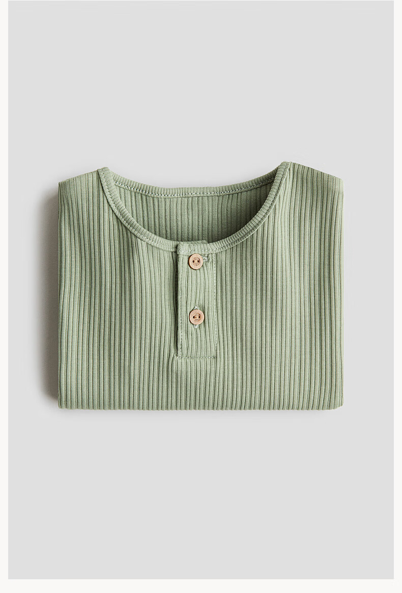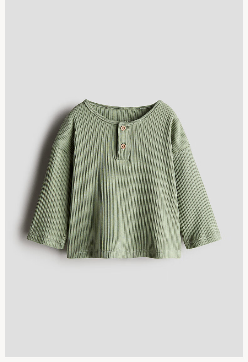 H&M children's clothing baby boy autumn ribbed henley cotton jersey long-sleeved top 1256083 green 90 52