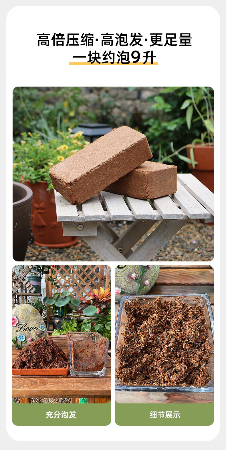 Питательная почва из кокосового кирпича для выращивания цветов, универсальная цветочная почва для растений из кокосовых отрубей, растительная почва, опресняющее удобрение, сочная почва, посадочная почва, 650 г маленьких кокосовых кирпичей * 2 шт.