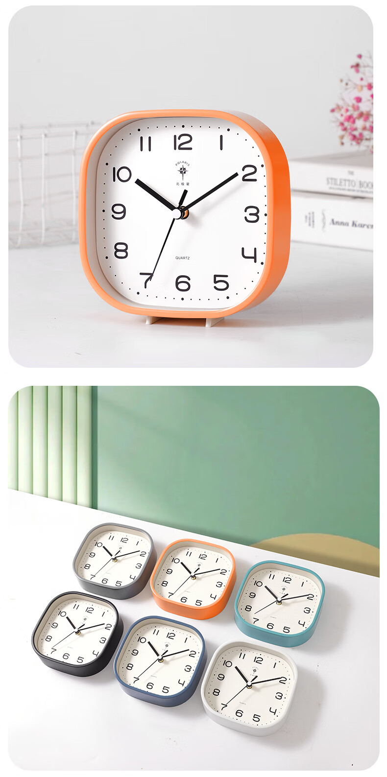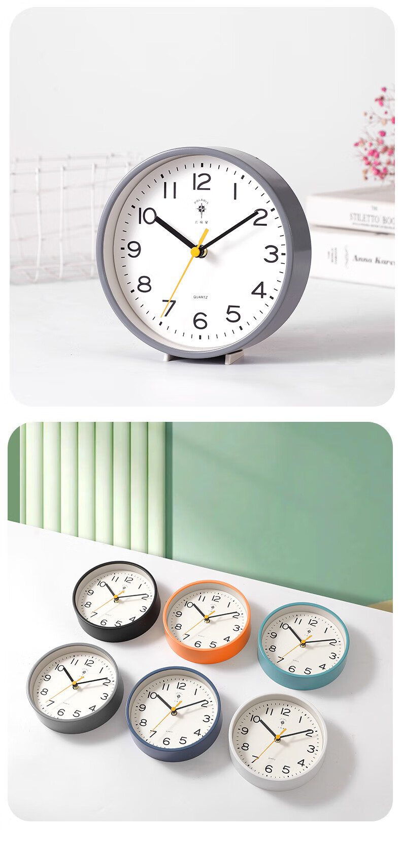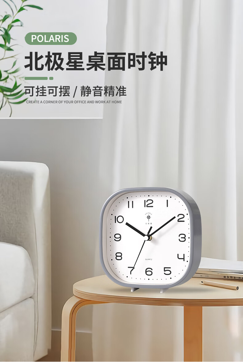 Polaris (POLARIS) small desk clock living room clock extremely simple modern silent seat hanging dual-purpose bedroom children's room bedside table white round