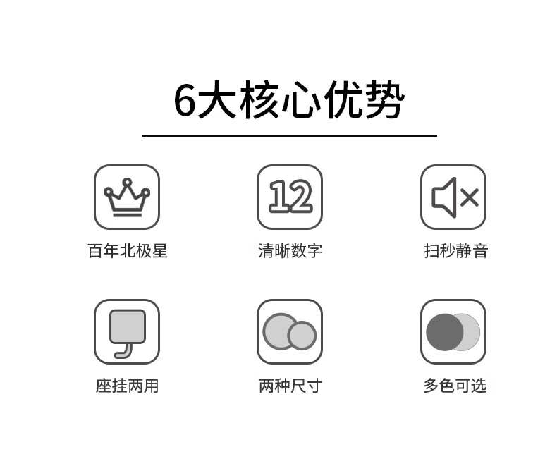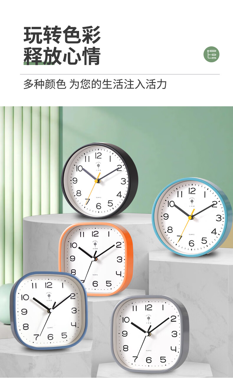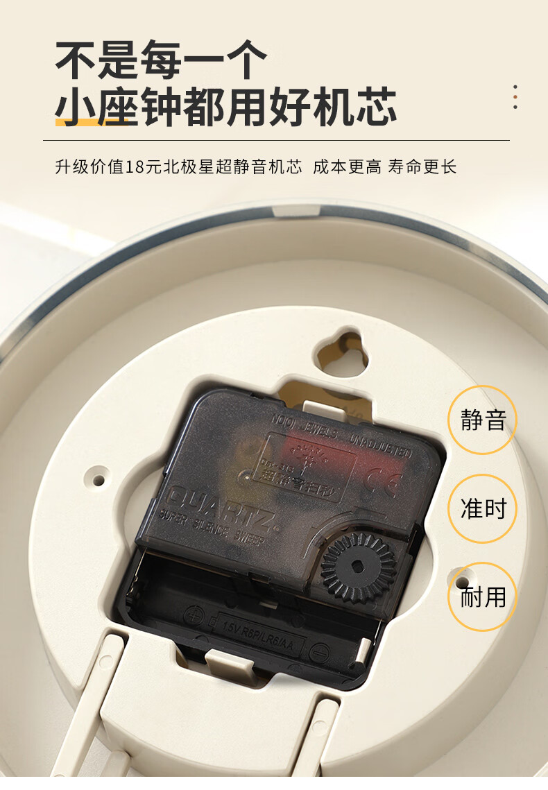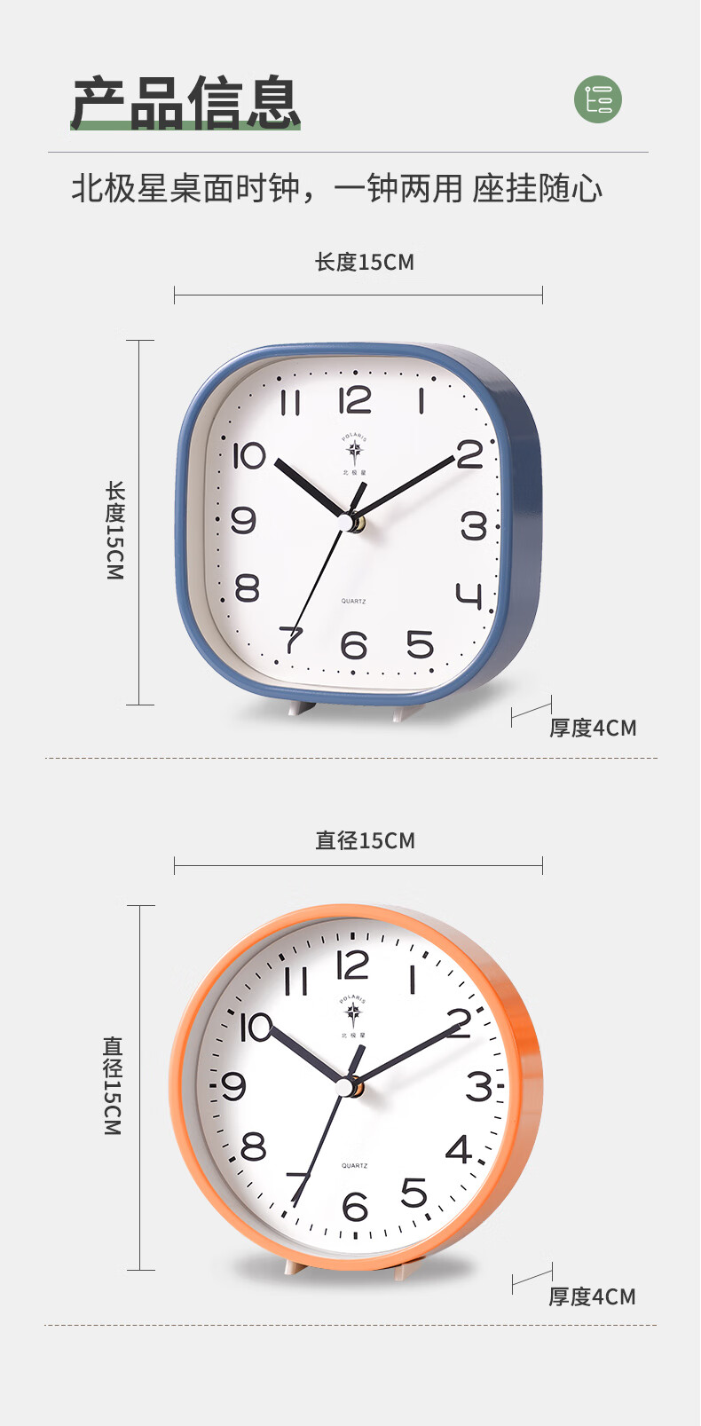 Polaris (POLARIS) small desk clock living room clock extremely simple modern silent seat hanging dual-purpose bedroom children's room bedside table white round