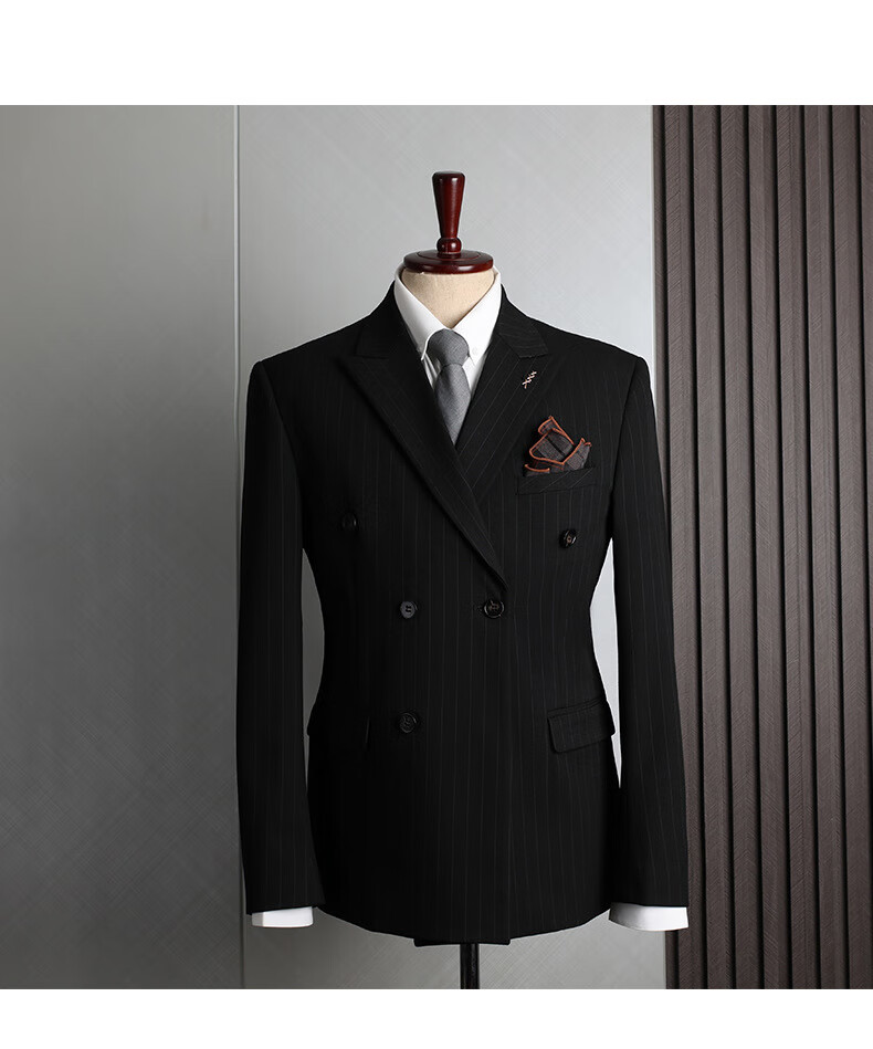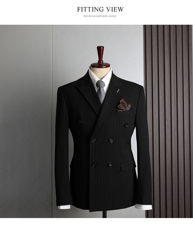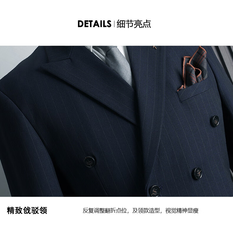 JEEP SPIRIT Jeep suit men's suit wedding double-breasted British lapel groom engagement slim striped formal suit blue (suit + trousers) XL/52 (125-135Jin Jin equals 0.5kg)