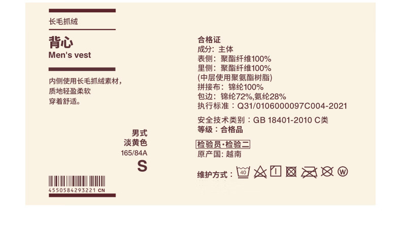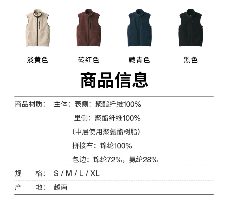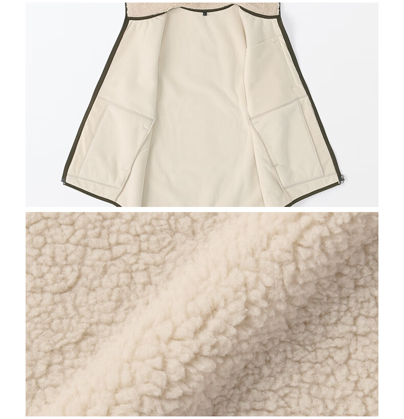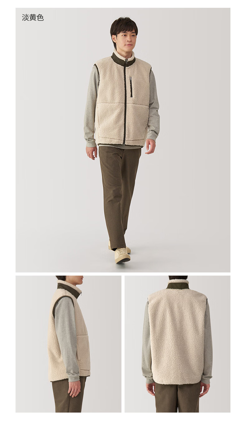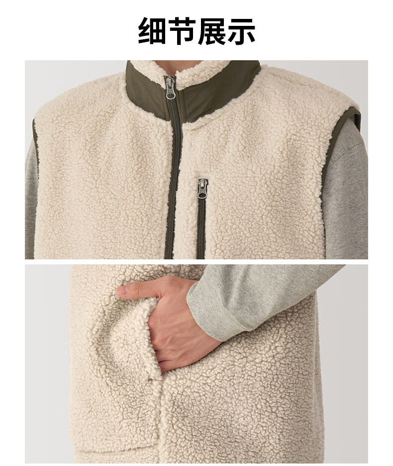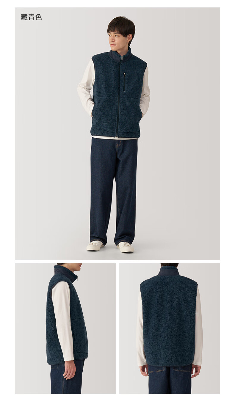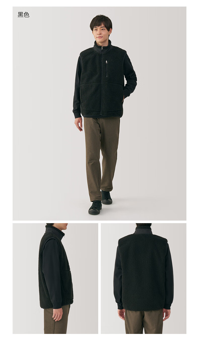 MUJI Men's Long Hair Fleece Vest Men's Men's Vest Vest Vest AB1MXA4A Black L (175/100A)
