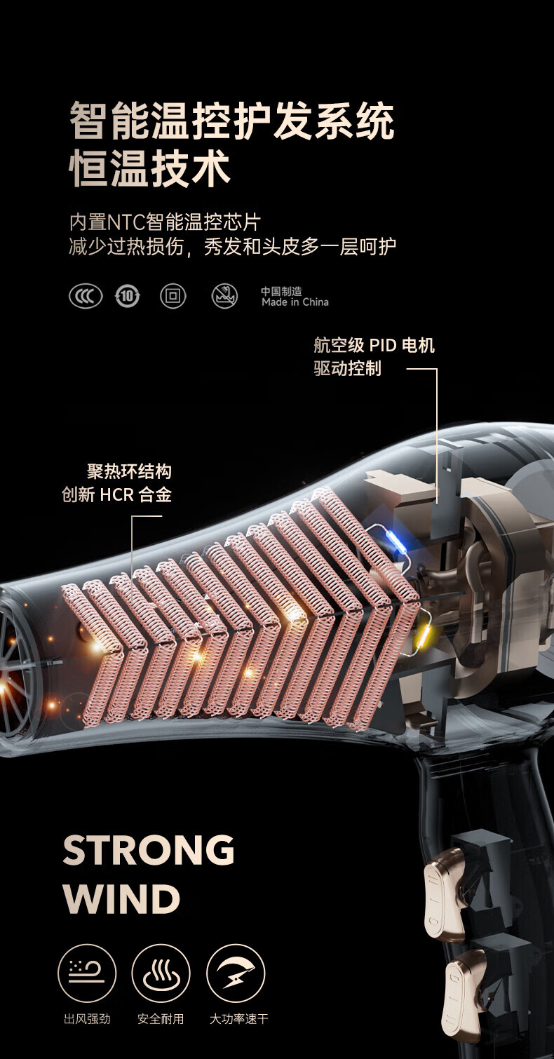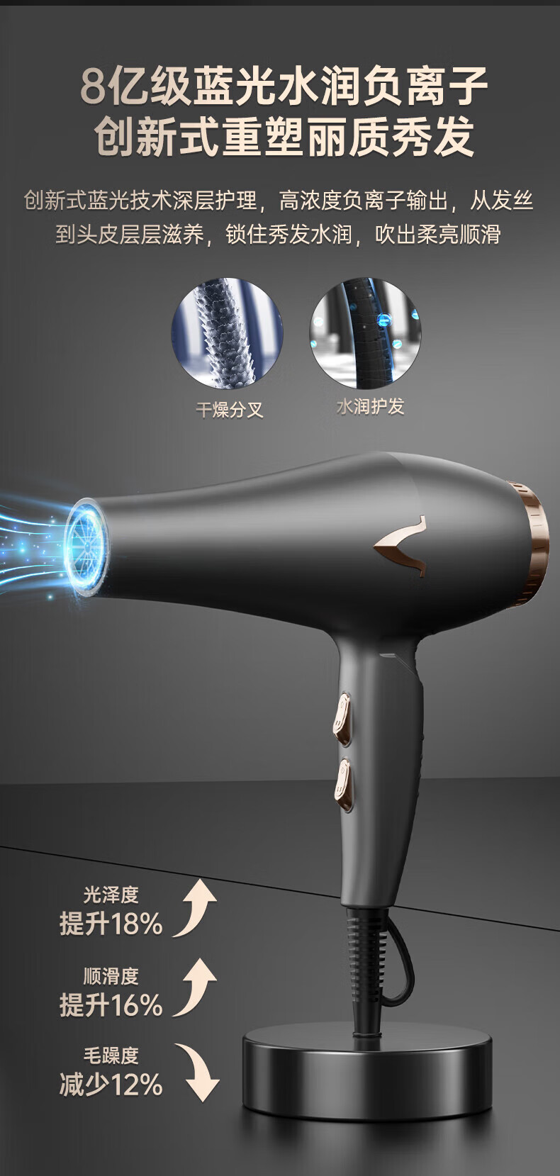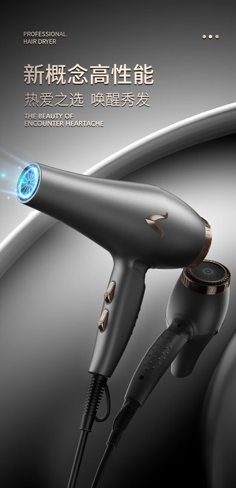 Panasonic's 3800W high-speed hair dryer, hair salon hair dryer, home silent, high-power, non-harmful blue light hair care hair dryer, quick-drying electric dryer for barber shops, black 3800W high wind, hair salon home use