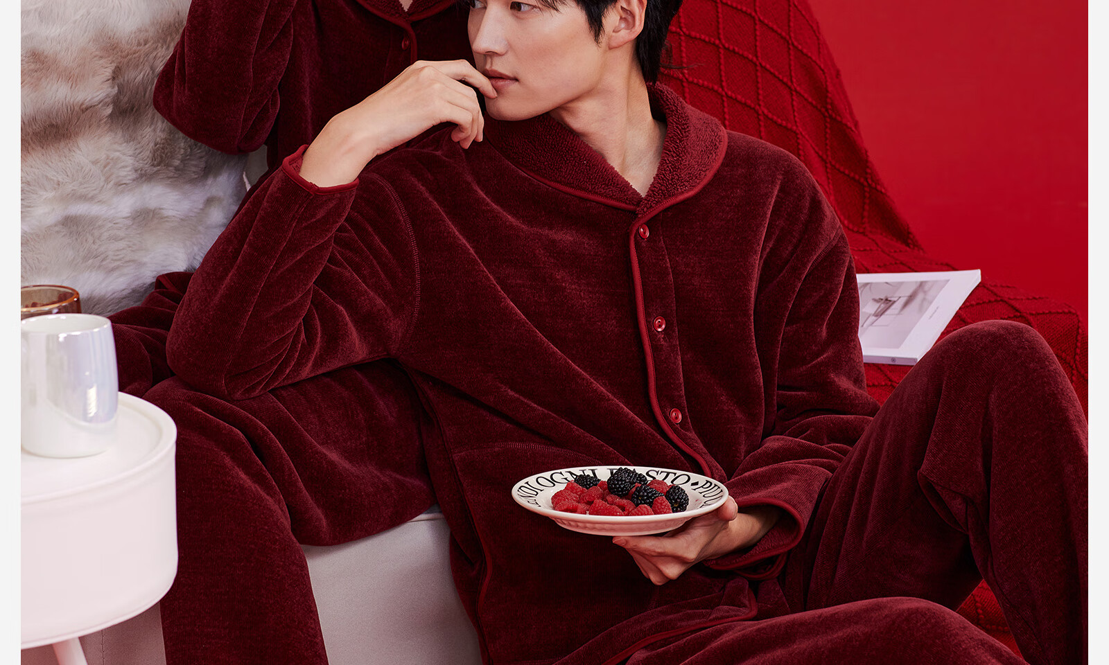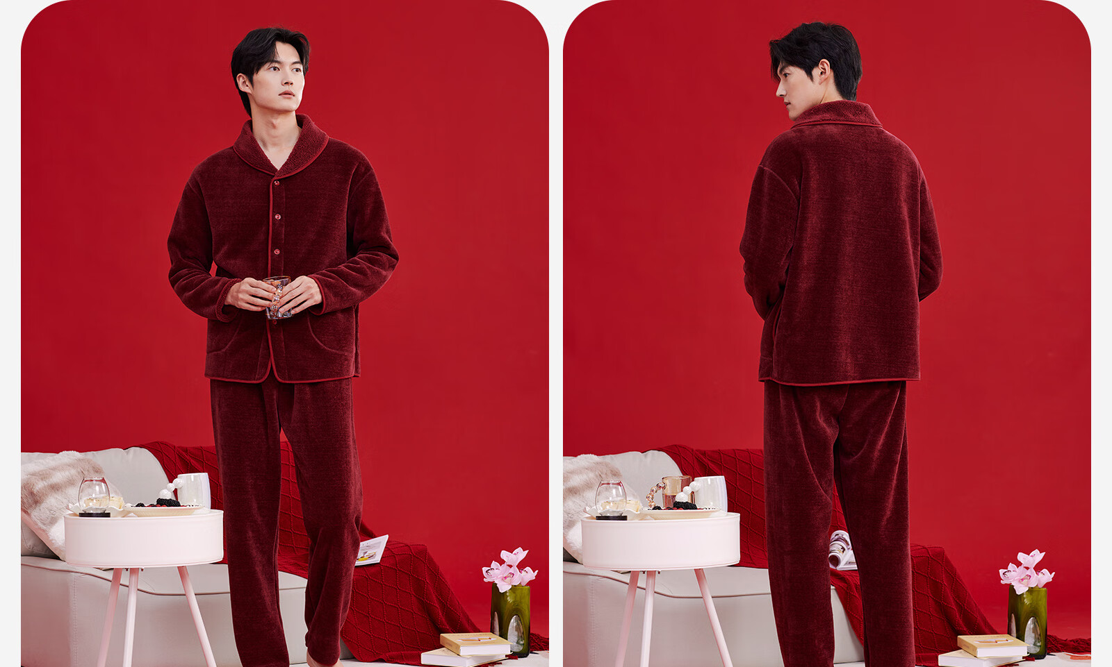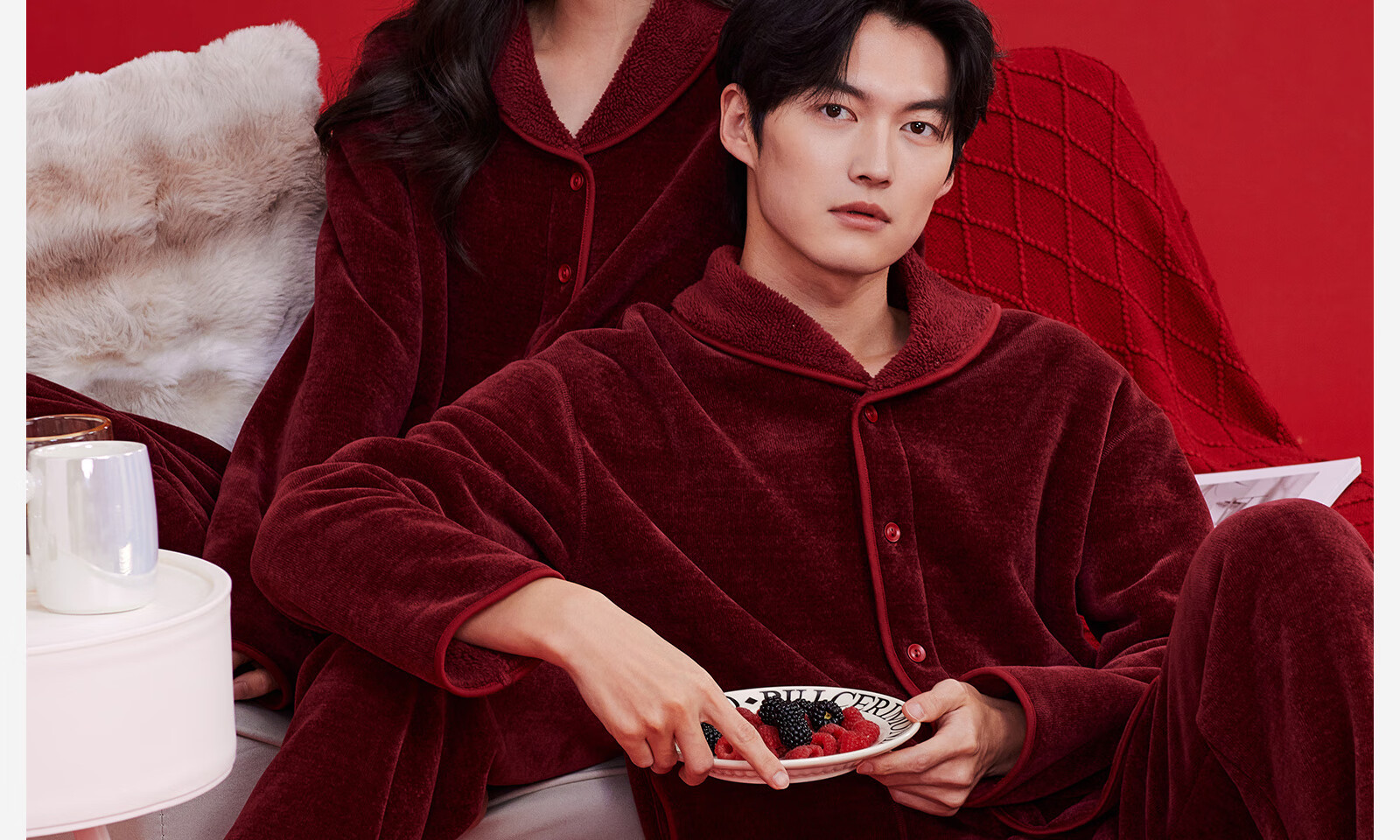 Darli couple pajamas 24 autumn and winter new snow skin velvet women's red soft and warm wedding home wear set T9245510-009-maroon male 2XL