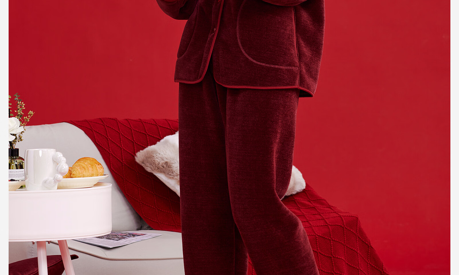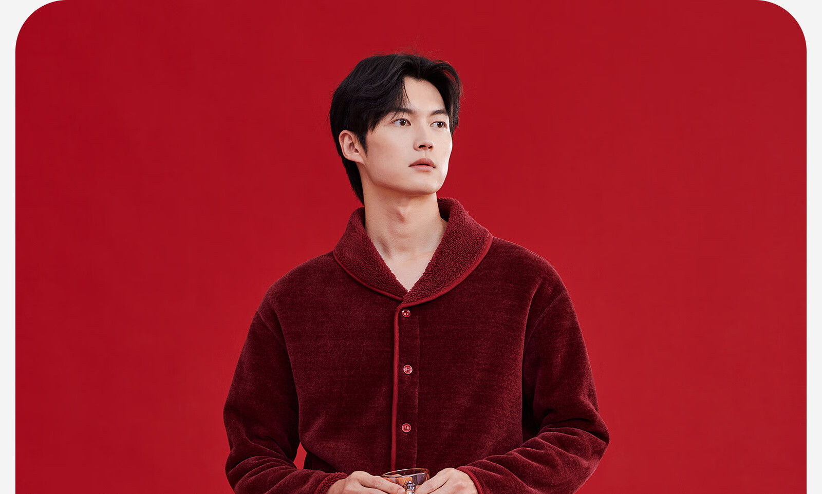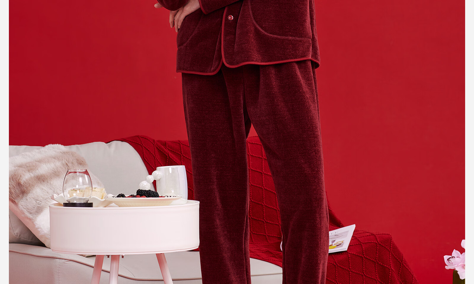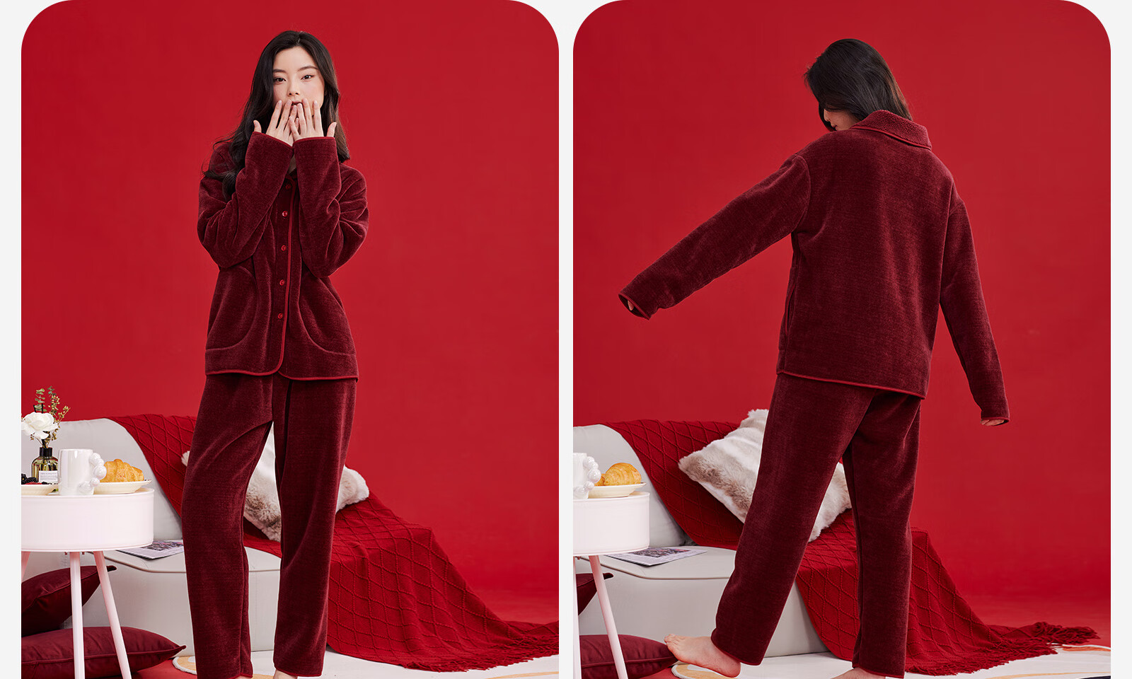 Darli couple pajamas 24 autumn and winter new snow skin velvet women's red soft and warm wedding home wear set T9245510-009-maroon male 2XL