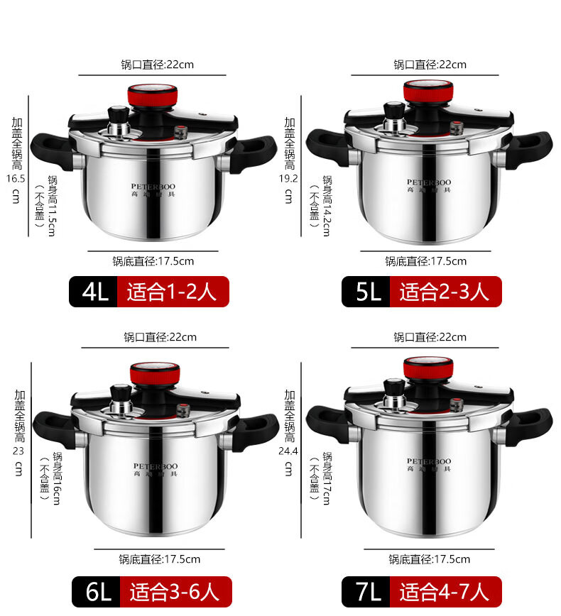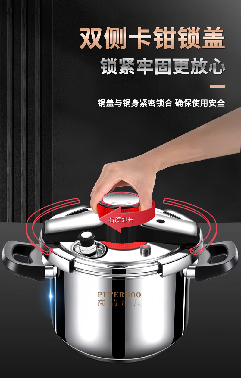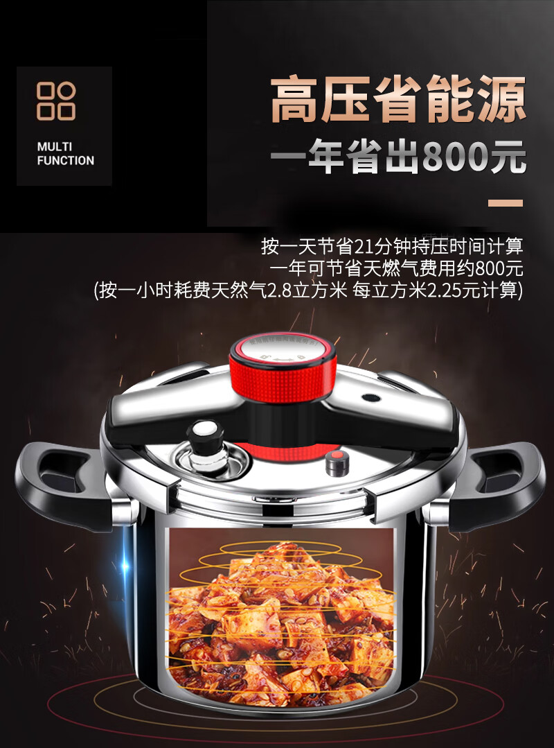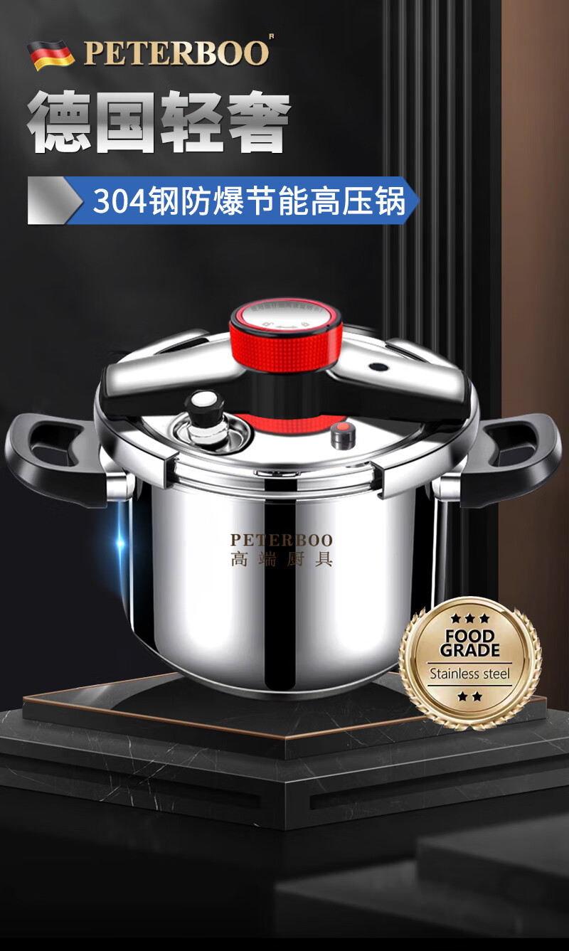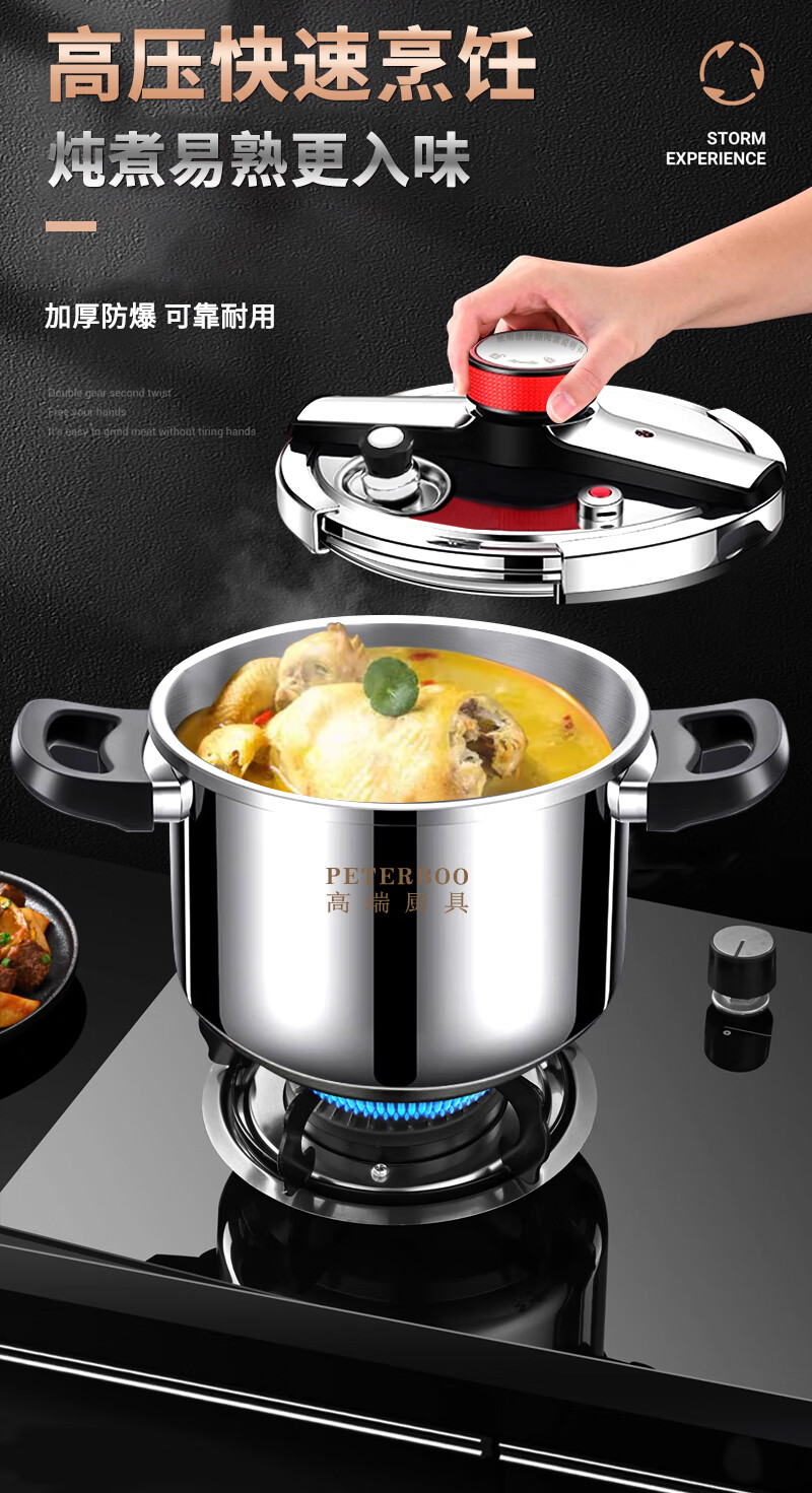 German explosion-proof 304 stainless steel induction cooker universal gas open flame pressure cooker household pressure cooker large commercial pot upgraded to supreme explosion-proof 4-6 people 22cm 5L