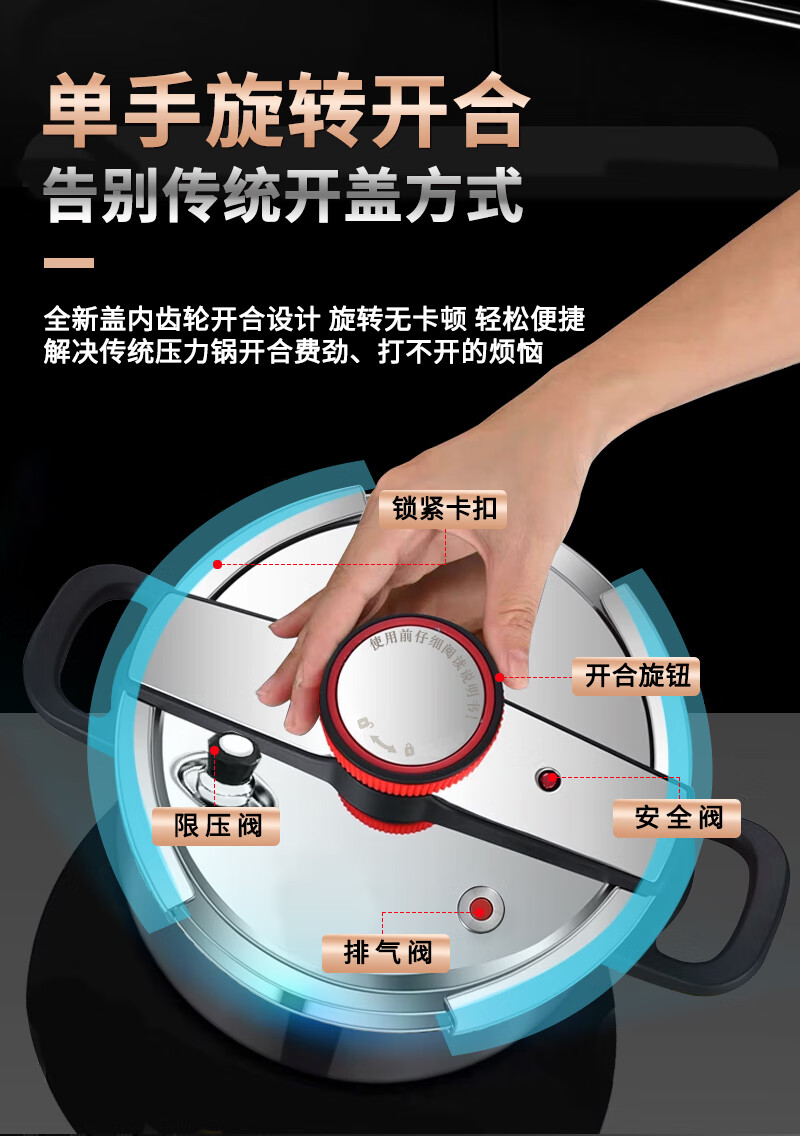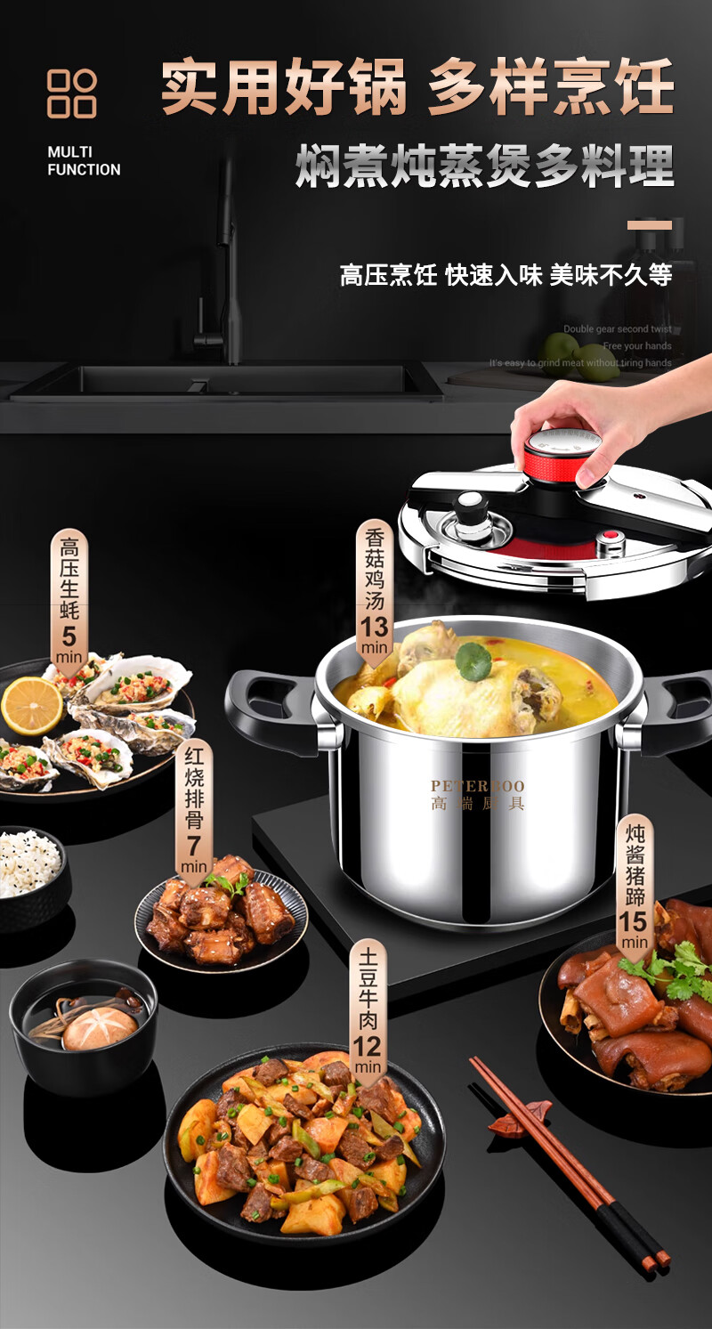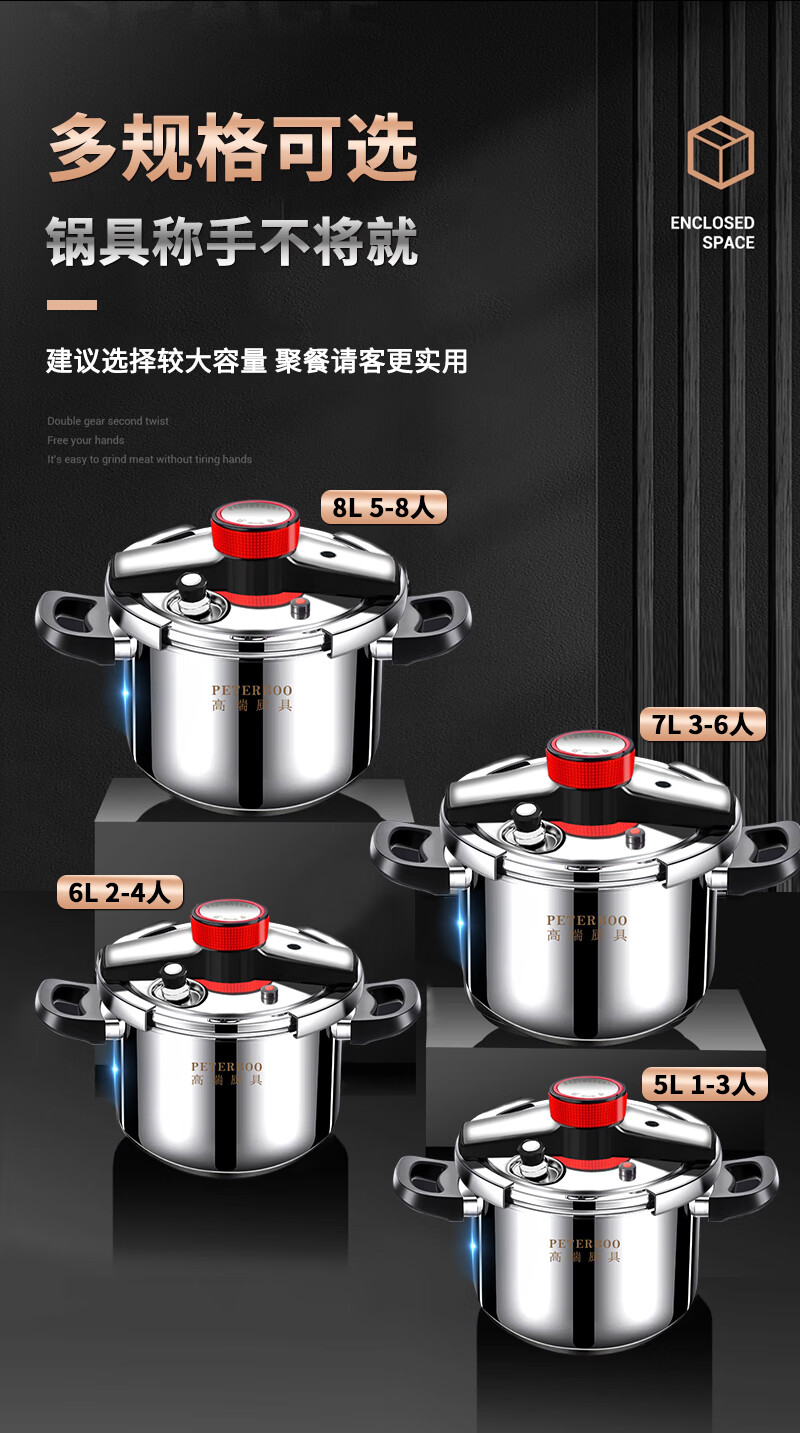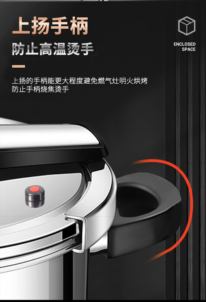 German explosion-proof 304 stainless steel induction cooker universal gas open flame pressure cooker household pressure cooker large commercial pot upgraded to supreme explosion-proof 4-6 people 22cm 5L
