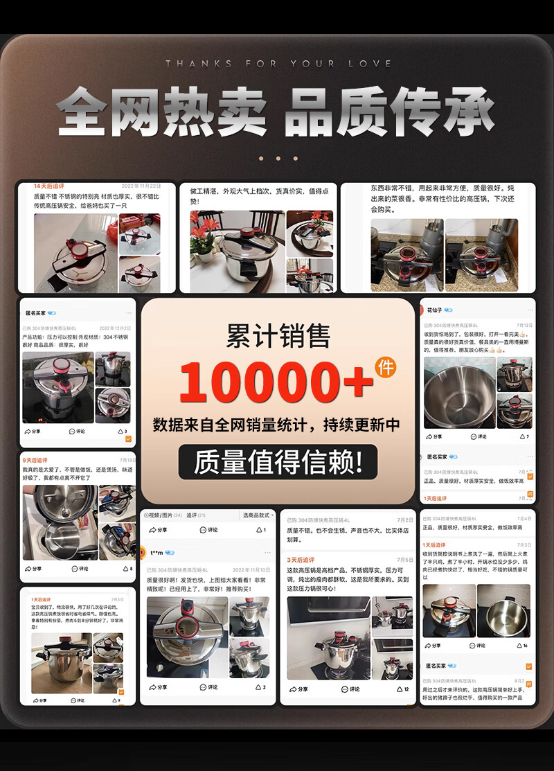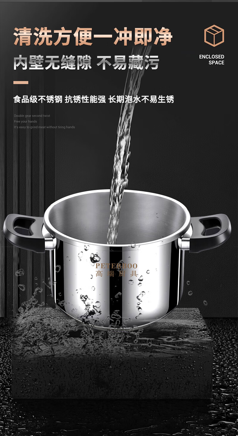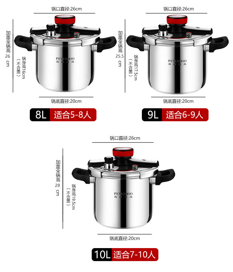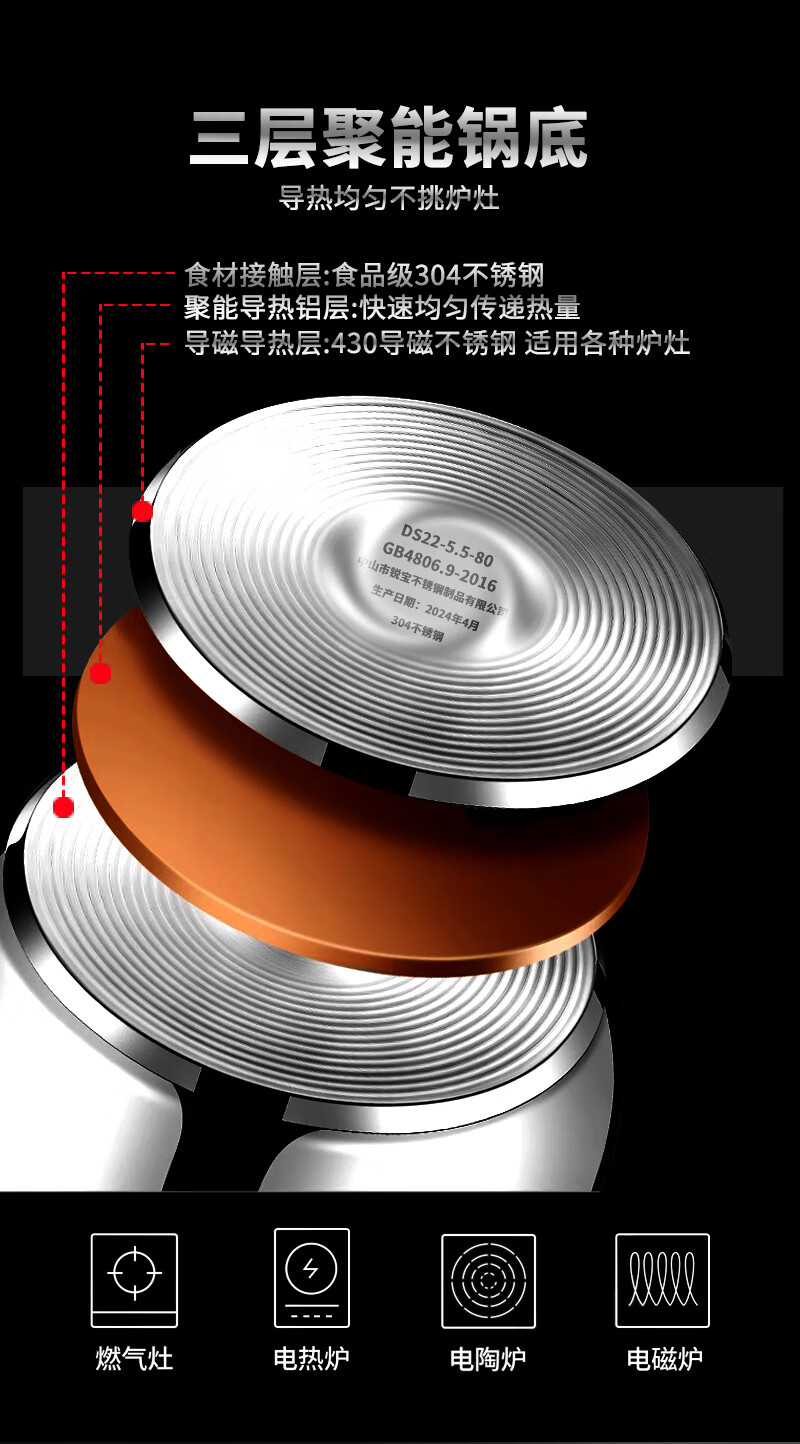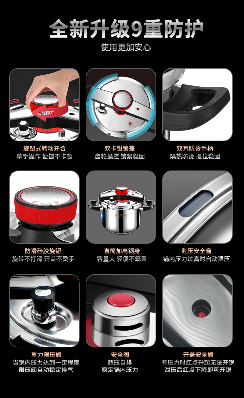 German explosion-proof 304 stainless steel induction cooker universal gas open flame pressure cooker household pressure cooker large commercial pot upgraded to supreme explosion-proof 4-6 people 22cm 5L