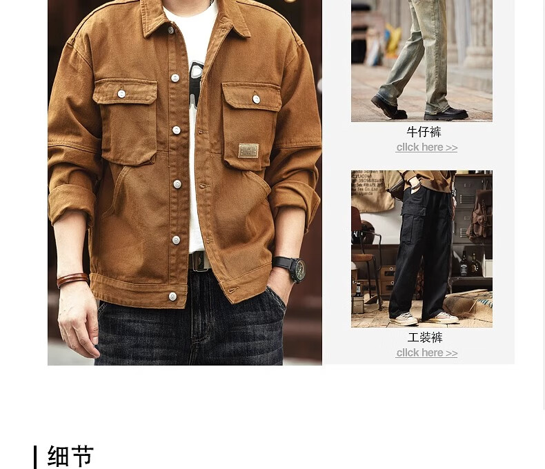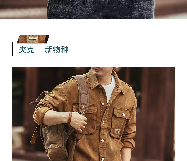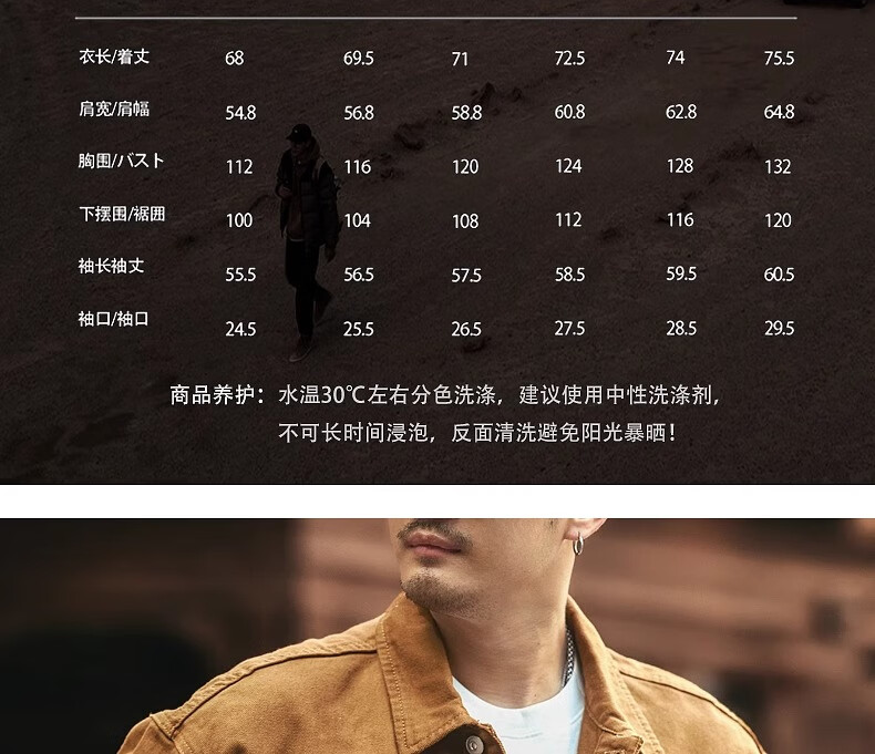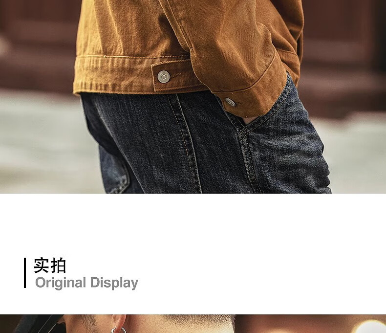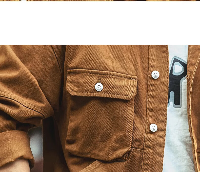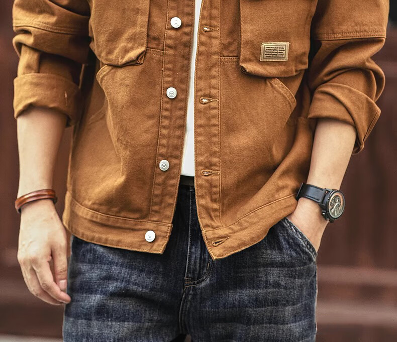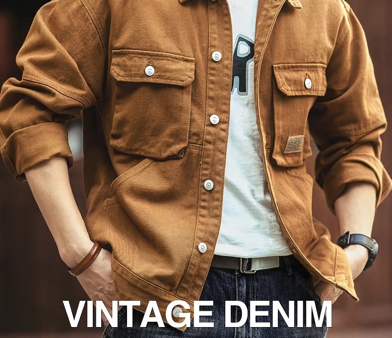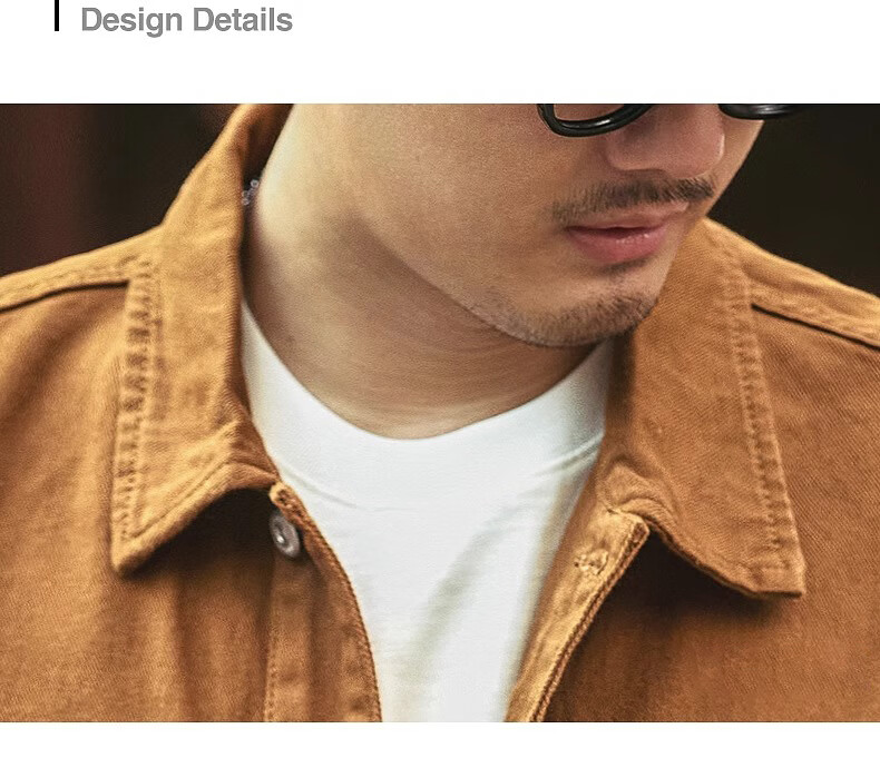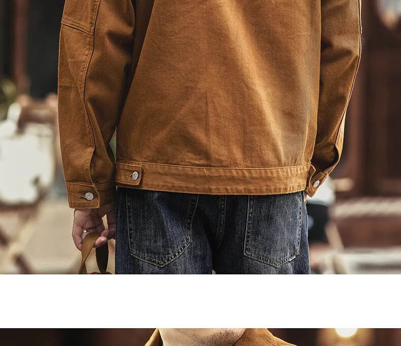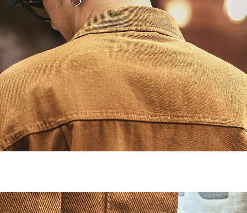 Romon Jacket American Heavyweight Retro Denim Jacket Men's Autumn and Winter Velvet Loose Casual Tough Guy Hunting Workwear Men's Turmeric L Suitable for 120-140 Jin Jin equals 0.5 kg