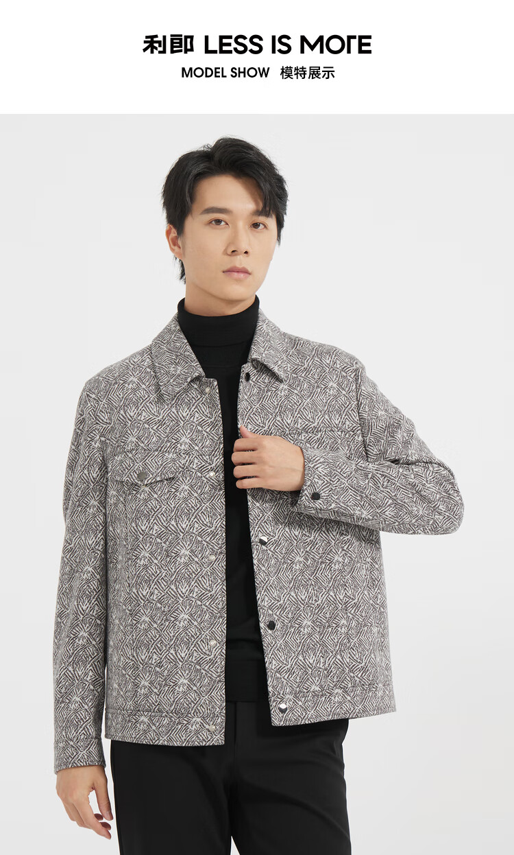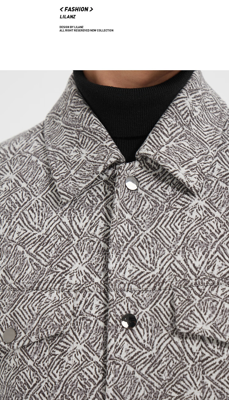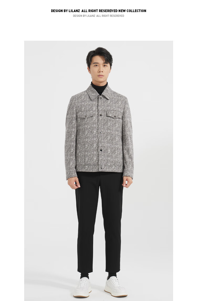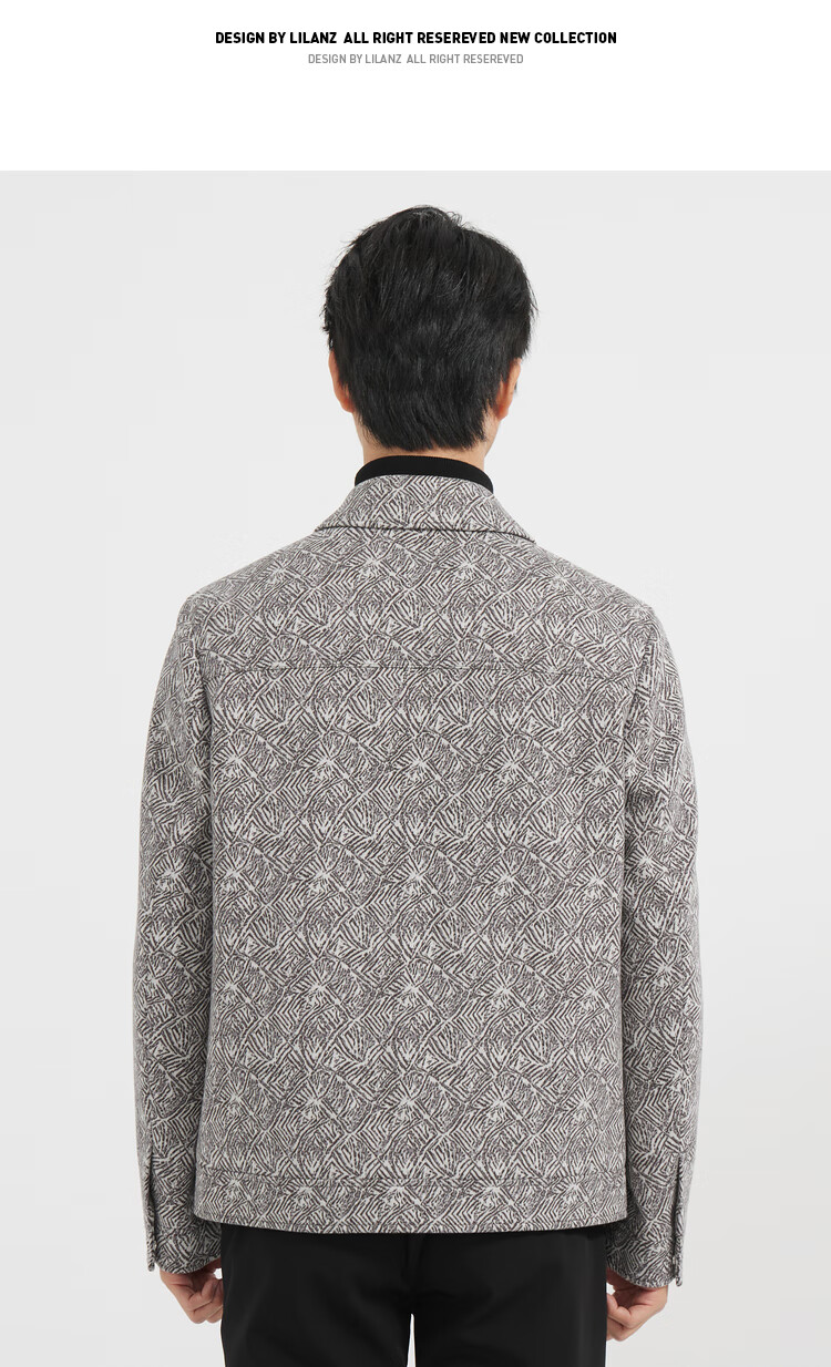 Lilang Light Fashion Men's Wear Crimson Wool Woolen Coat Men's Full Print Short Lapel Wool Jacket Q4DYR112 Ancient White Coffee 2XL (180)