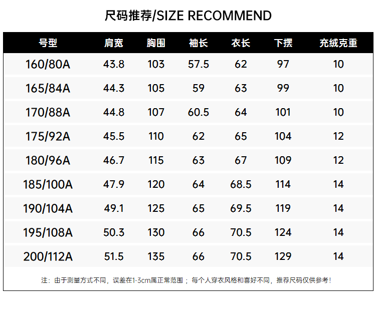 China (cm) 160-165/84-86 165-170 / 88-90 167-172 / 92-96 168-173 / 98-102 170-176 / 106-110