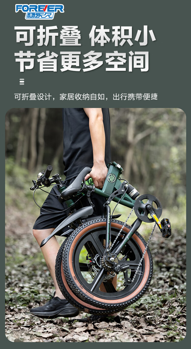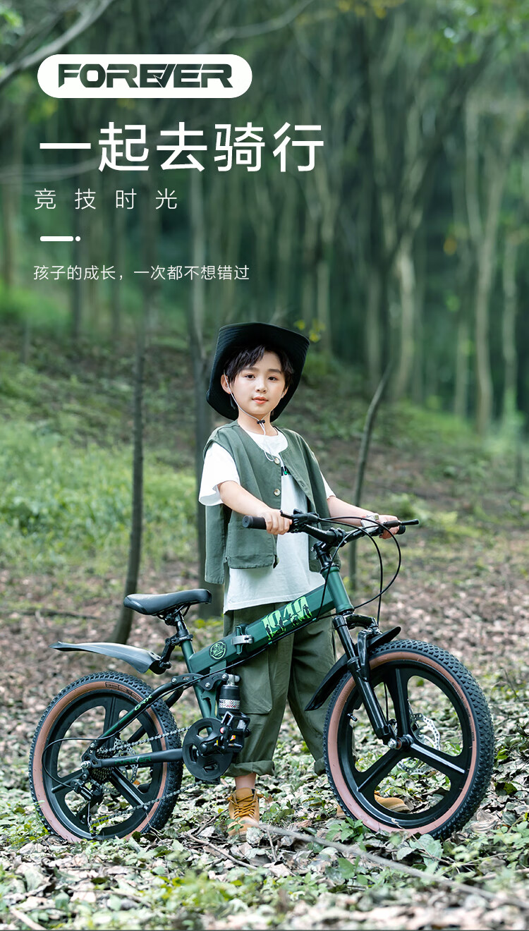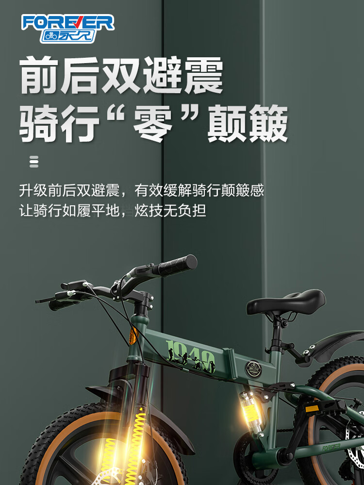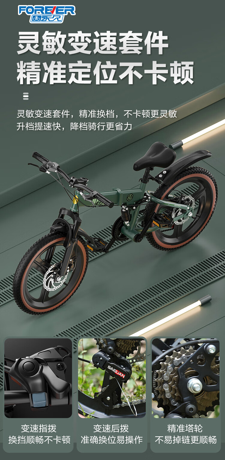 FOREVER (FOREVER) bicycle foldable children's 6 12 15-year-old middle-aged and older girl's bicycle lightweight variable speed mountain bike 20 22 inches integrated wheel + double shock absorption + seven-level transmission 20 inches green