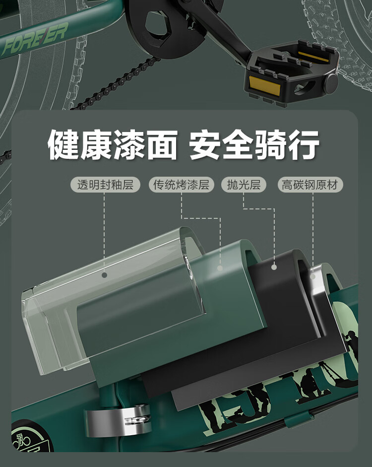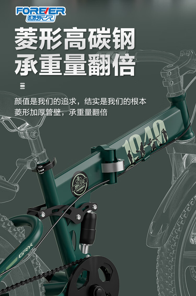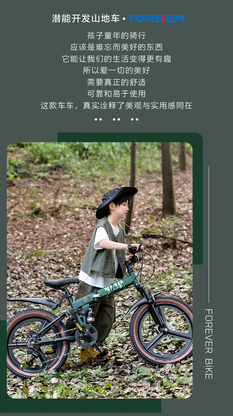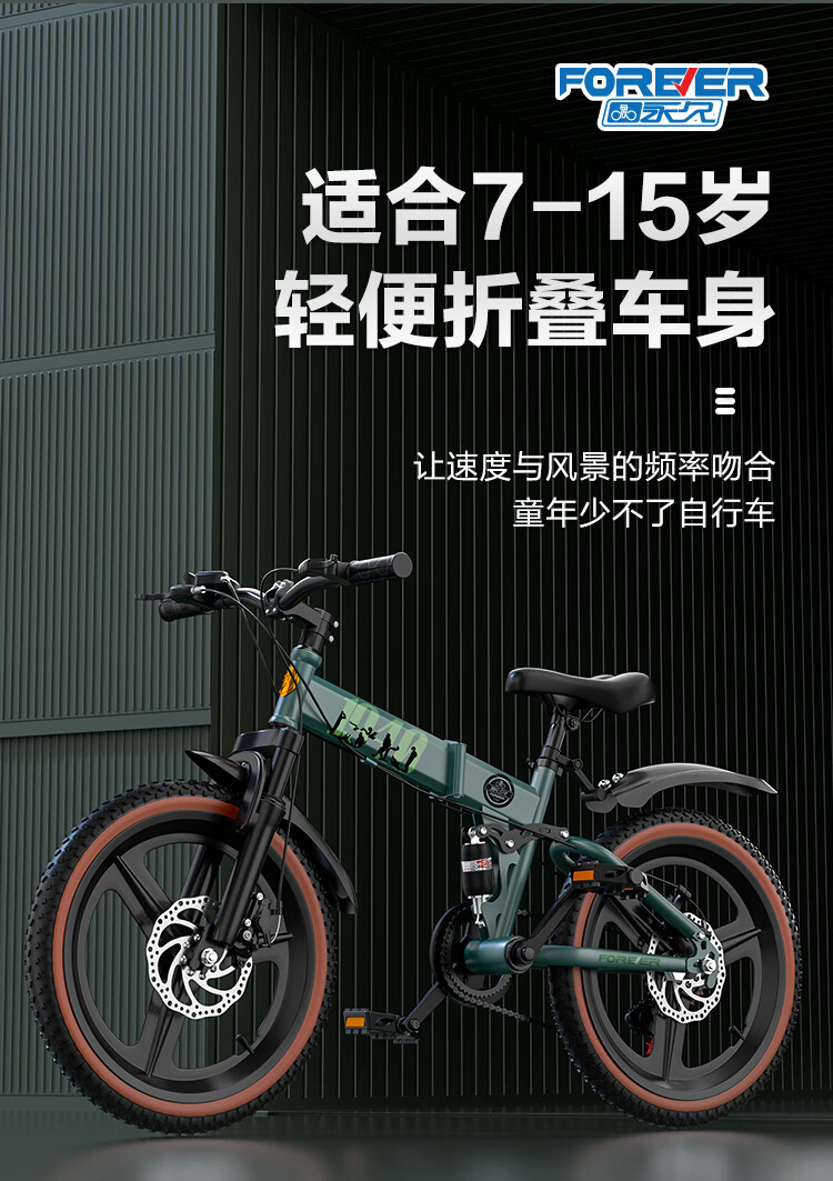 FOREVER (FOREVER) bicycle foldable children's 6 12 15-year-old middle-aged and older girl's bicycle lightweight variable speed mountain bike 20 22 inches integrated wheel + double shock absorption + seven-level transmission 20 inches green