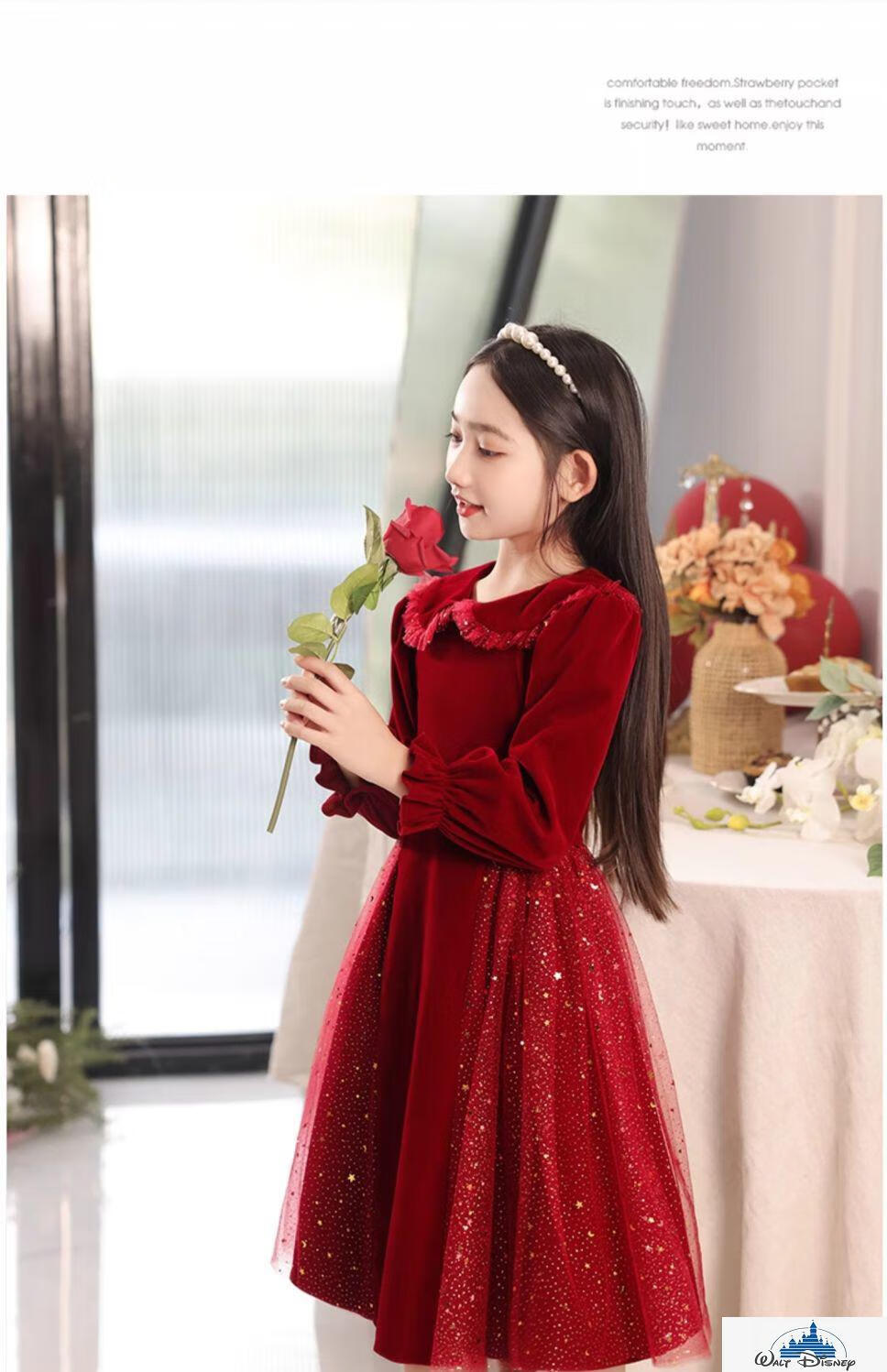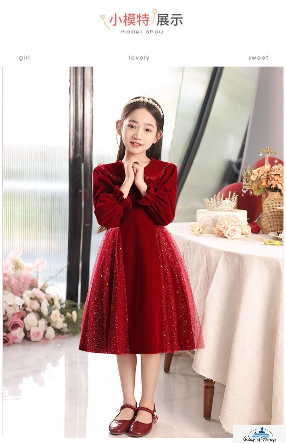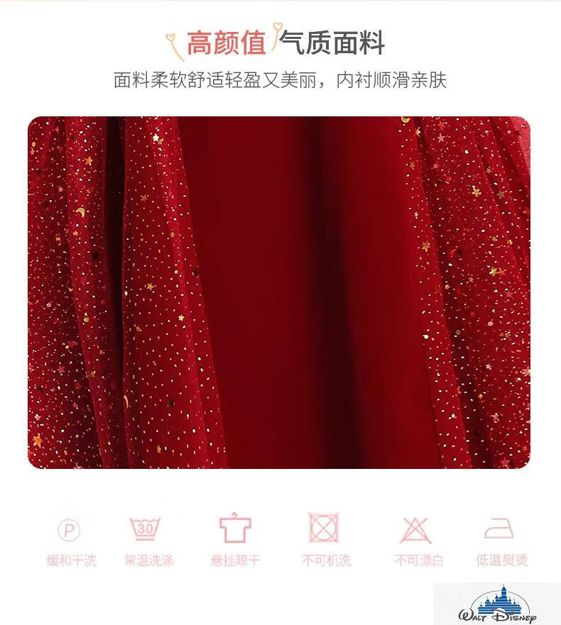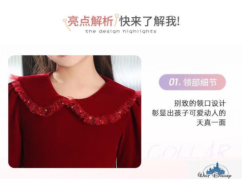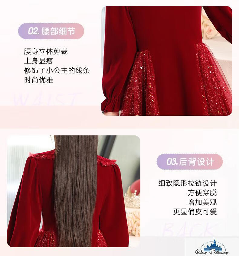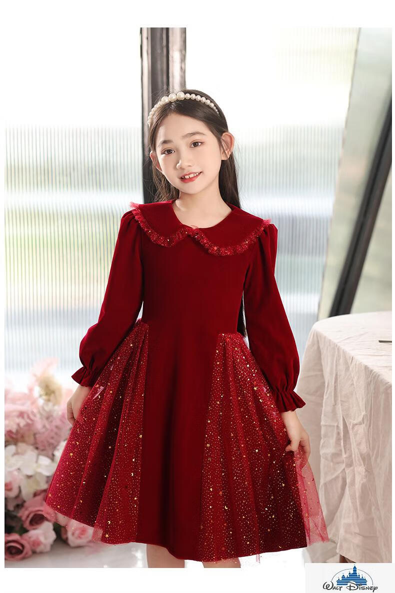 Disney (Disney) girls dress velvet children's skirt red princess dress host performance clothes autumn and winter long sleeves plus velvet red plus velvet 130