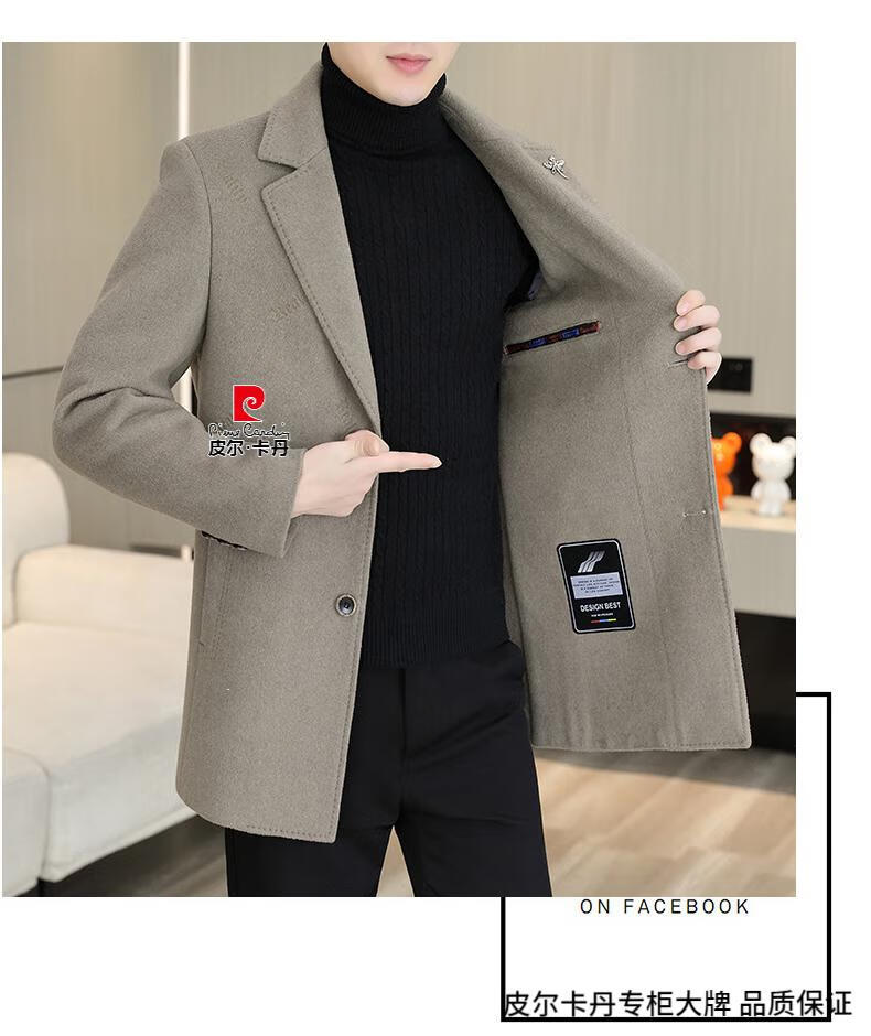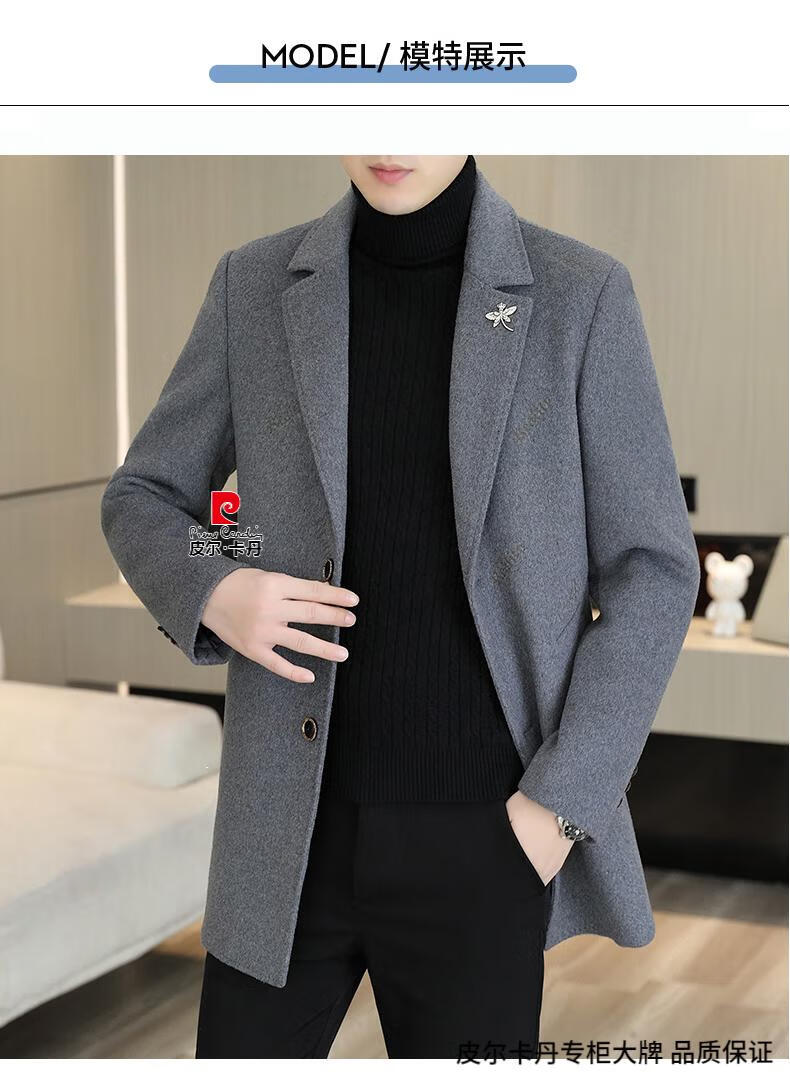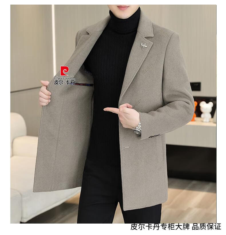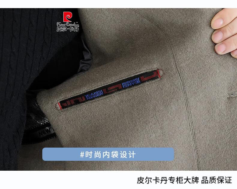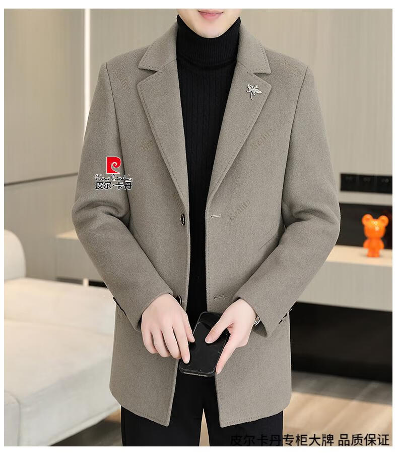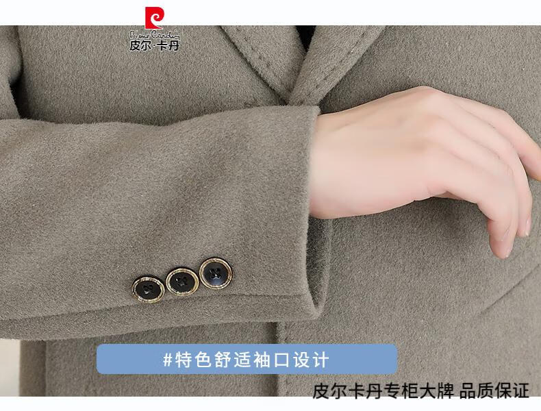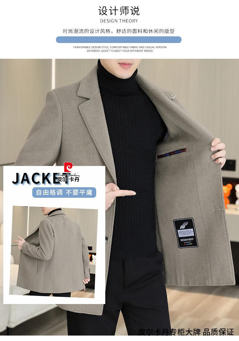 Pierre Cardin autumn and winter woolen coat men's medium-length woolen windbreaker men's high-end casual suit lapel double-sided woolen coat Khaki medium-long double-sided woolen coat 2307 suit collar M recommended 120Jin Jin is equal to less than 0.5 kg
