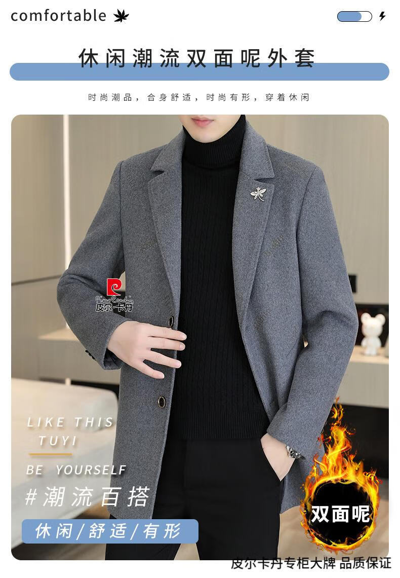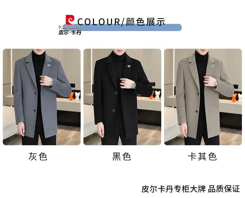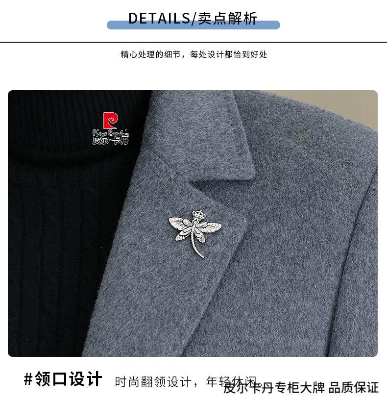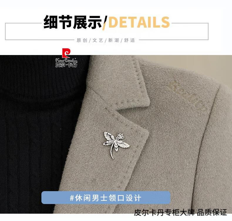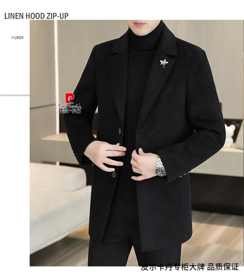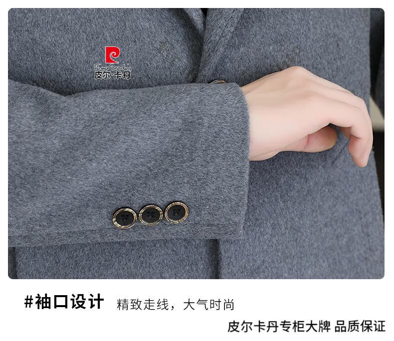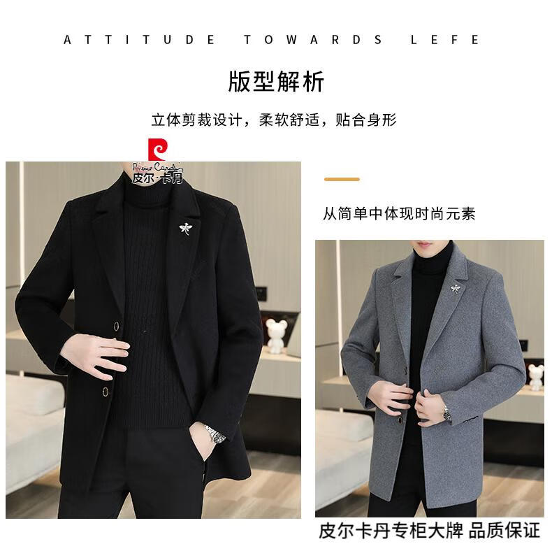 Pierre Cardin autumn and winter woolen coat men's medium-length woolen windbreaker men's high-end casual suit lapel double-sided woolen coat Khaki medium-long double-sided woolen coat 2307 suit collar M recommended 120Jin Jin is equal to less than 0.5 kg