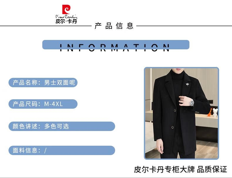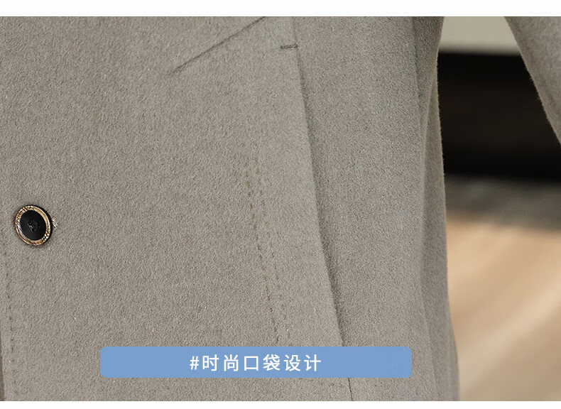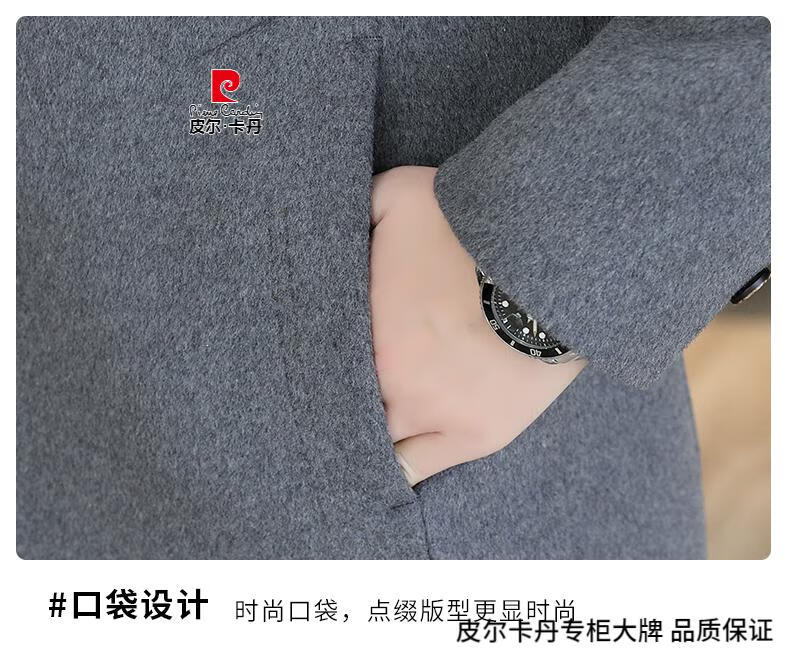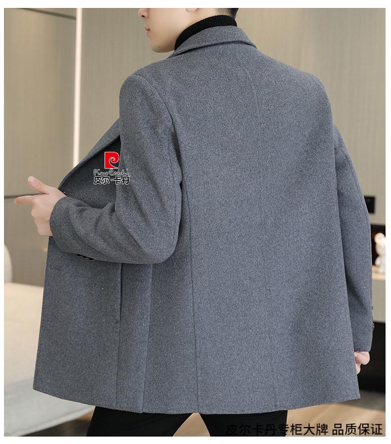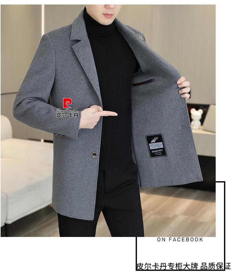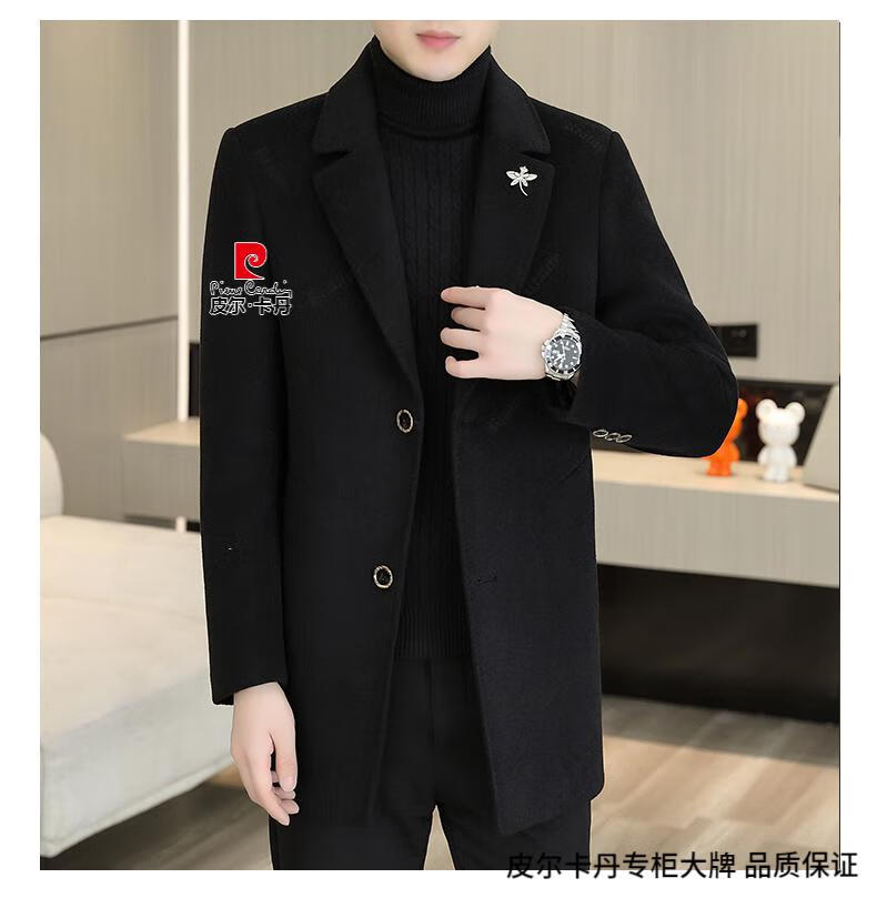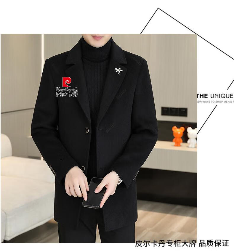 Pierre Cardin autumn and winter woolen coat men's medium-length woolen windbreaker men's high-end casual suit lapel double-sided woolen coat Khaki medium-long double-sided woolen coat 2307 suit collar M recommended 120Jin Jin is equal to less than 0.5 kg