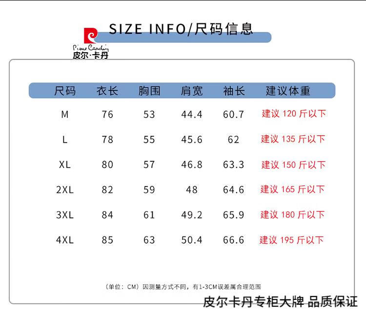 China (cm) 165 / 88-90 170 / 96-98 175 / 108-110 180 / 118-122 185 / 126-130