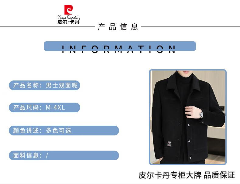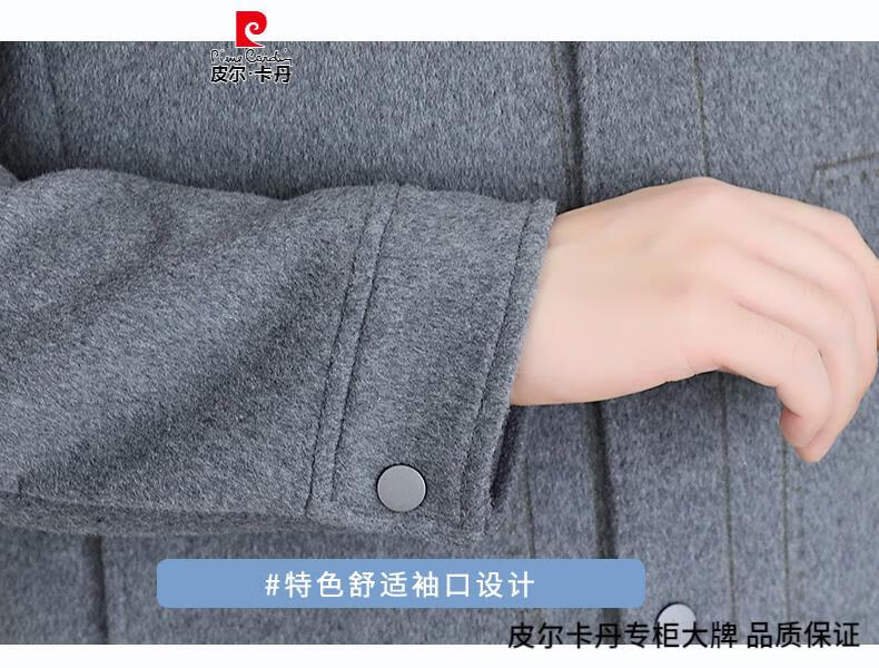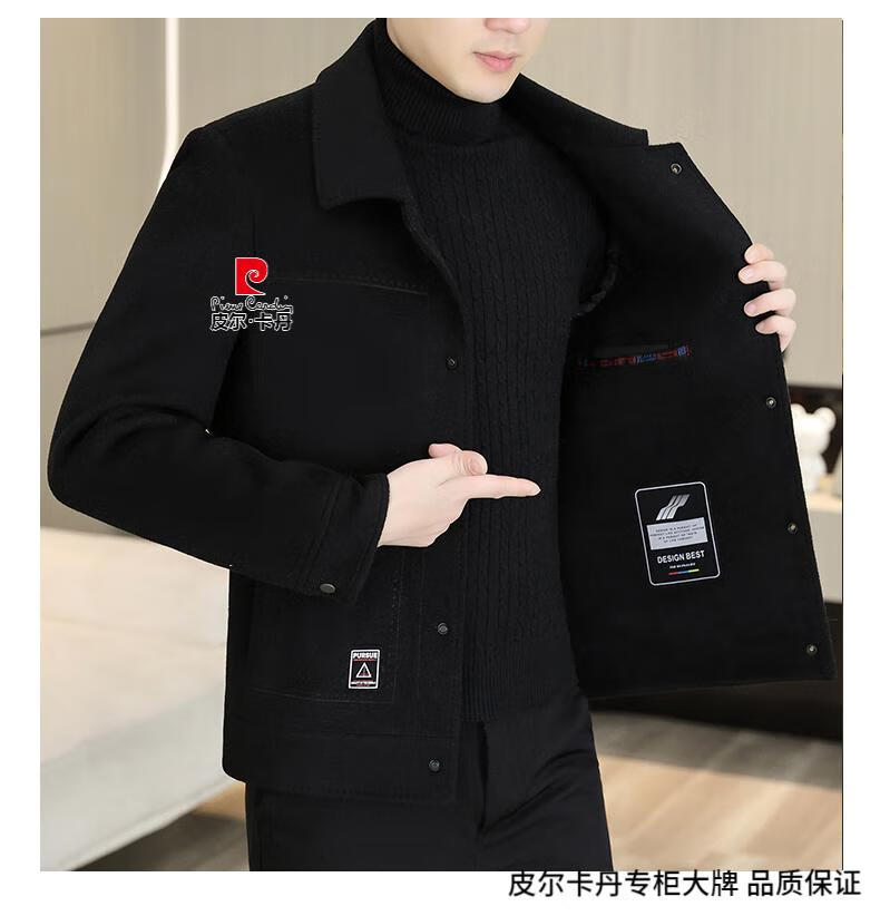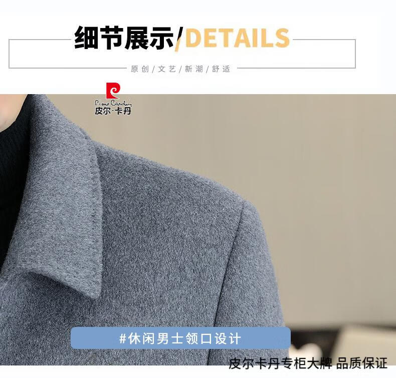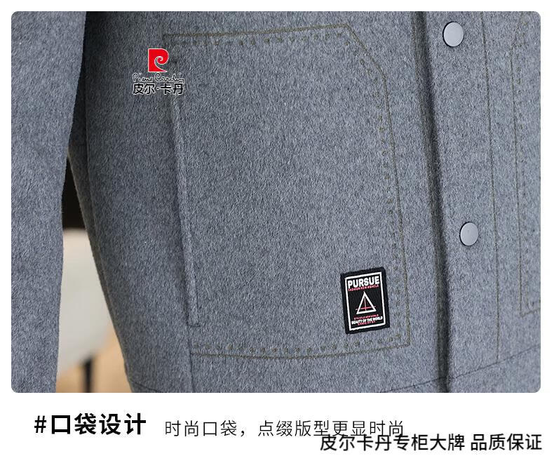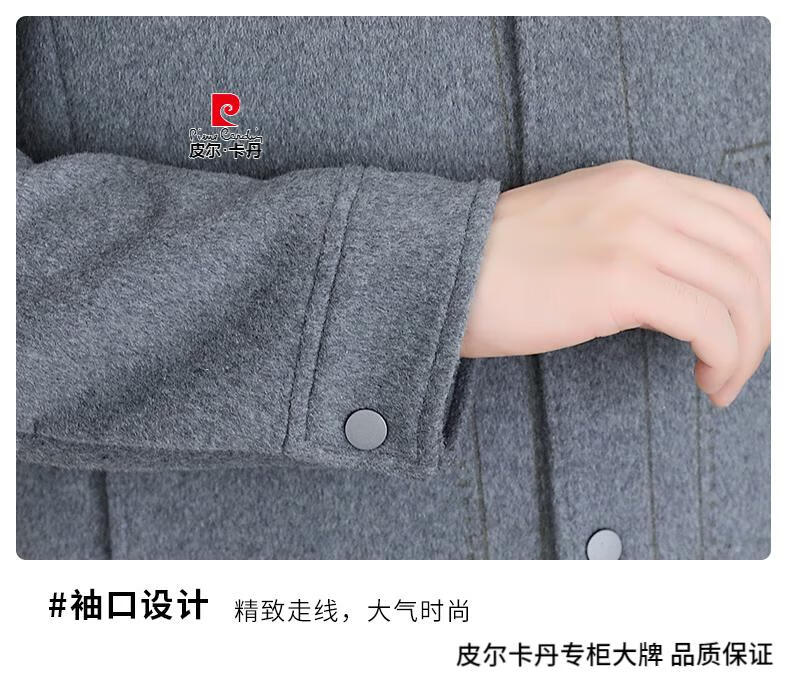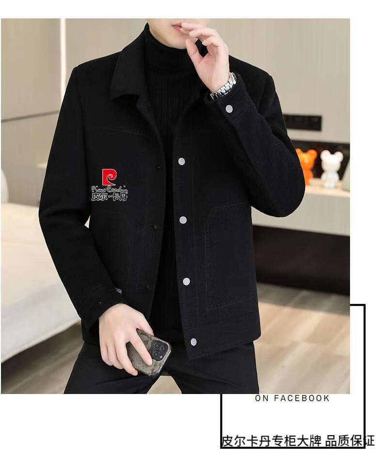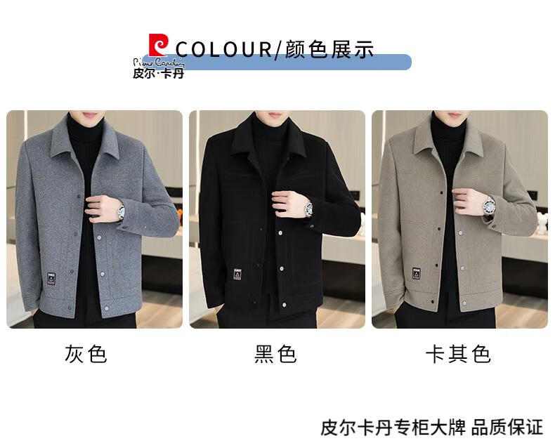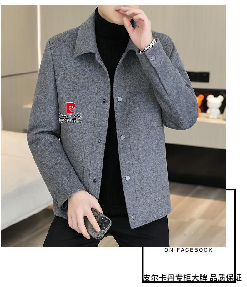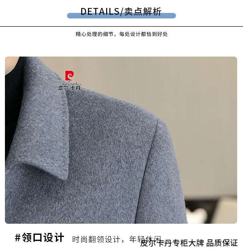 Pierre Cardin Men's Double-sided Woolen Jacket Woolen Jacket Autumn and Winter Men's Woolen Coat Short Cashmere Windbreaker Men's Khaki 2XL 185 Size (145-160Jin Jin is equal to 0.5 kg can be worn)