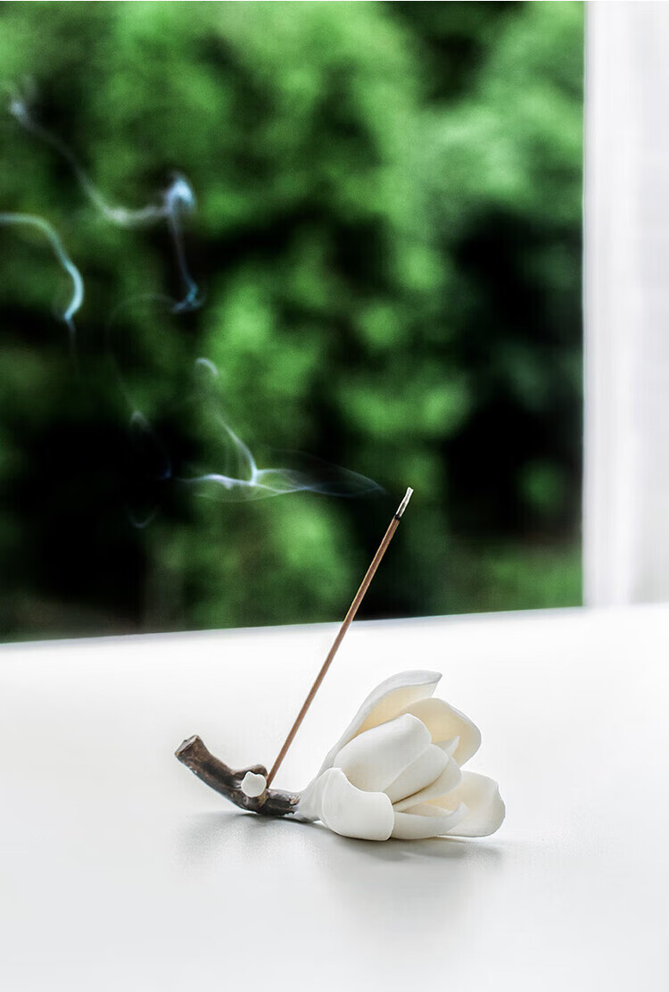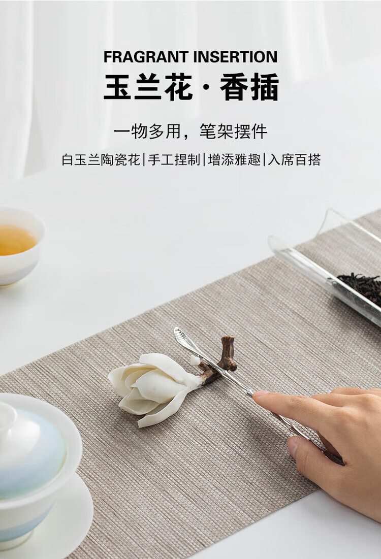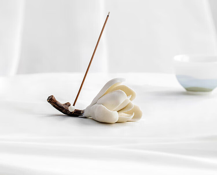 Sanxun (sanxun) creative ceramic magnolia flower incense holder decoration pure hand-made exquisite tea set tea table home high-end small ornaments magnolia flower_small incense holder