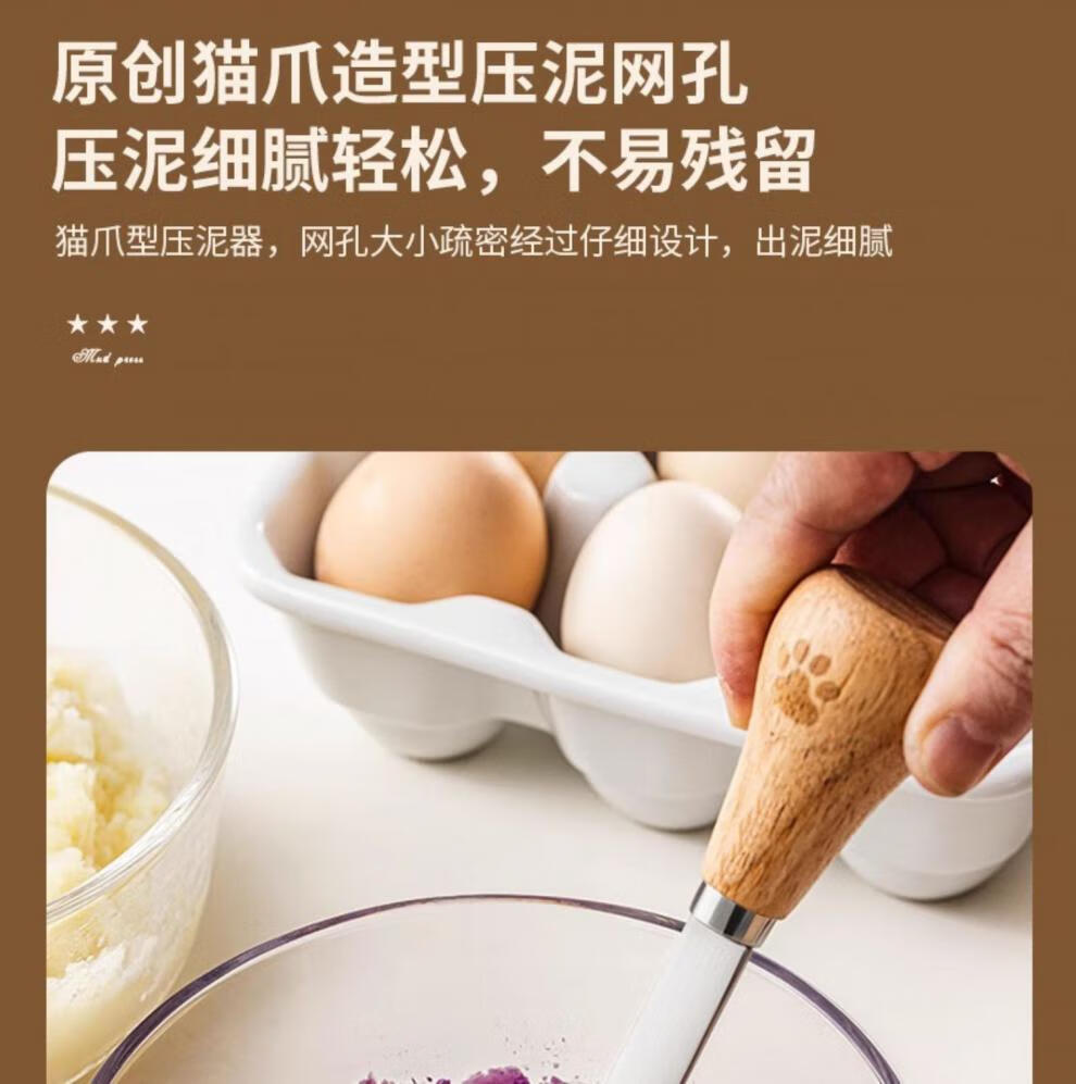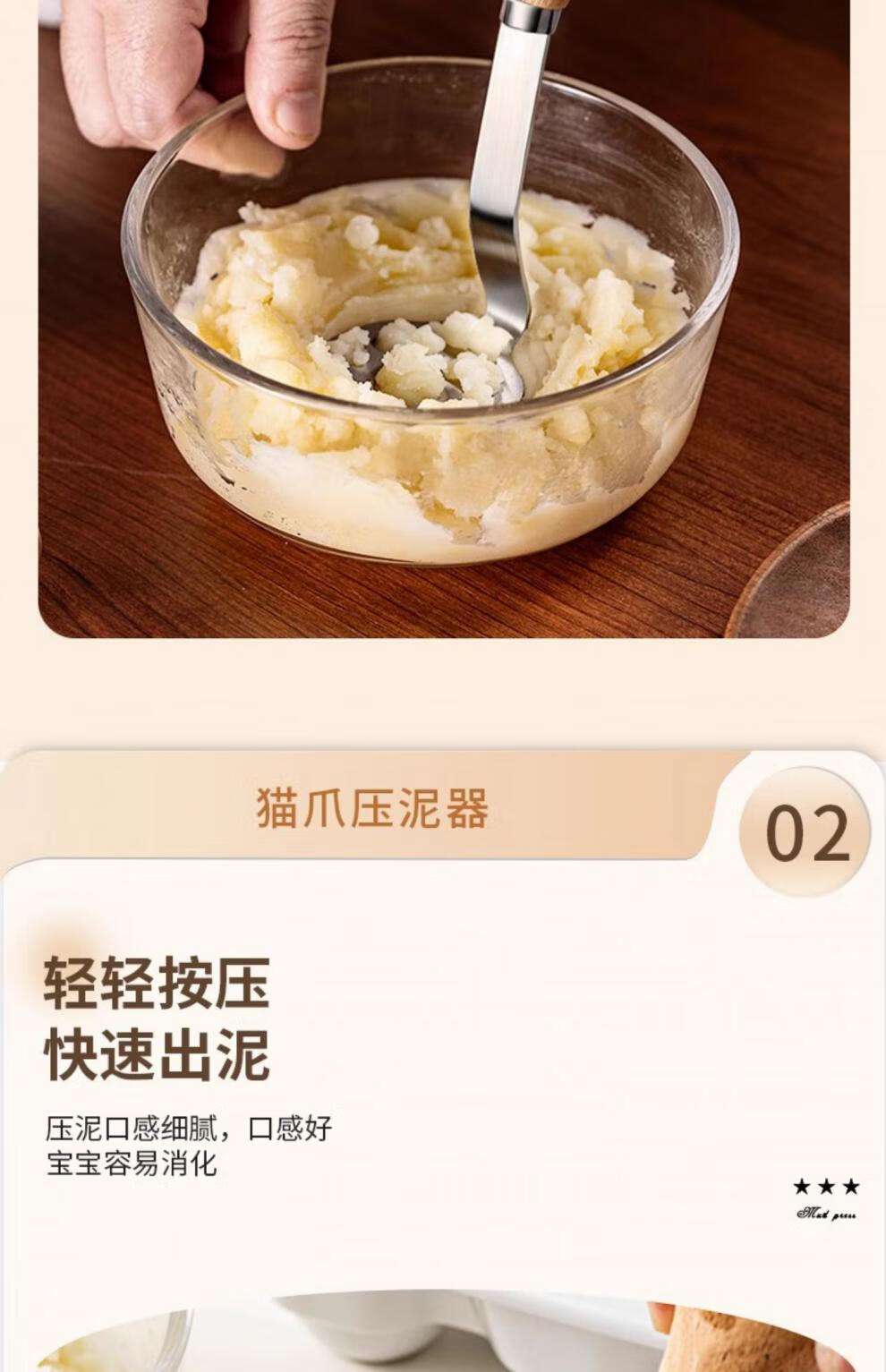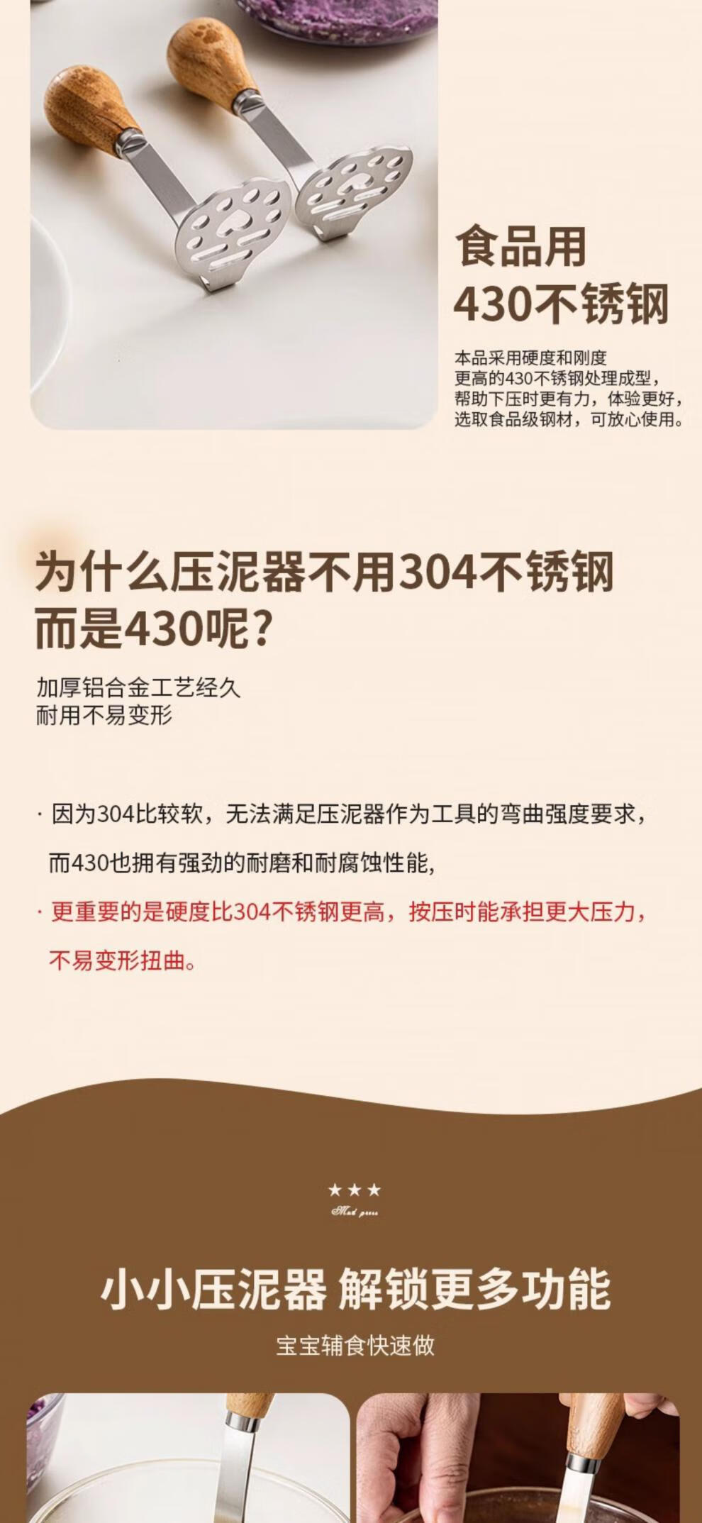Molosun bear potato masher baby food supplement tool masher press crusher food grade stainless steel bear four-piece set comes with storage box