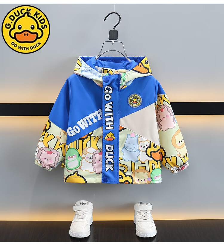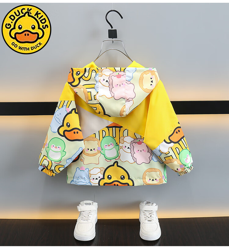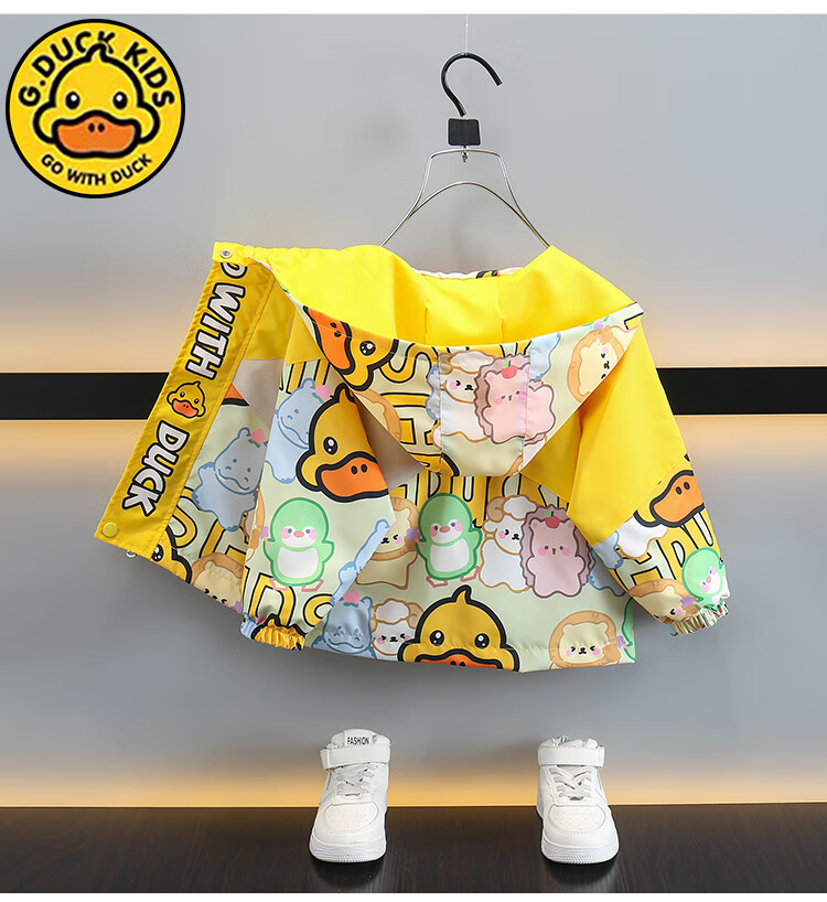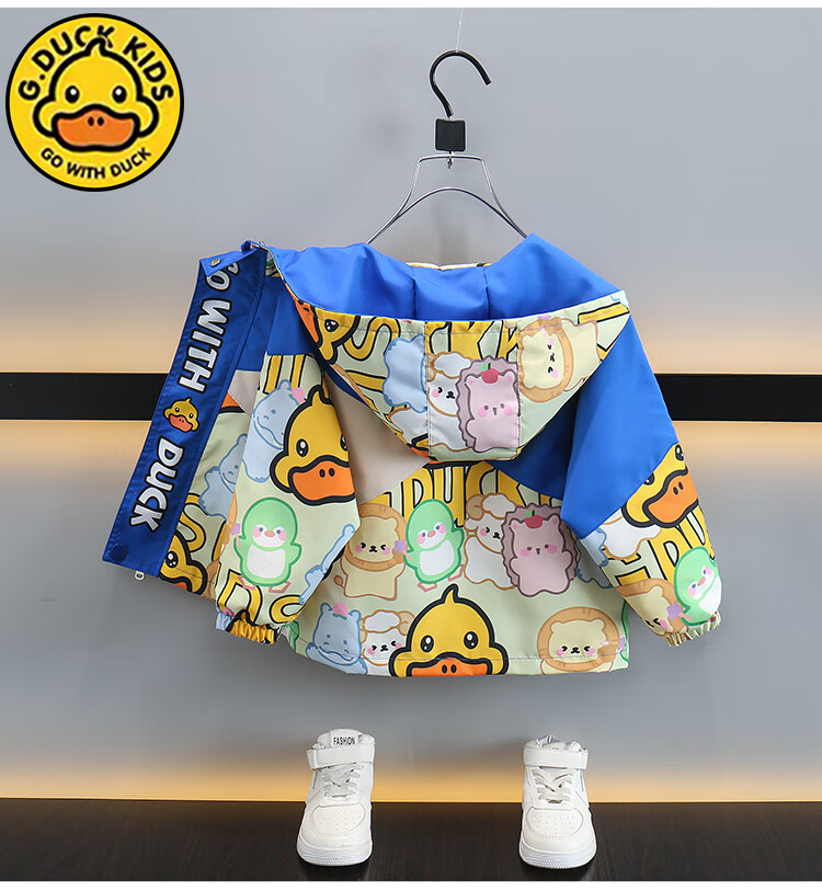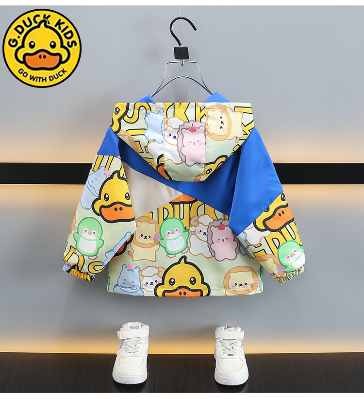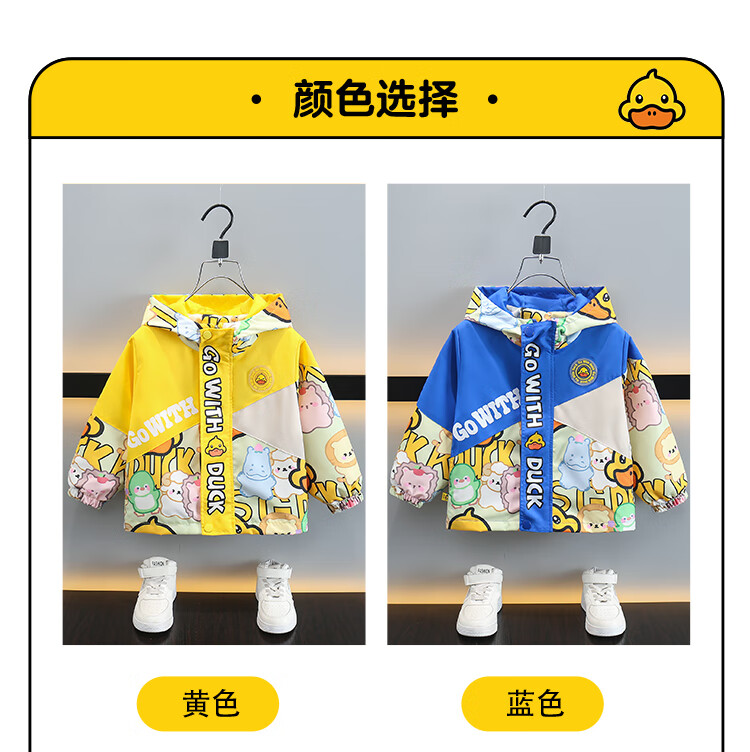Little yellow duck hooded windbreaker, children's jacket, men's and women's baby jacket, casual fashion jacket, trendy blue light jacket 130